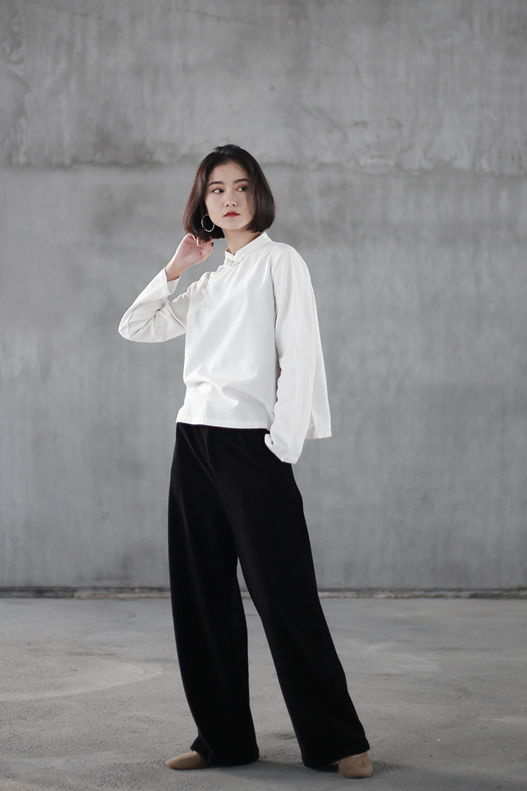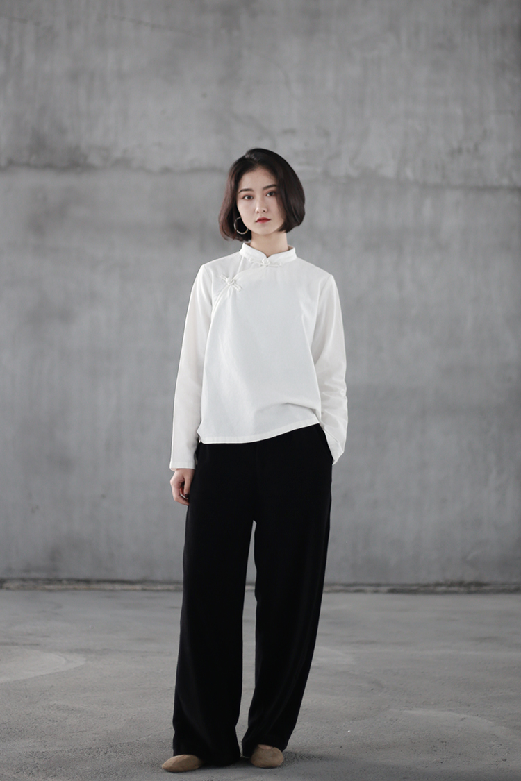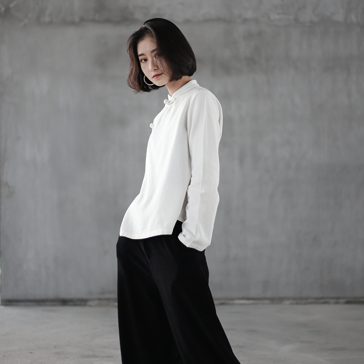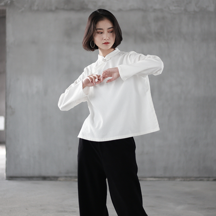 ASAYA1799 Spring Chinese style cotton and linen short coat women's ethnic style placket loose top vintage buckle cardigan jacquard long sleeve tea dress + white button shirt