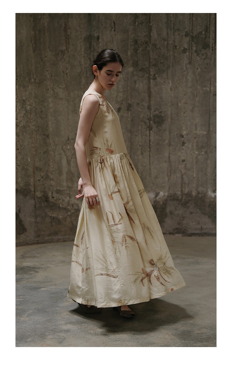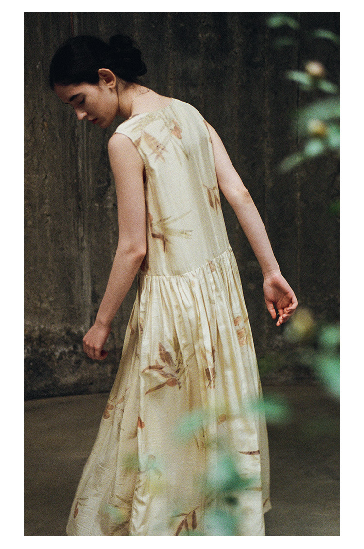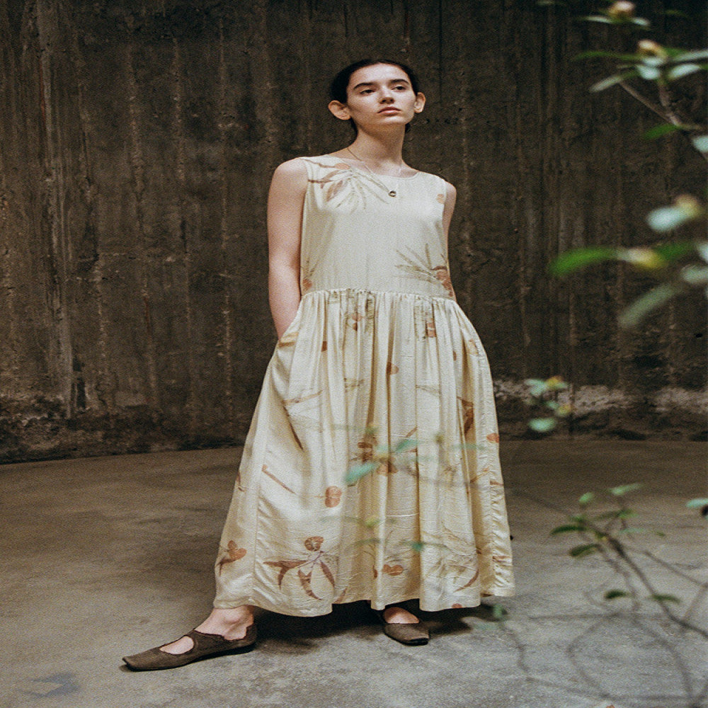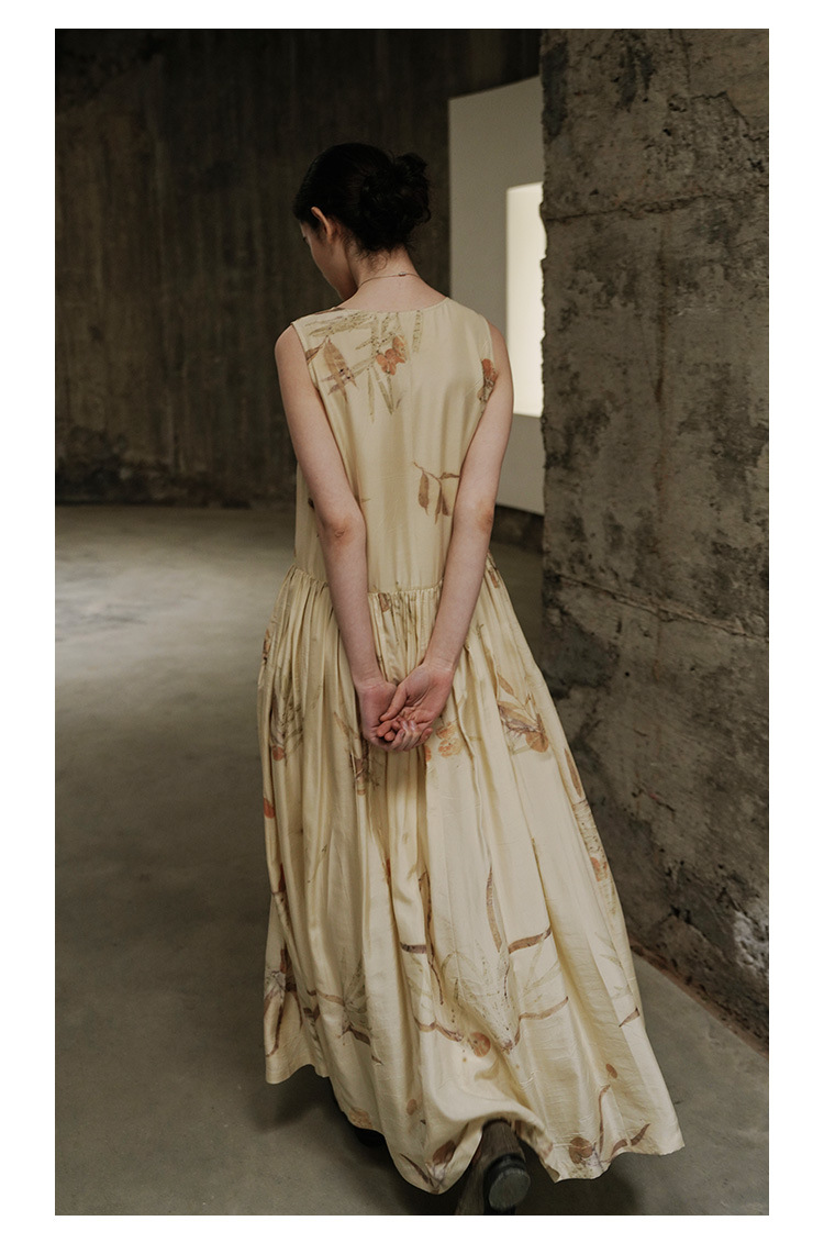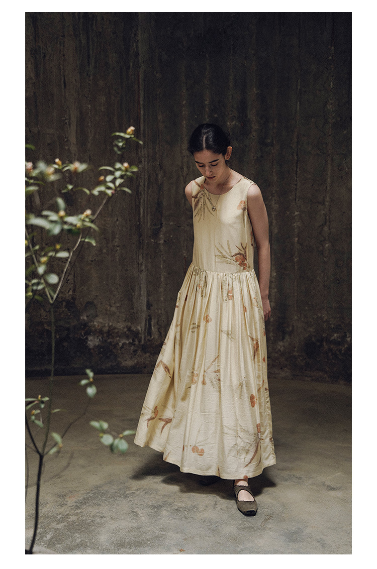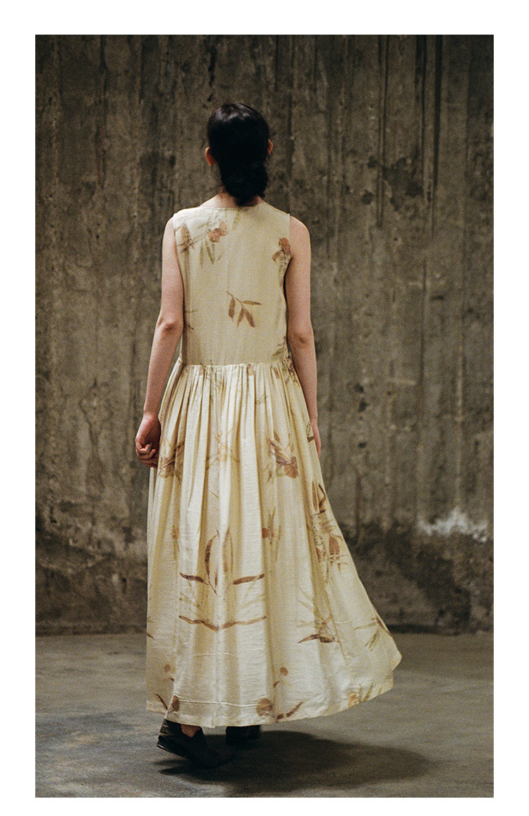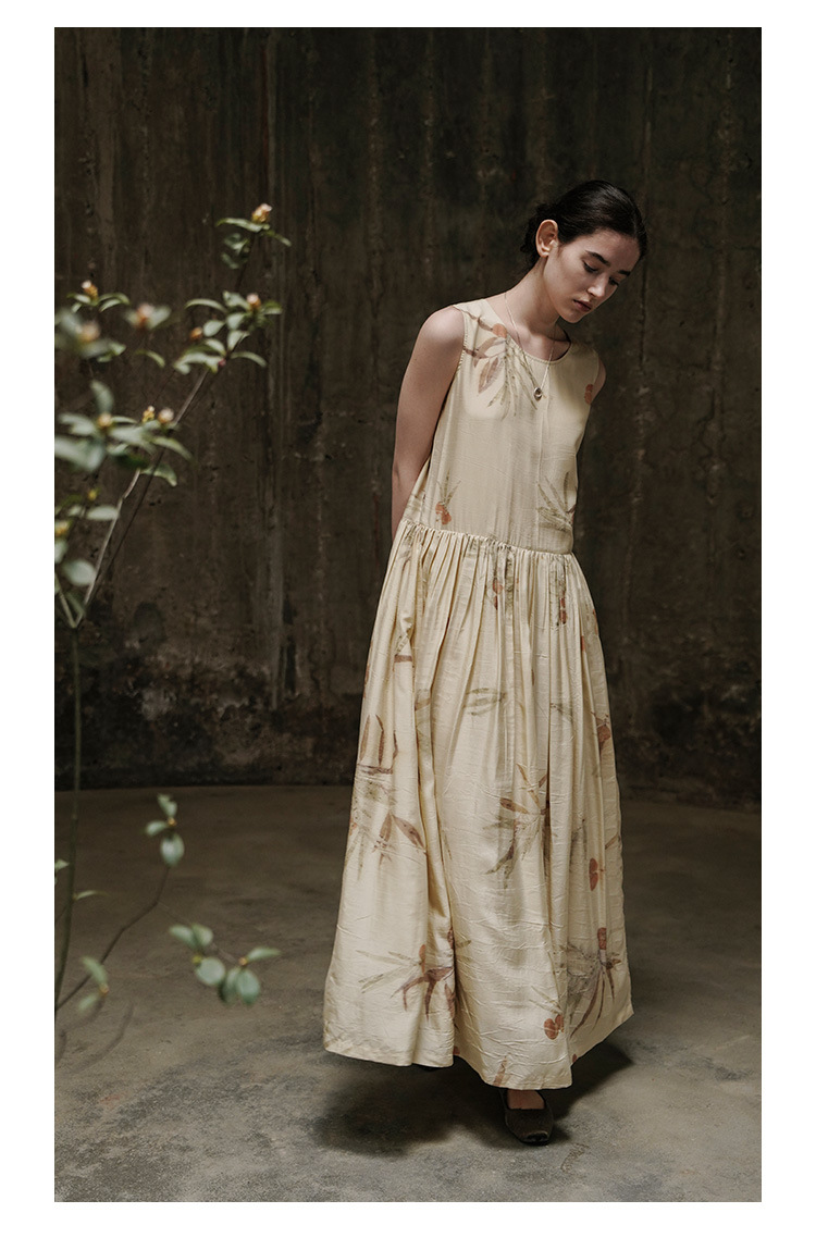 ASAYA3083 Chinese style retro literary high-quality ramie high-end printed vest dress