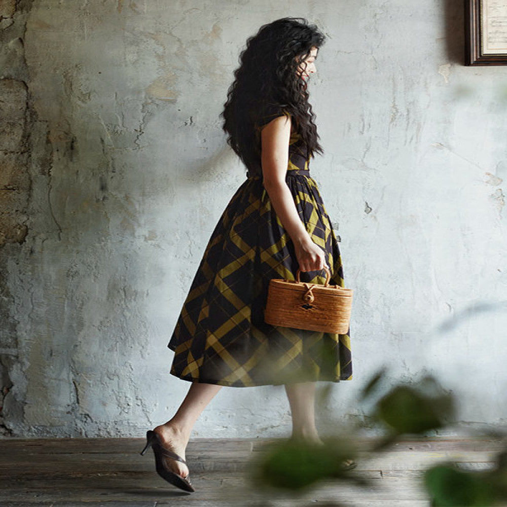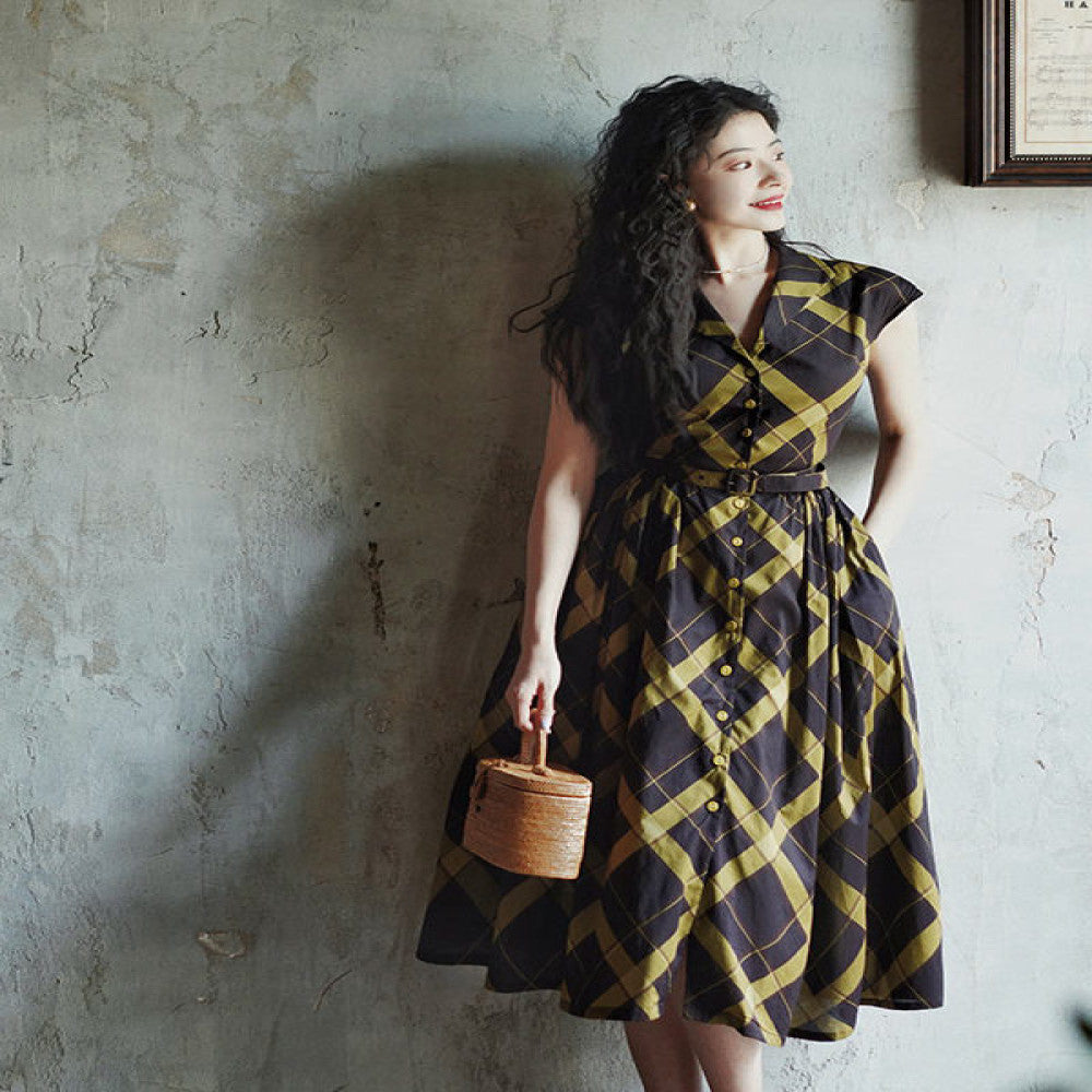ASAYA4629 โ Retro Elegance Plaid Dress ๐๐ค