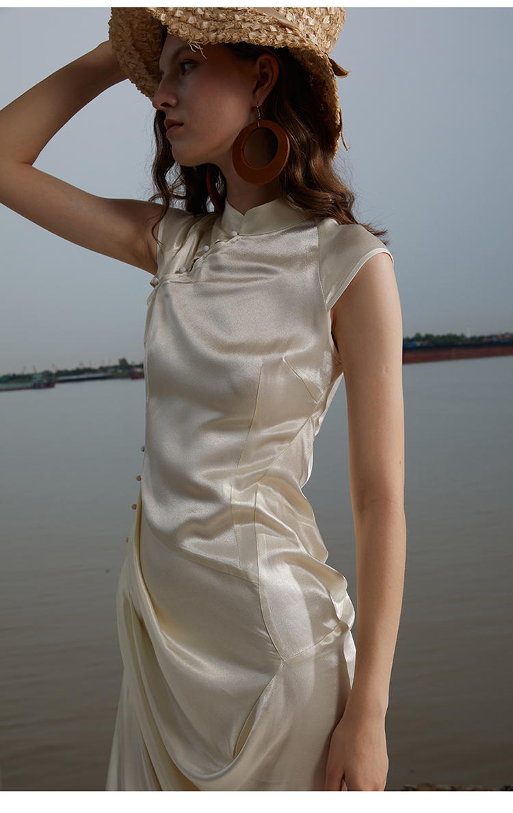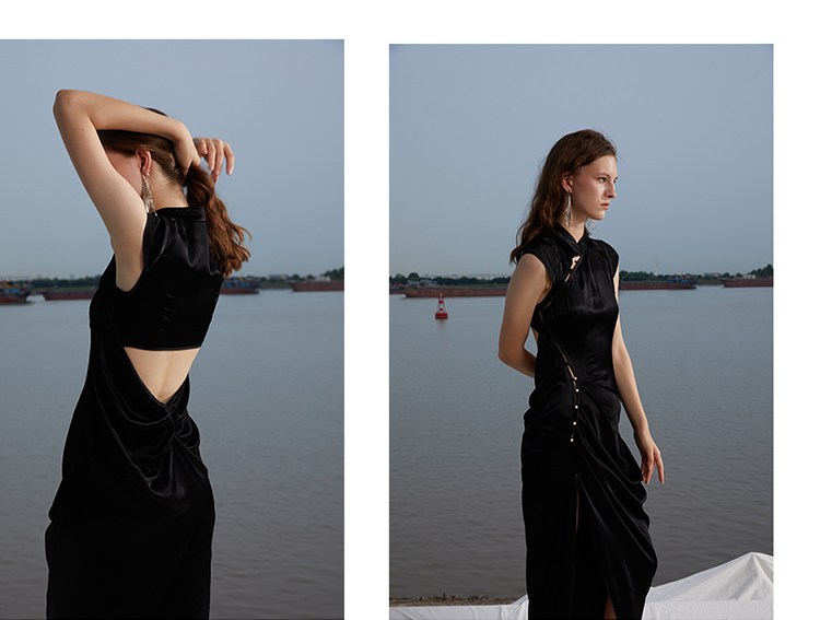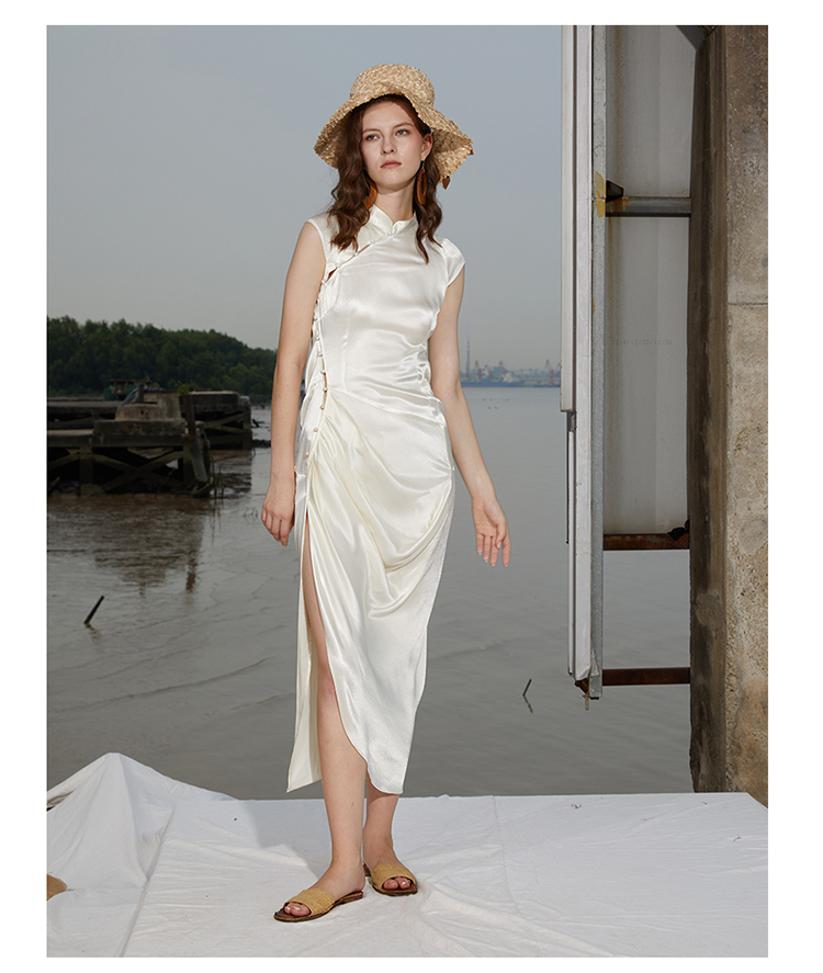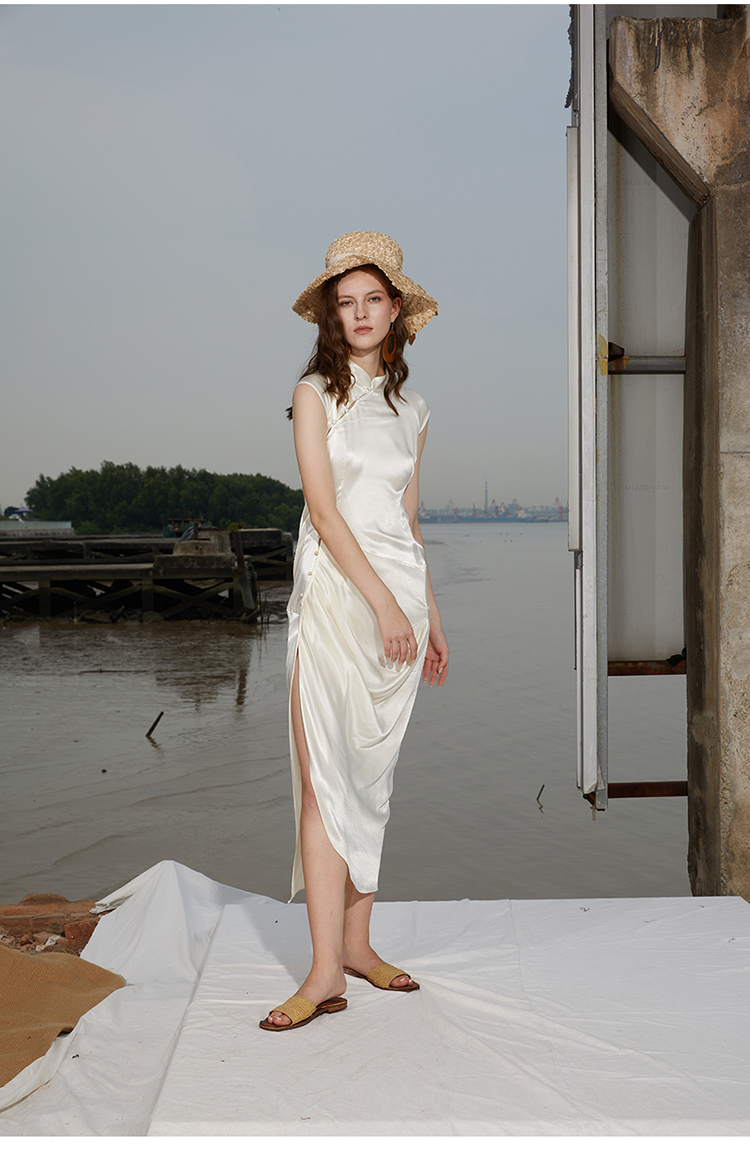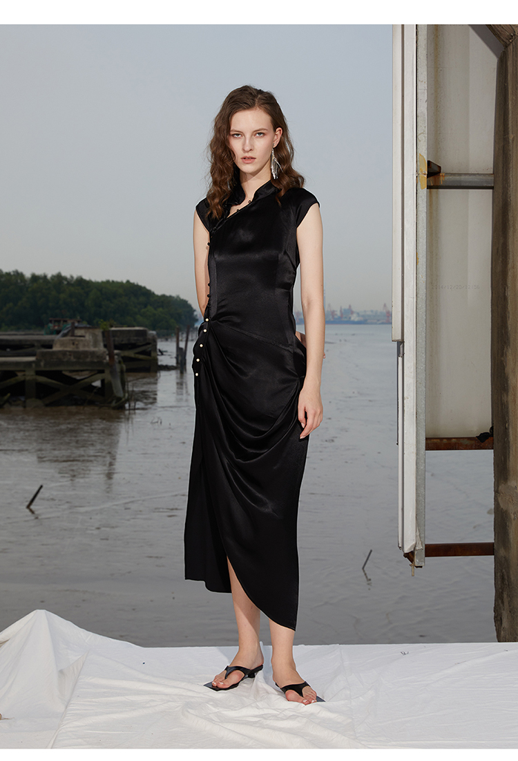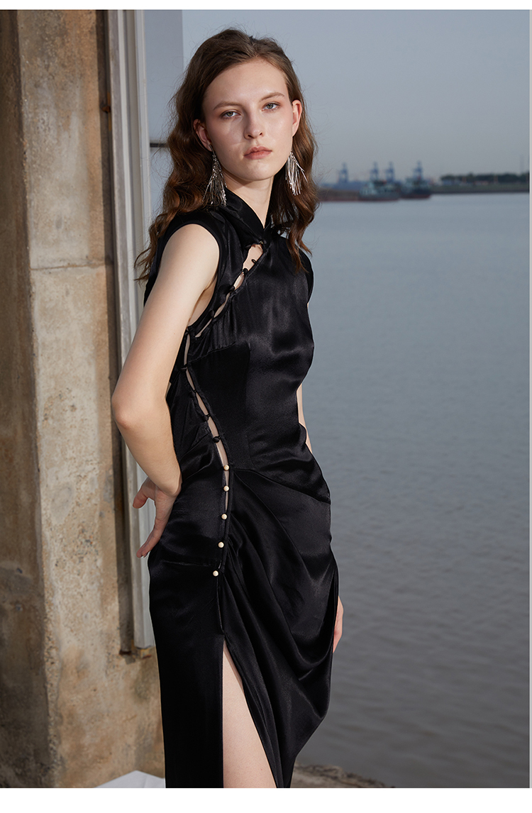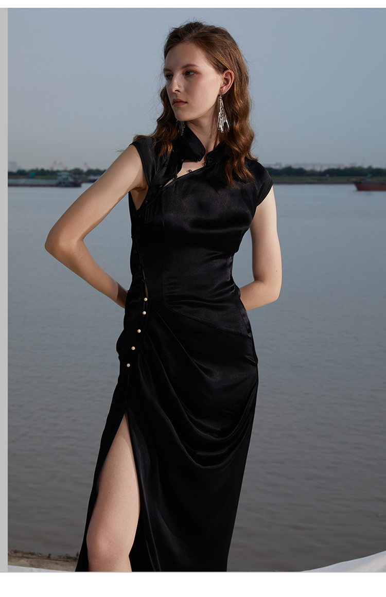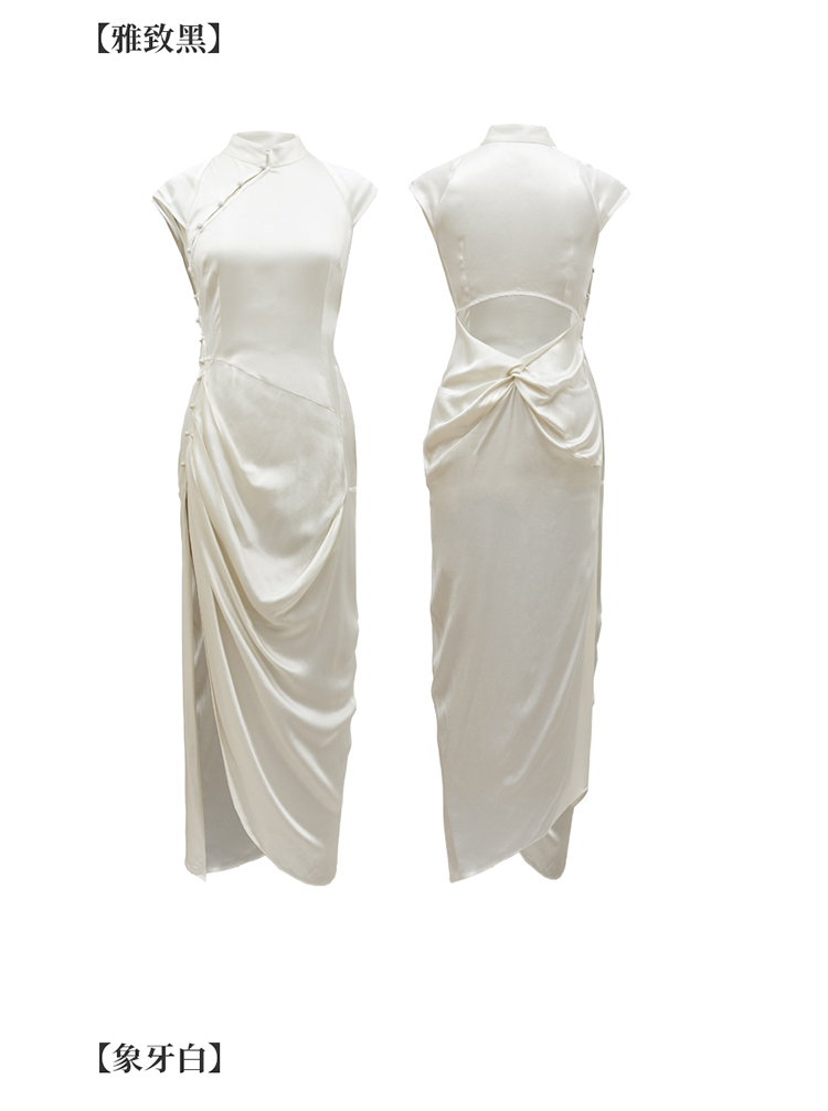 Asaya831 - Clearance Original design black and white elegant new Chinese style modified cheongsam exquisite romantic dress