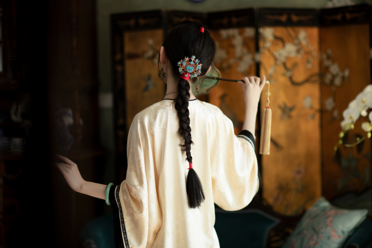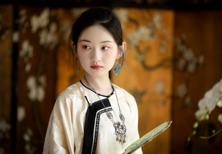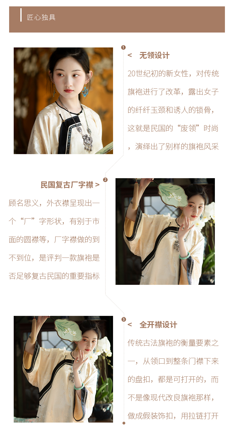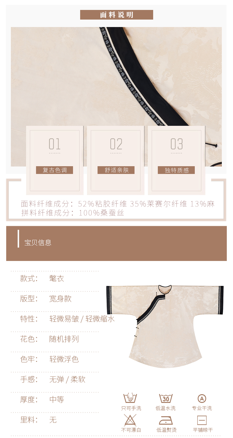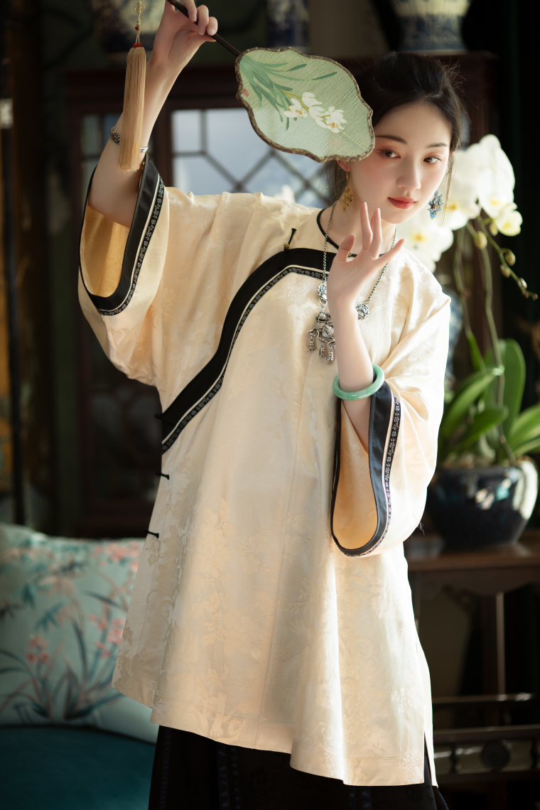 ASAYA2837 Beige jacquard satin restores Qing and Han Dynasty loose top