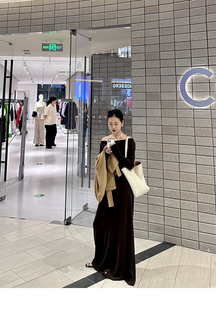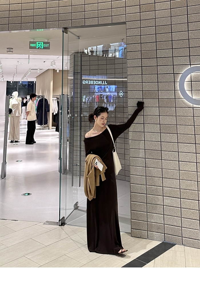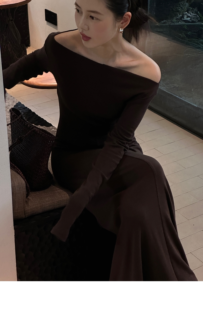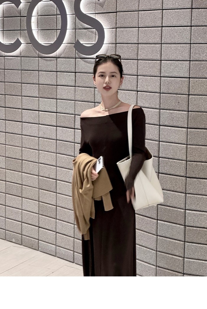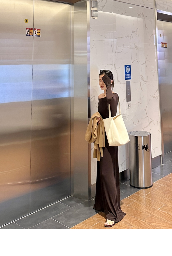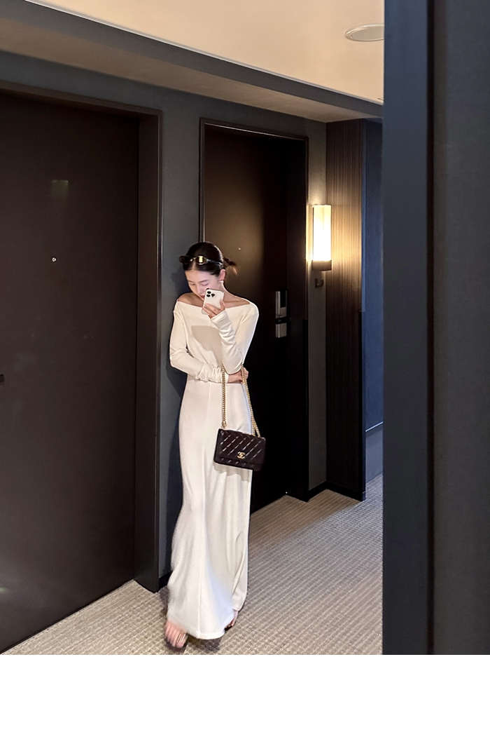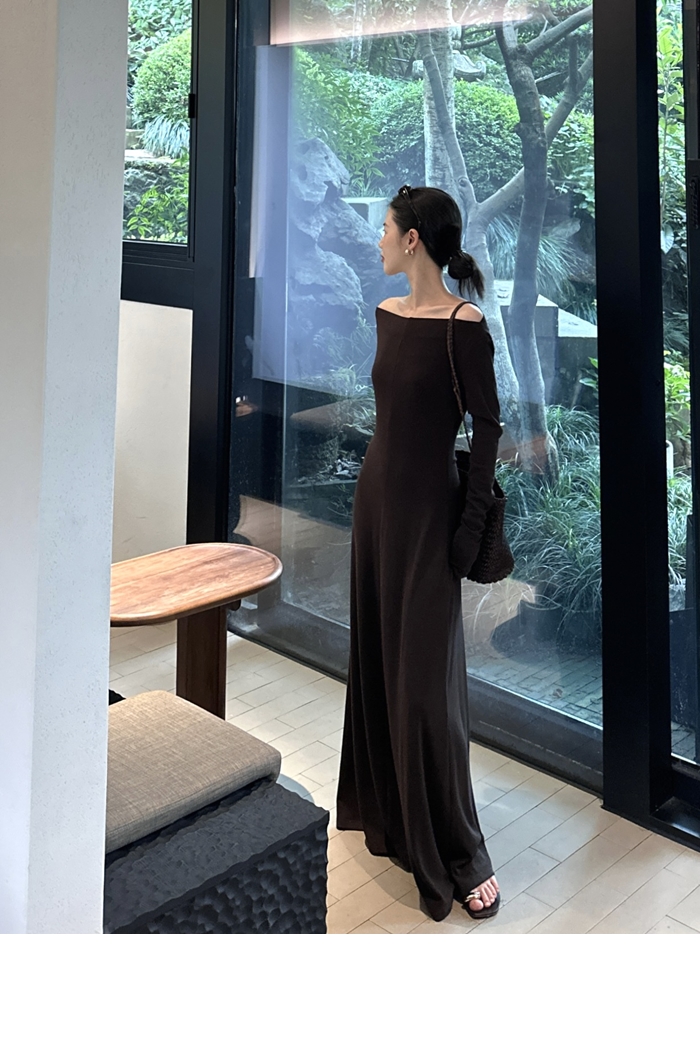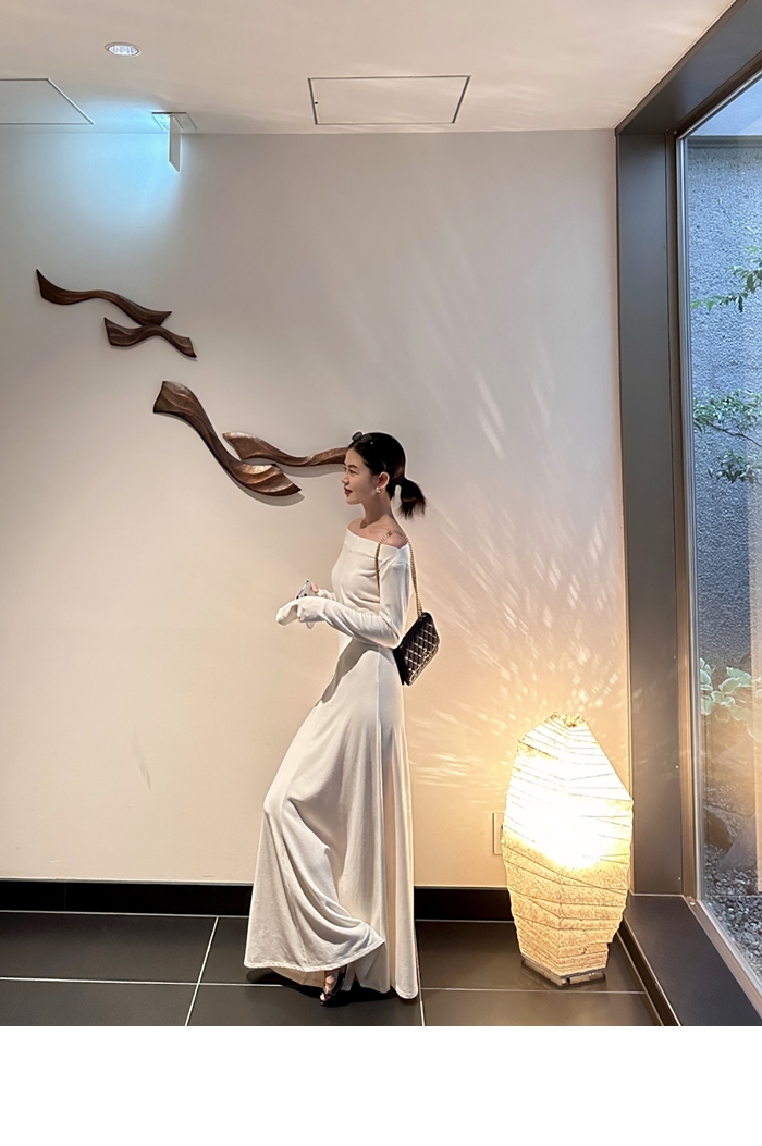 ASAYA2727 Gentle temperament, simple one-shoulder knitted long dress