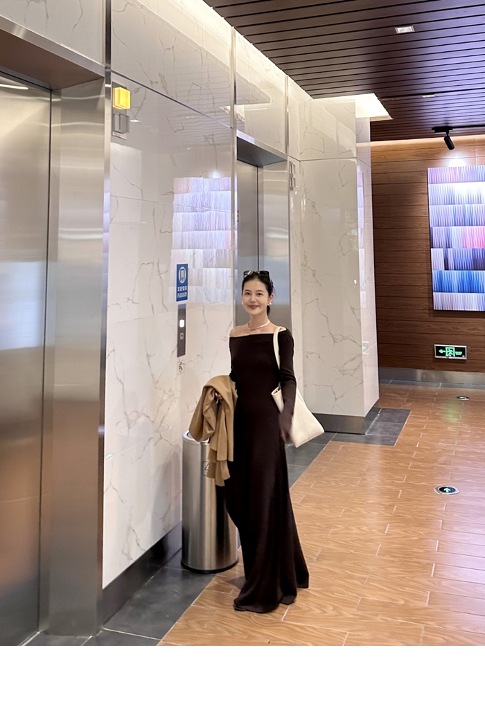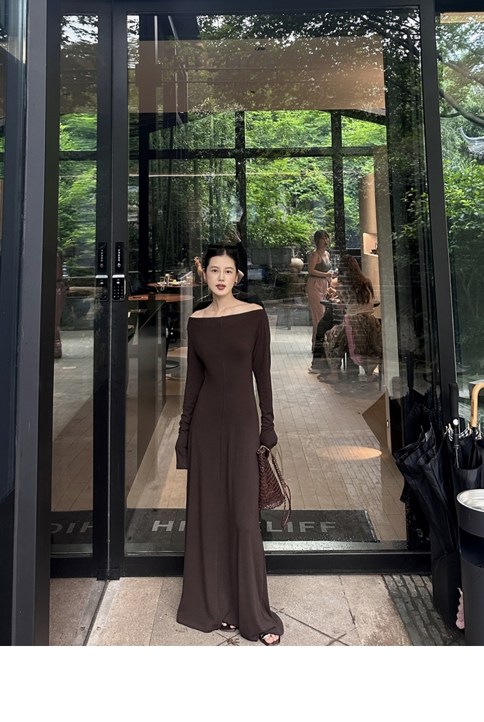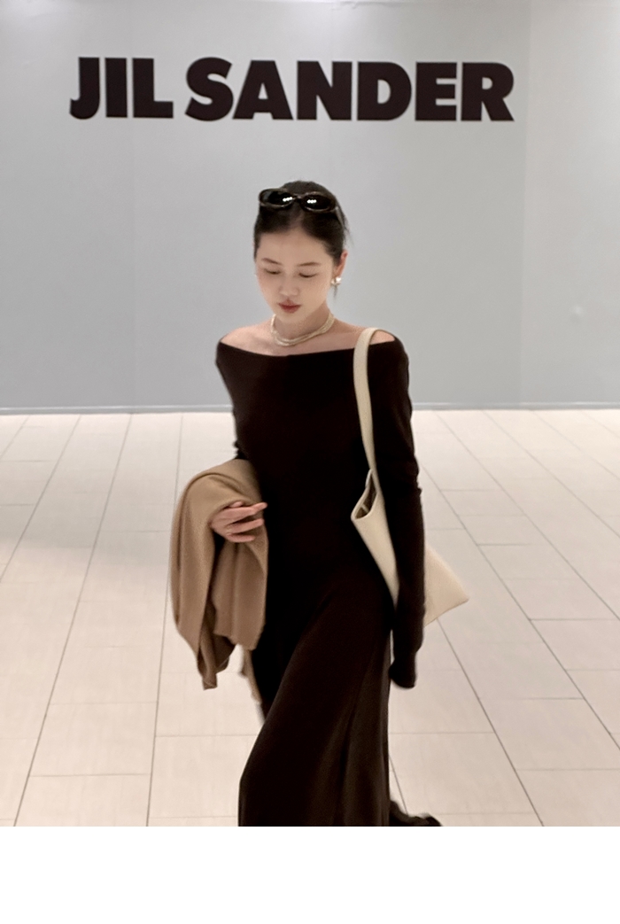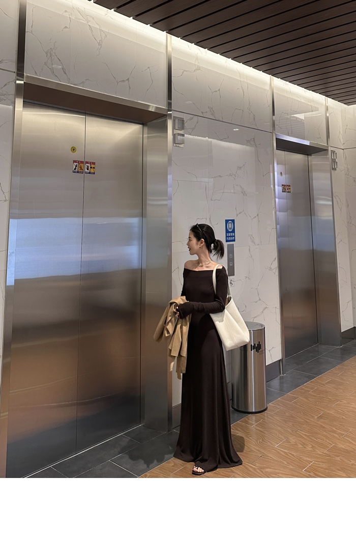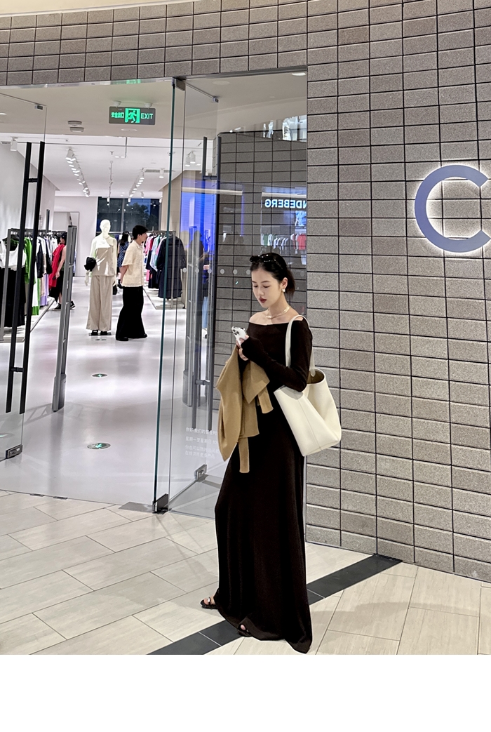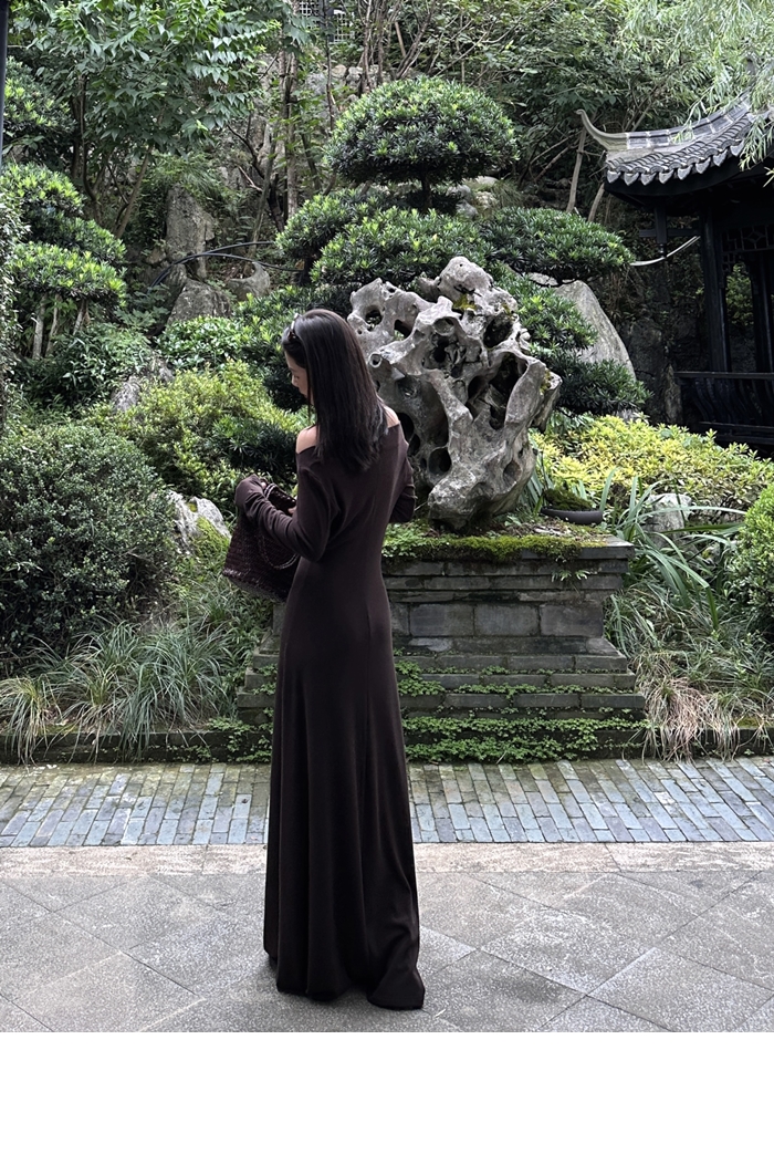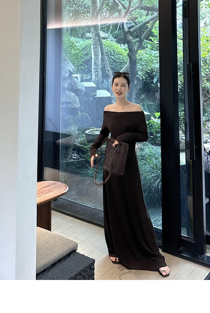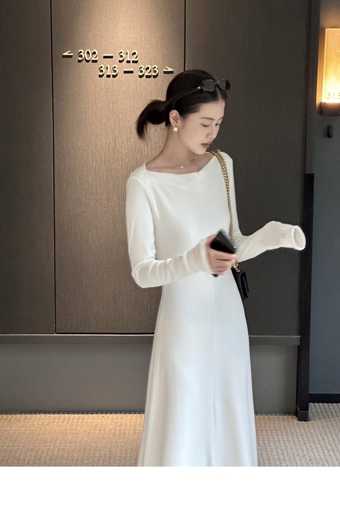 ASAYA2727 Gentle temperament, simple one-shoulder knitted long dress