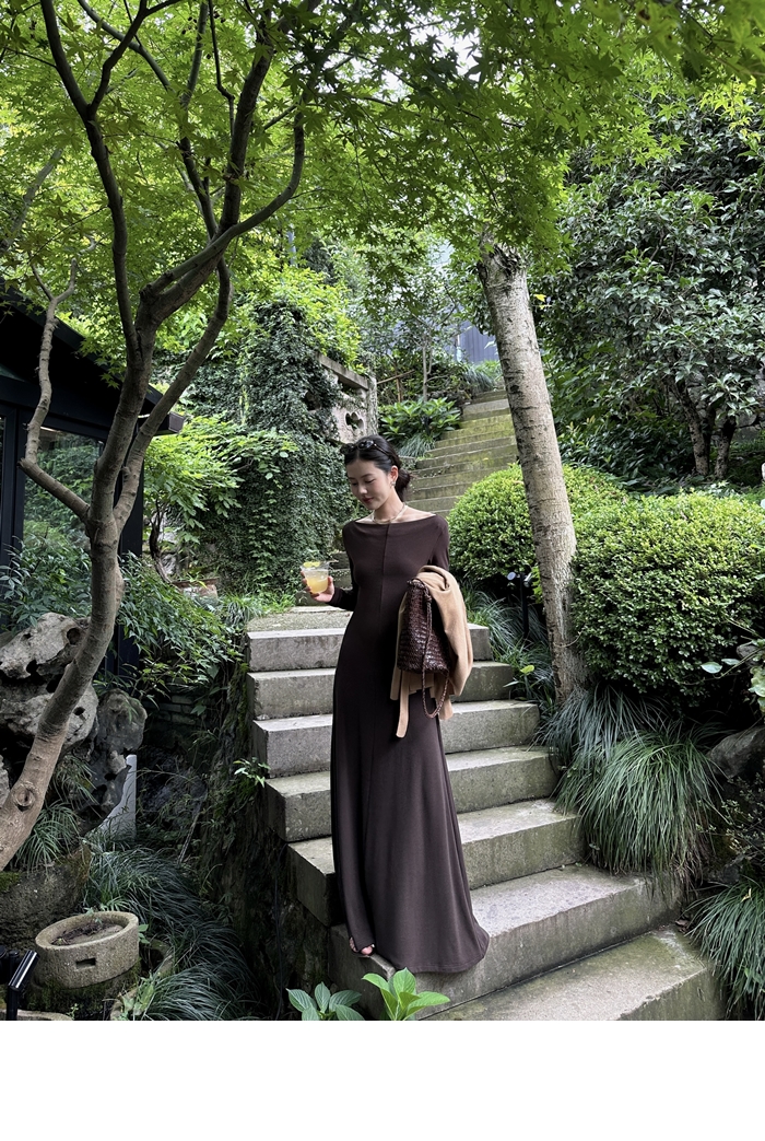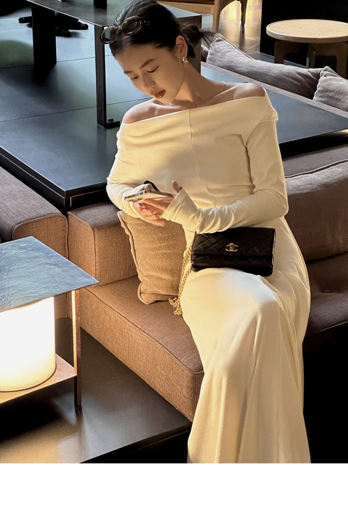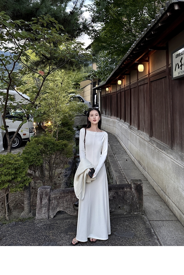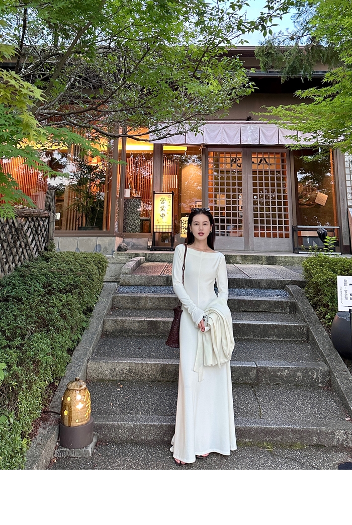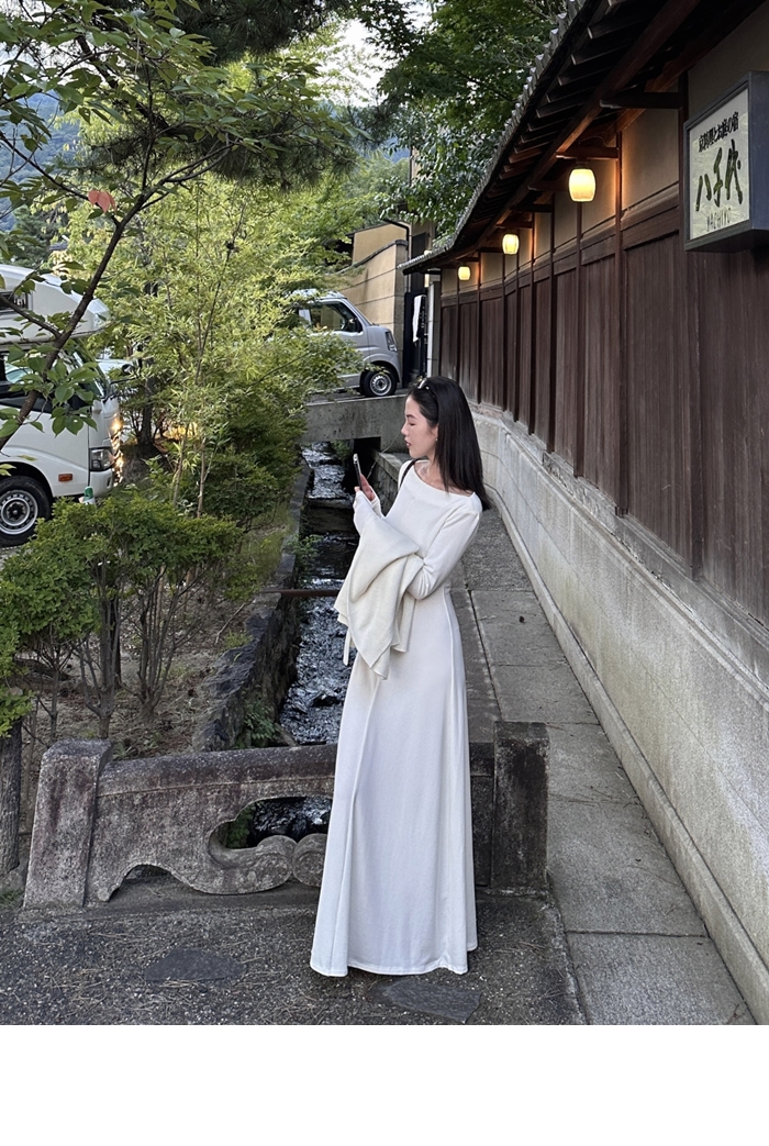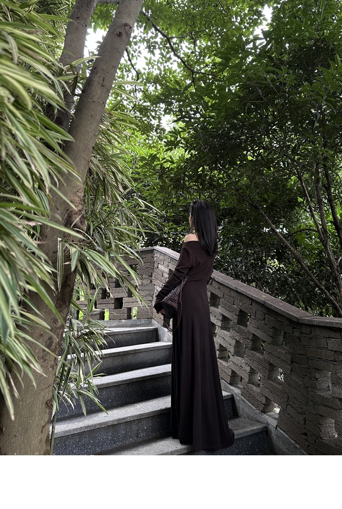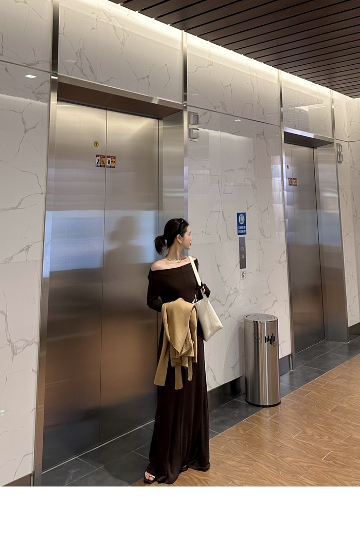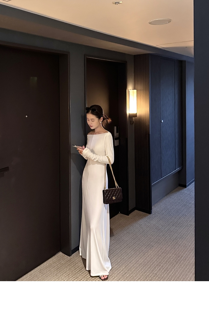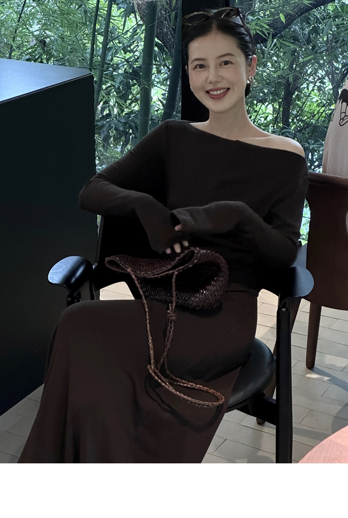 ASAYA2727 Gentle temperament, simple one-shoulder knitted long dress
