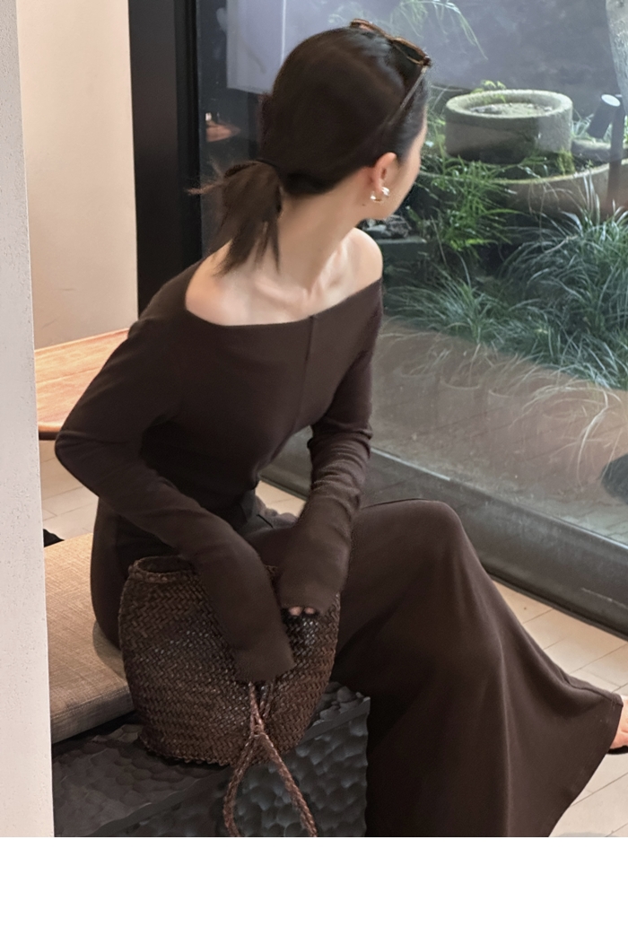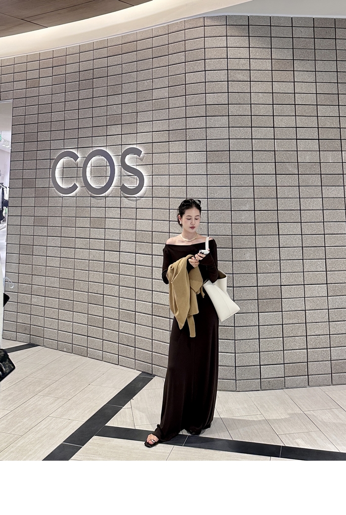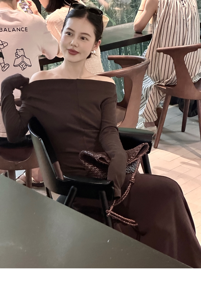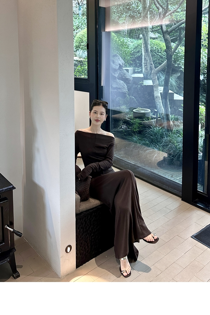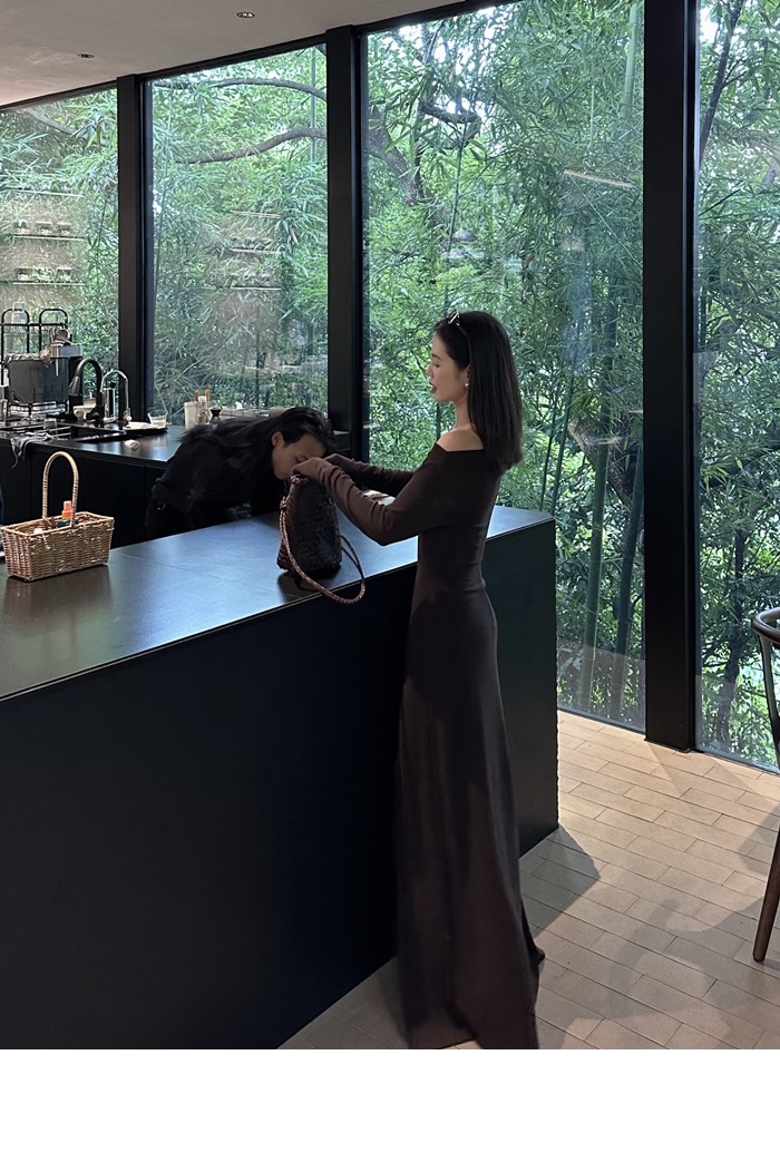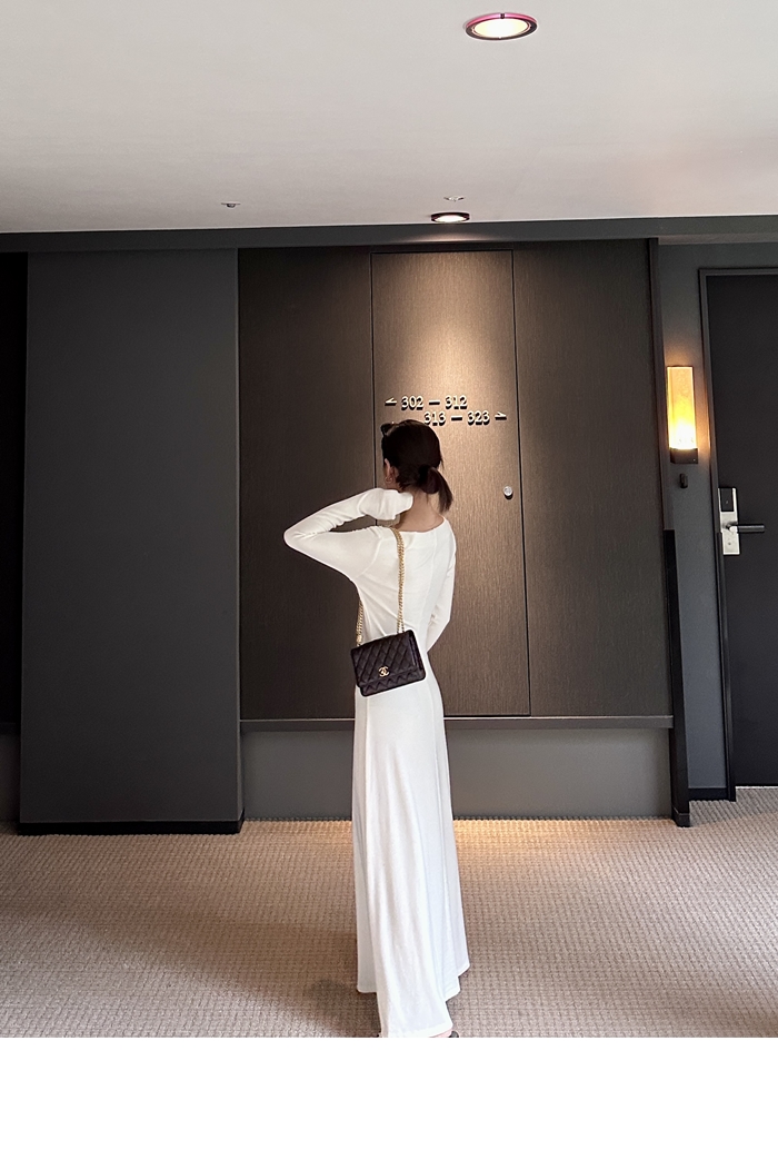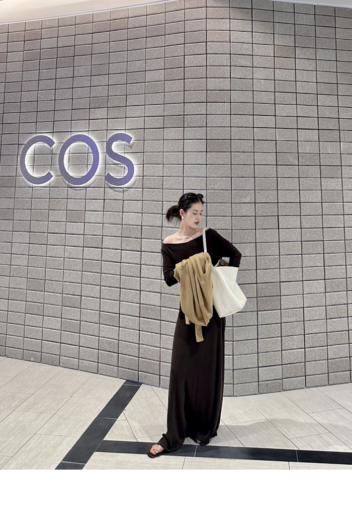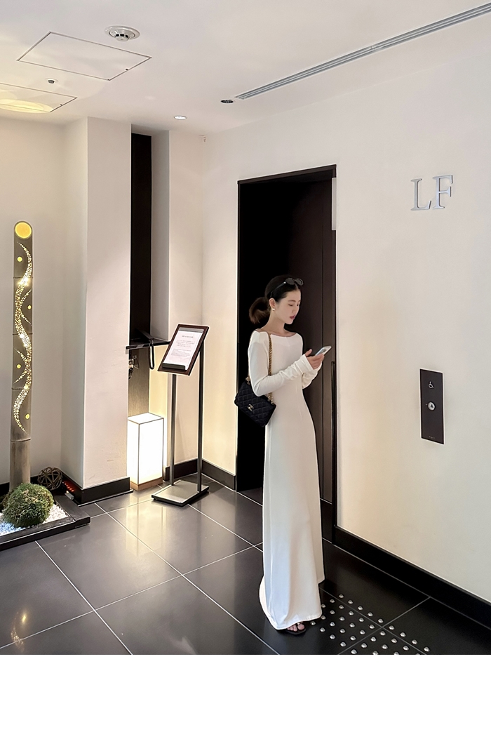 ASAYA2727 Gentle temperament, simple one-shoulder knitted long dress