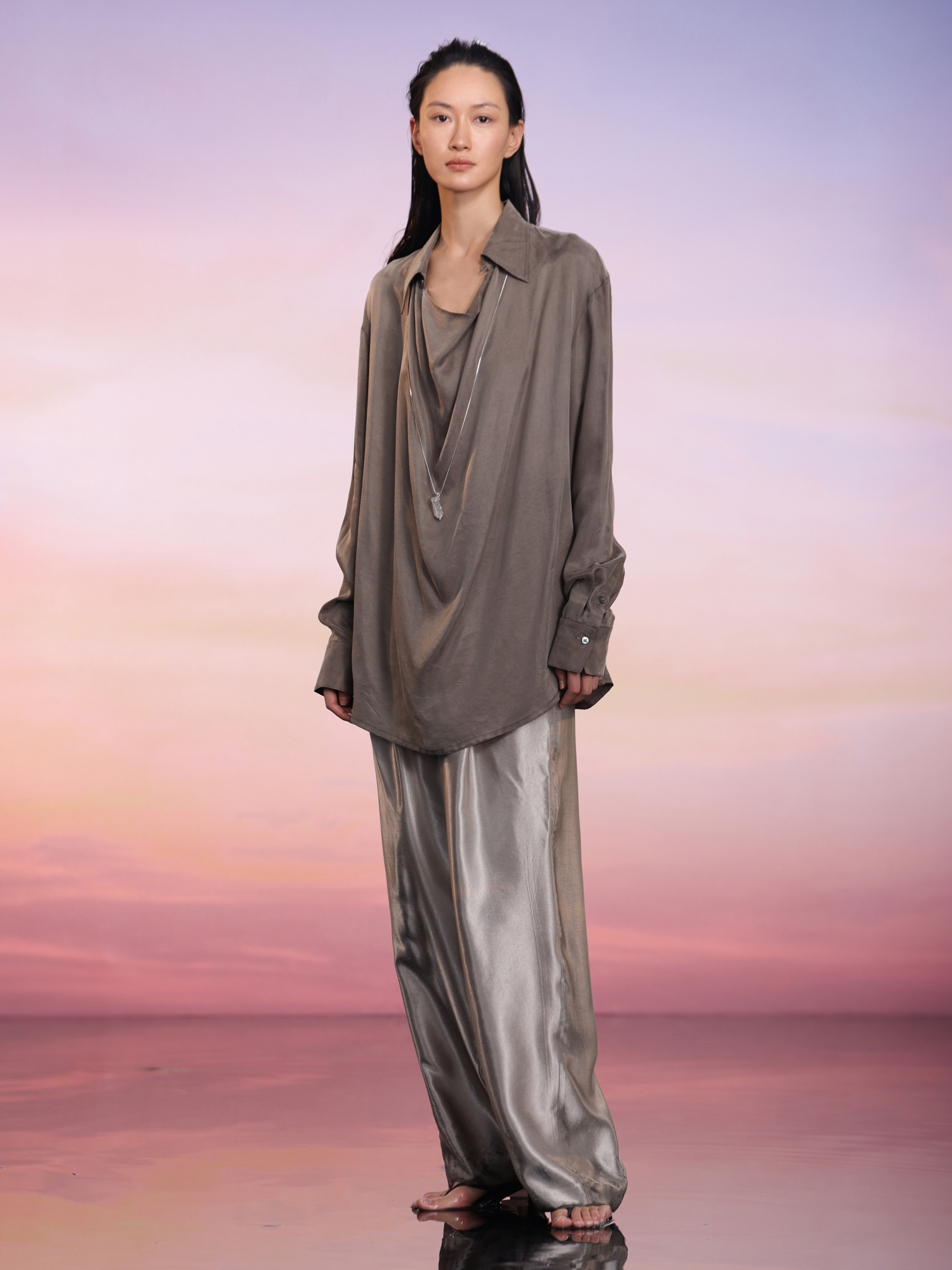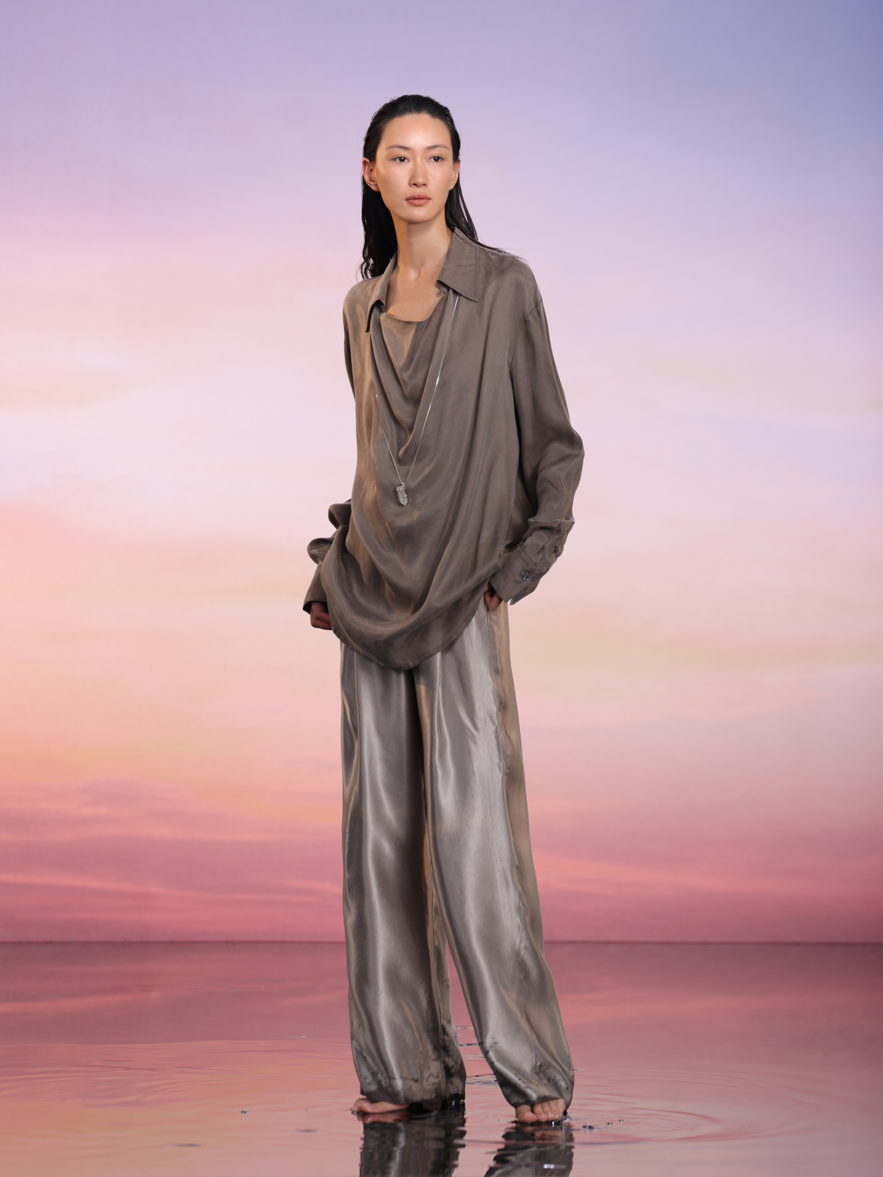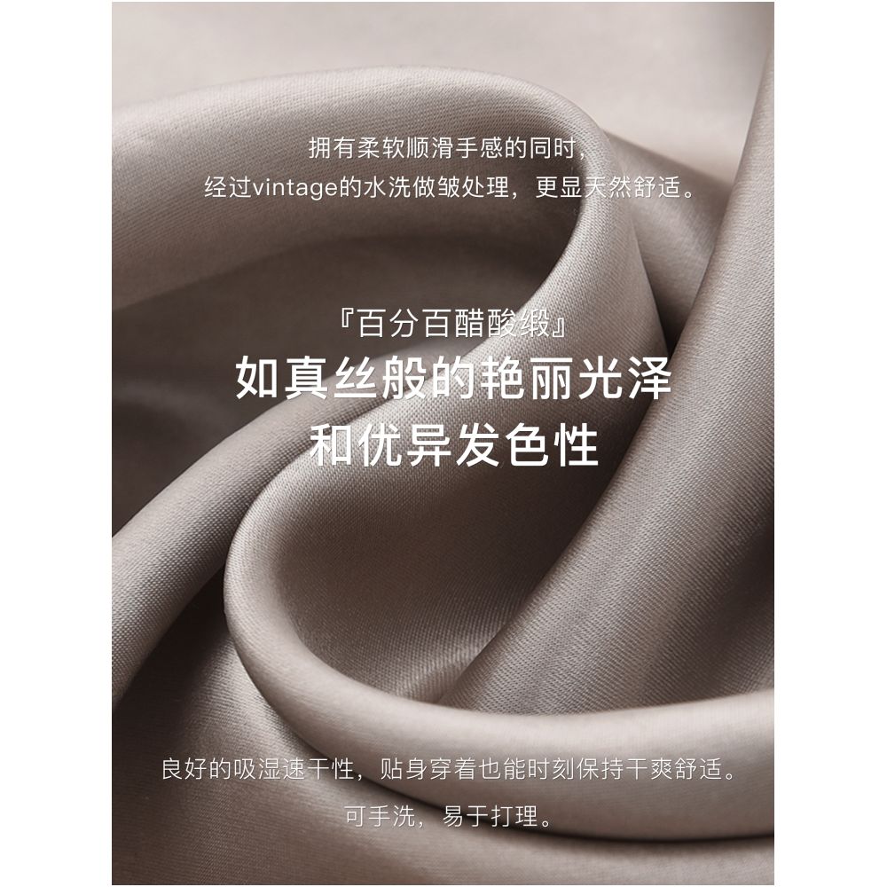 ASAYA2018 COMMON VALUE IMPORTED CREAM CUPRO SWING COLLAR LONG SHIRT TOP + 100% Satin Acetate Long Pants Imported from Japan