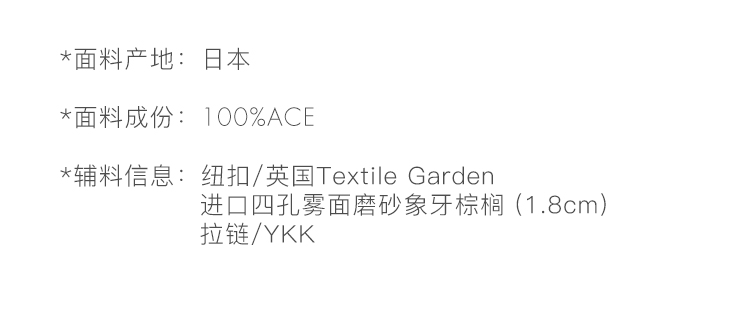 Material composition | Acetate fiber (acetate fiber) 100% |