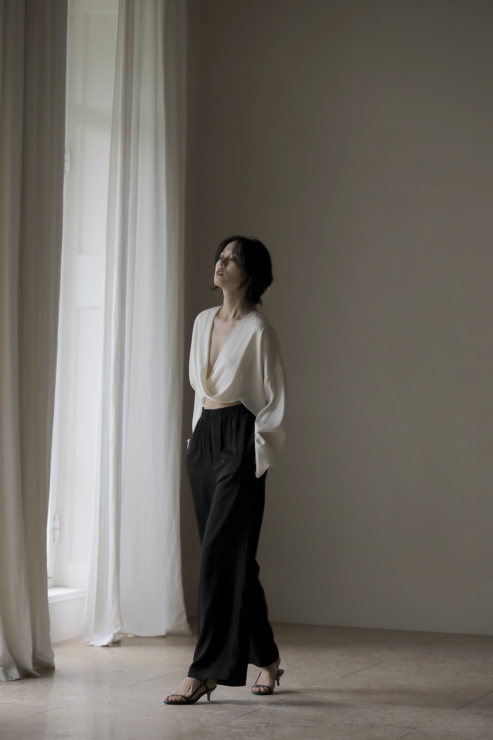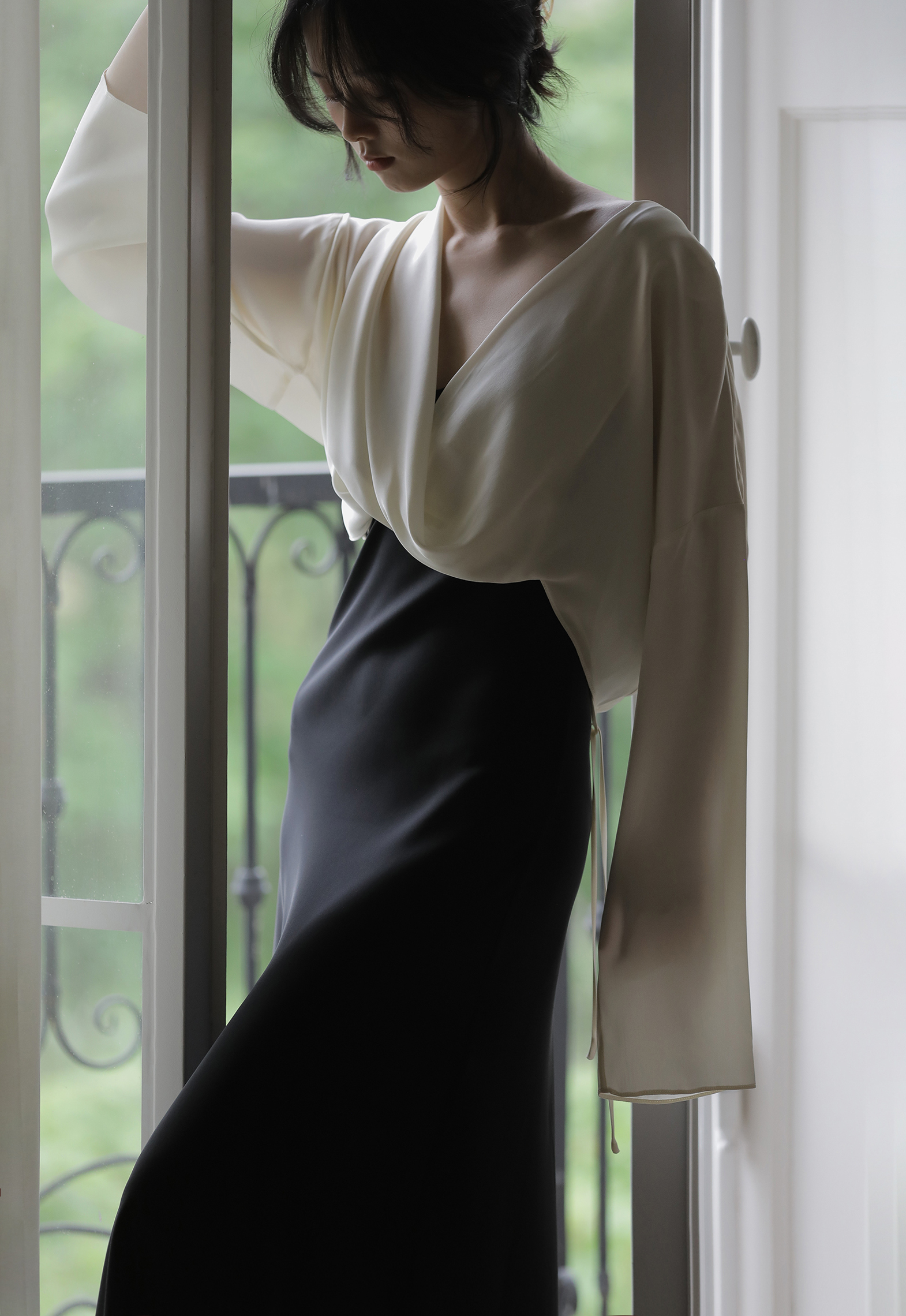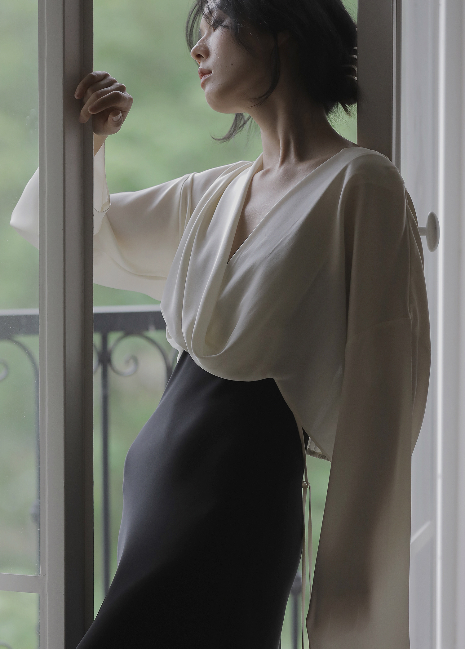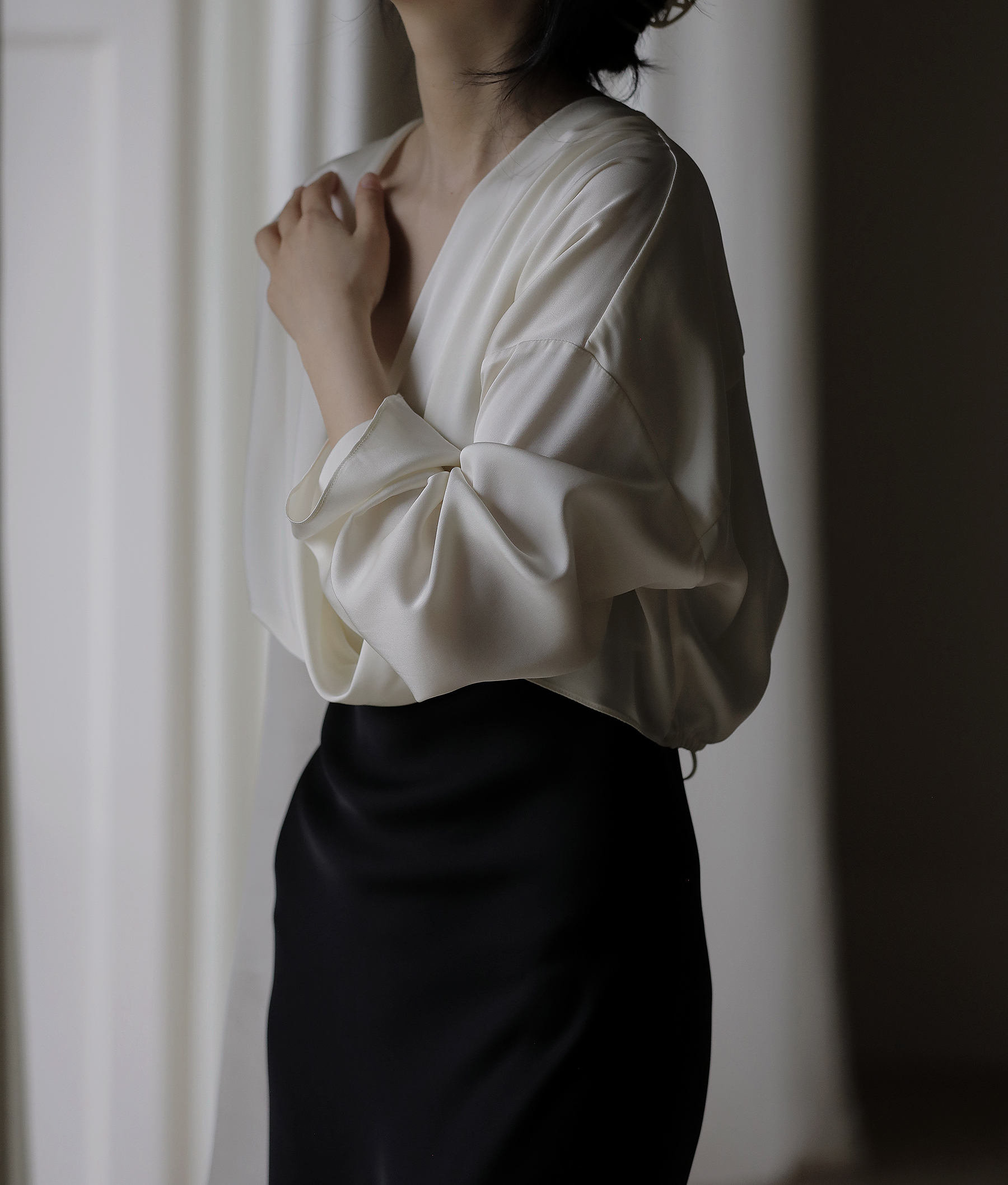 ASAYA1949 Commuse 19 mommy stretch double Joe satin drape silky shirt solid color blouse