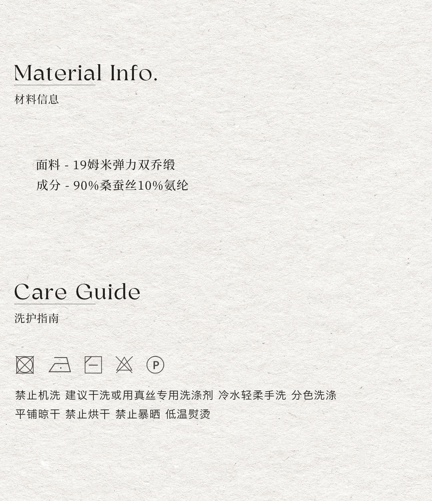 Material composition | Mulberry silk 90% polyurethane elastic fiber (spandex) 0% |