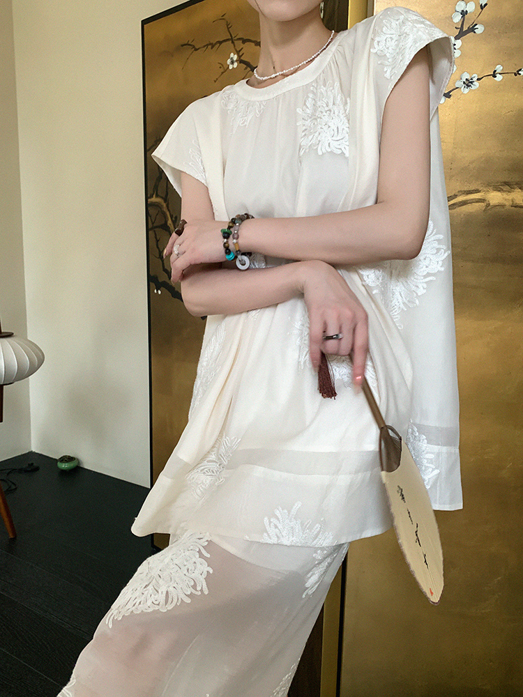 ASAYA3051 Dimple customized off-white summer gentle style loose top