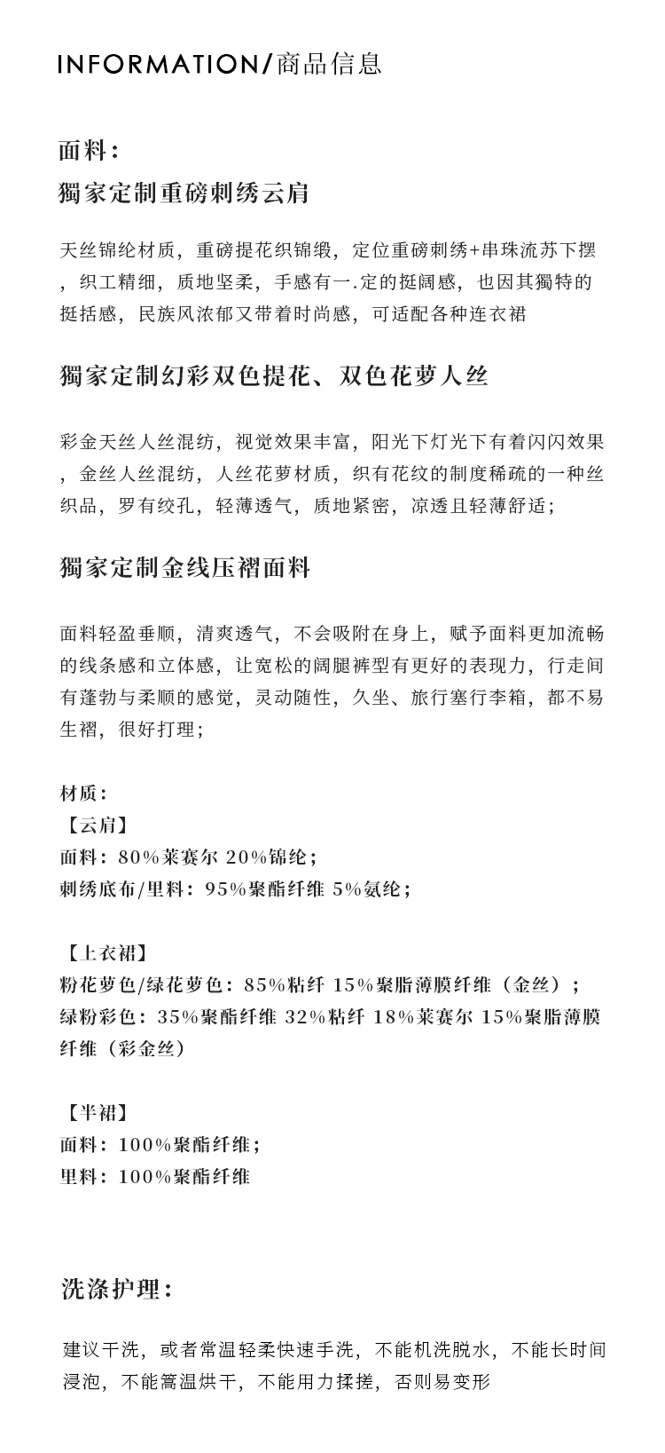 云肩 | 后中长(不含流苏) | 领围 | 肩宽 |