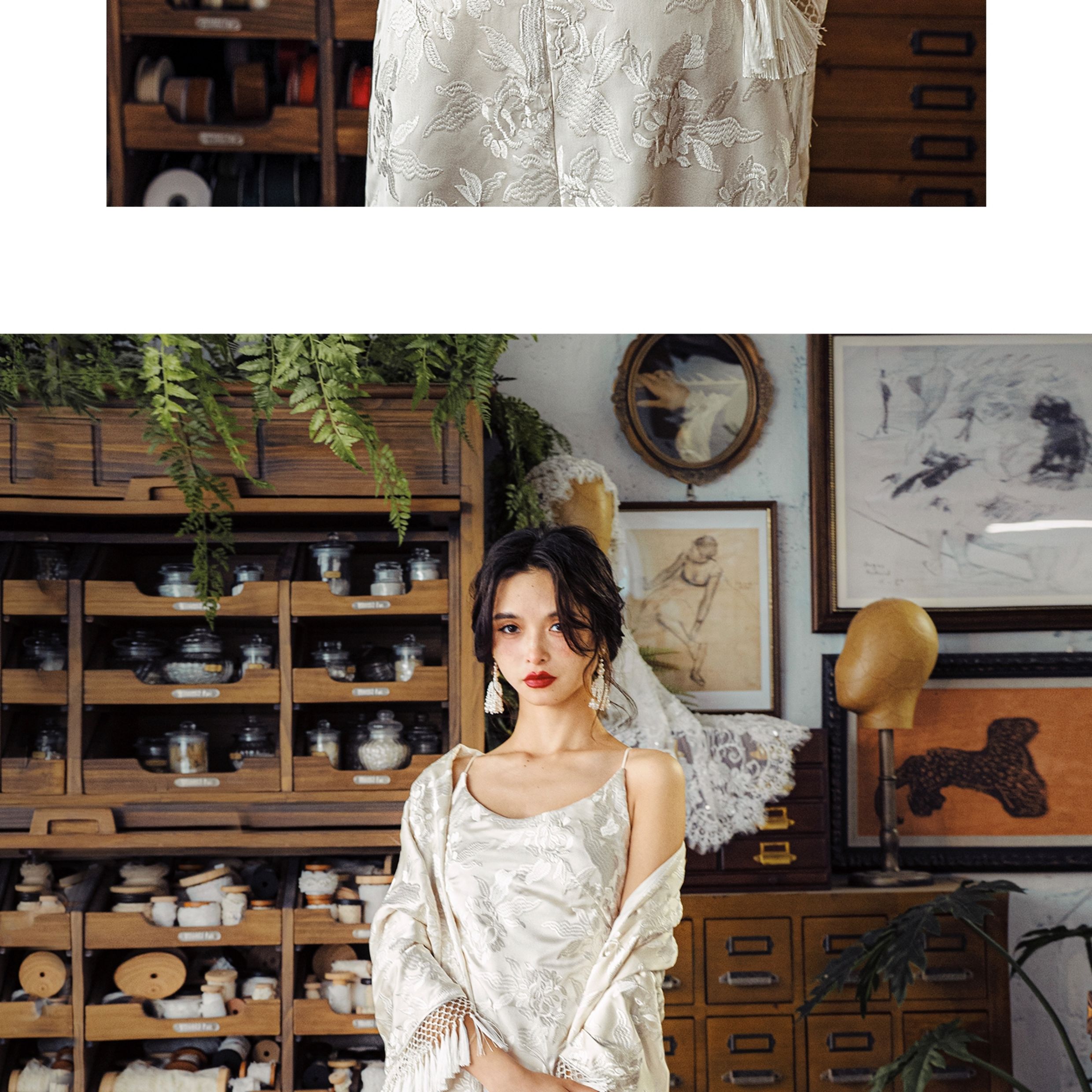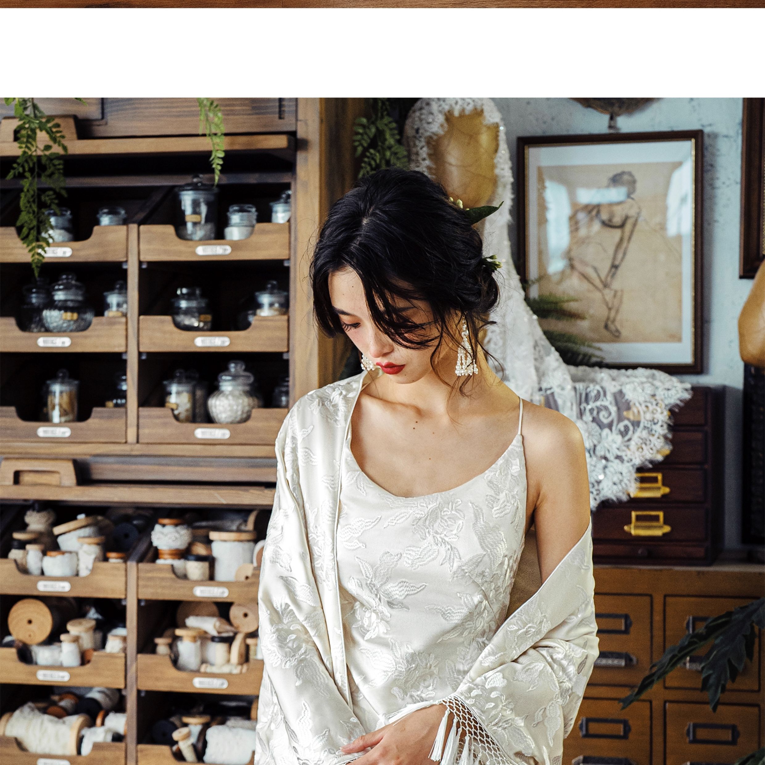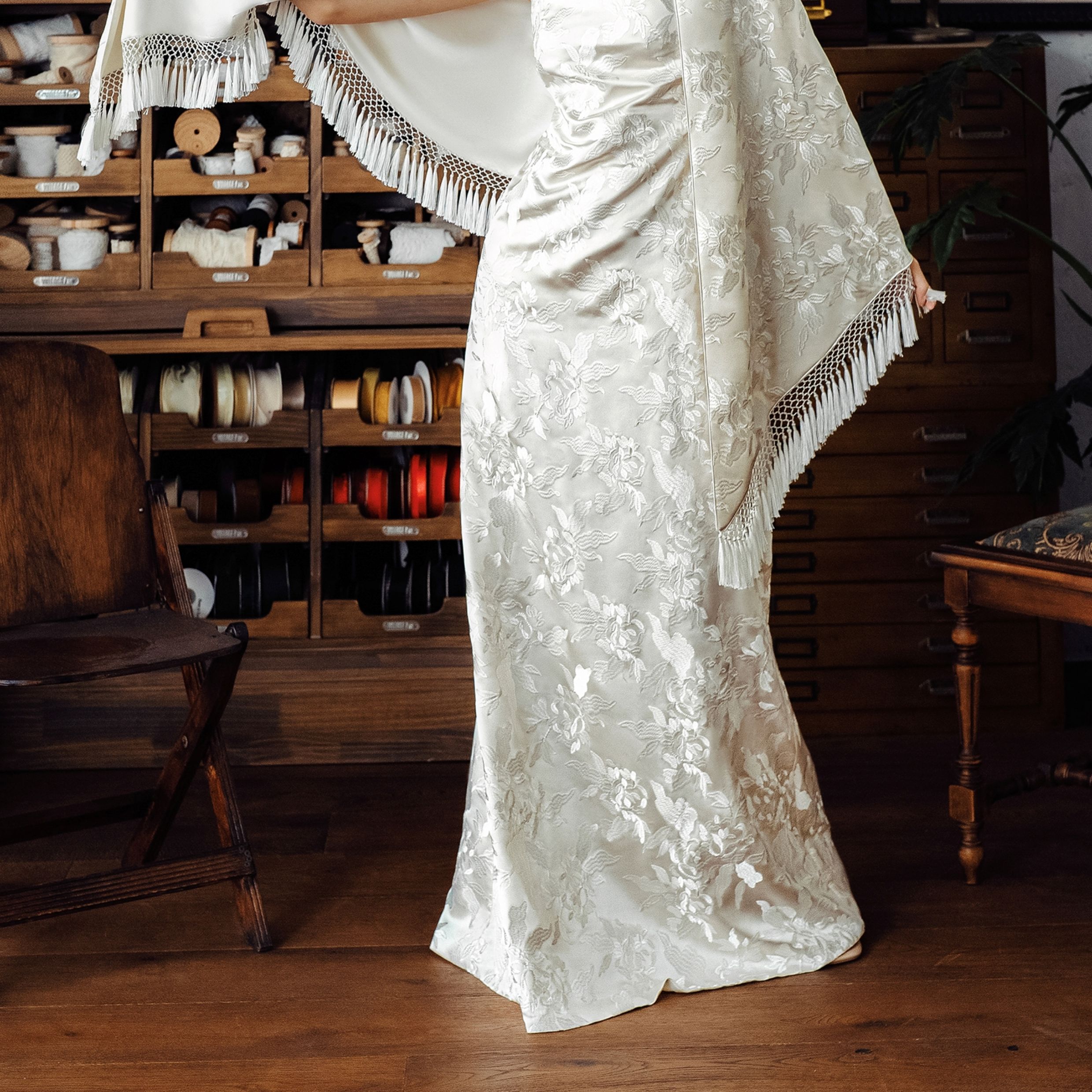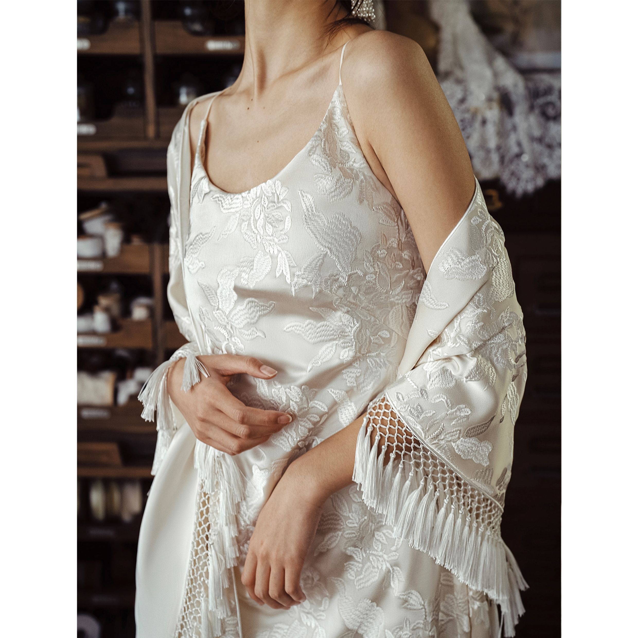 Asaya1245 - Satin Embroidered Sling Dress French and satin shawl with a high-end cape scarf