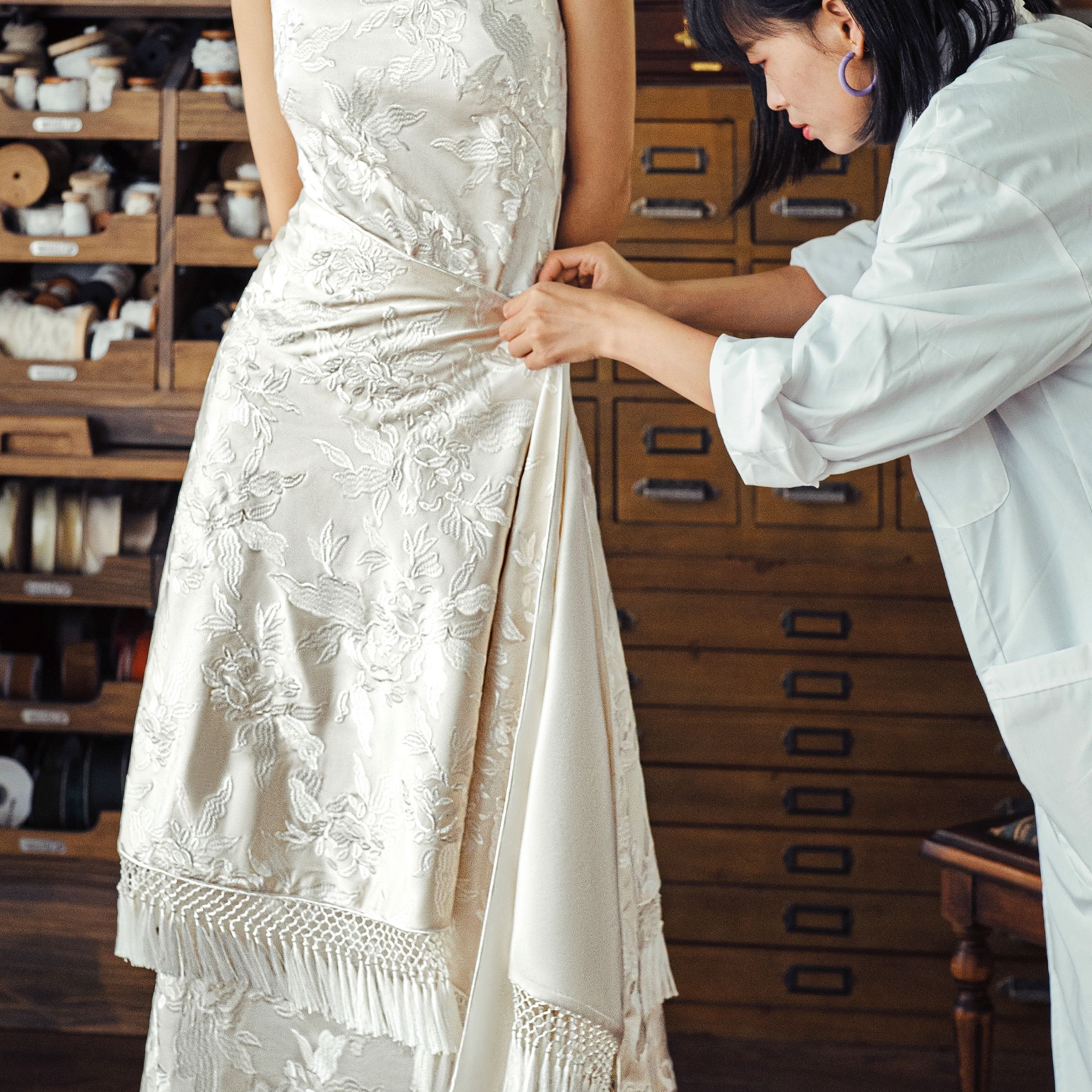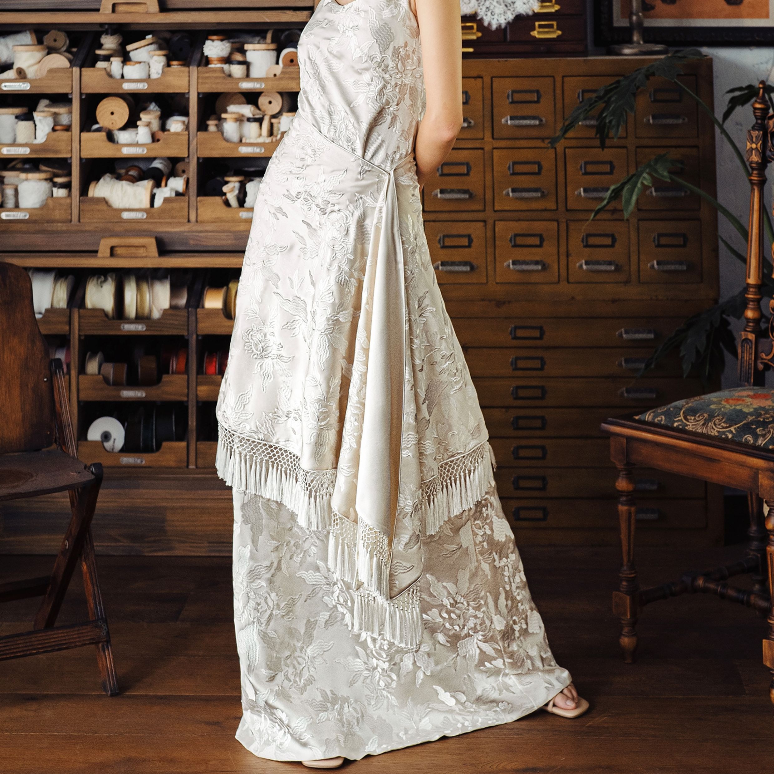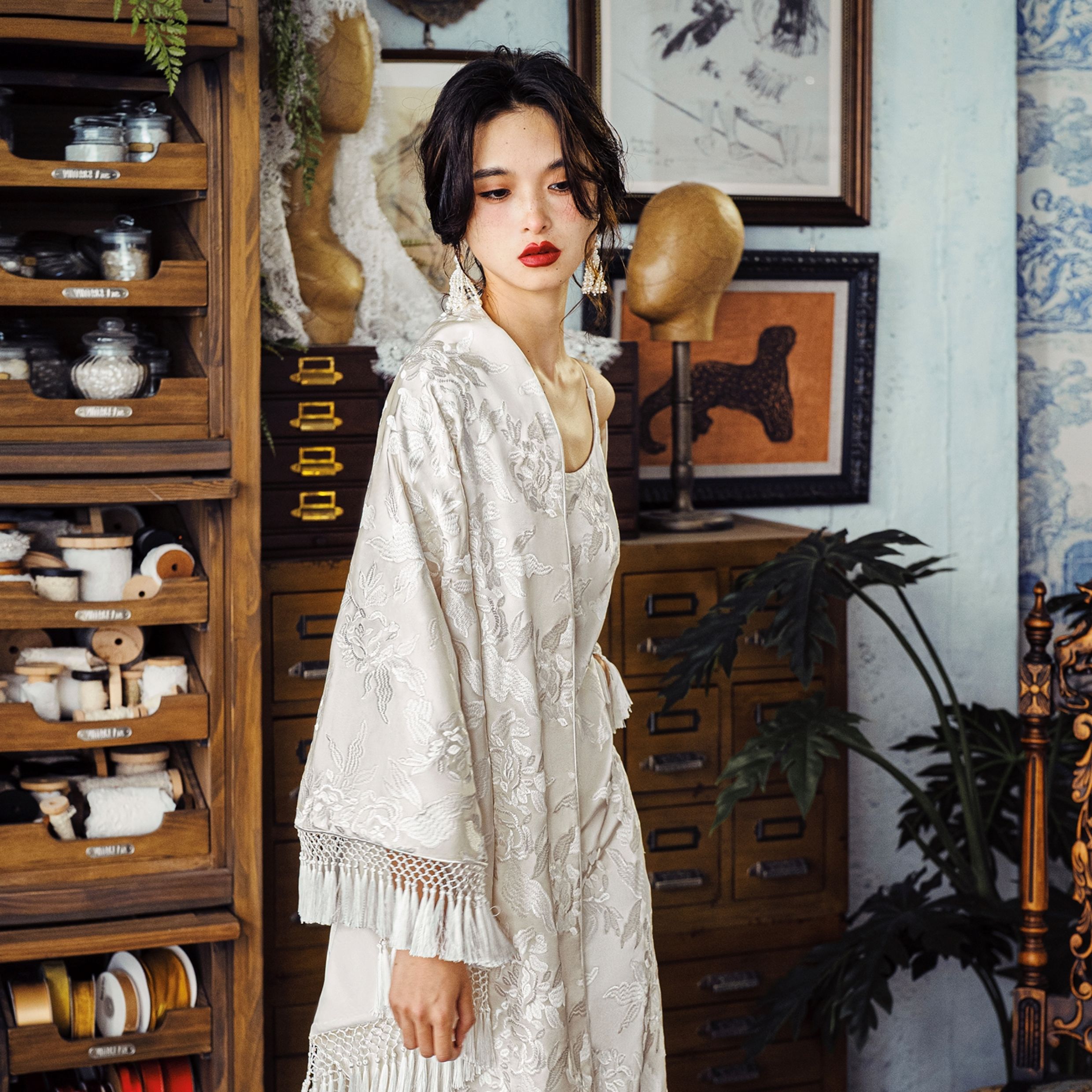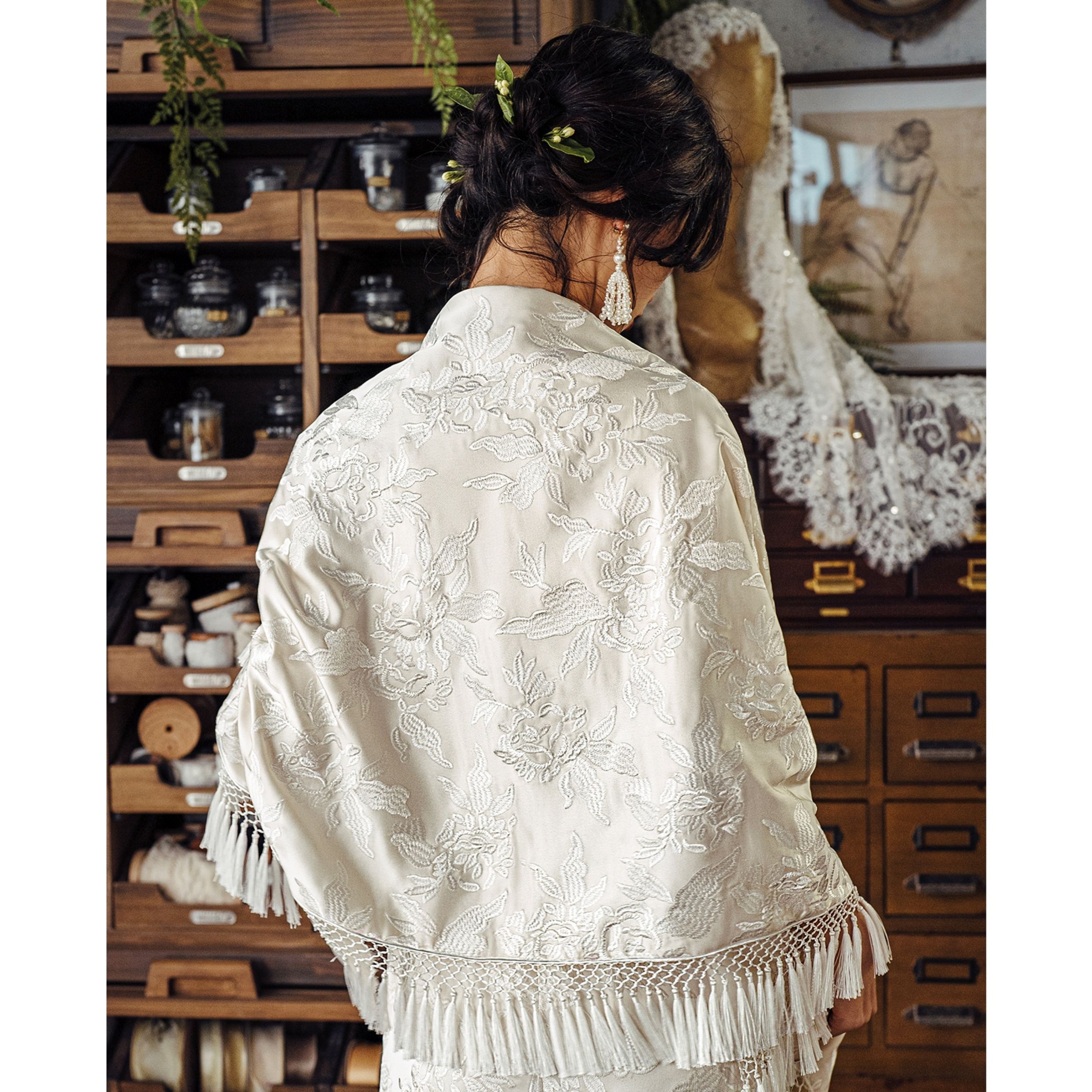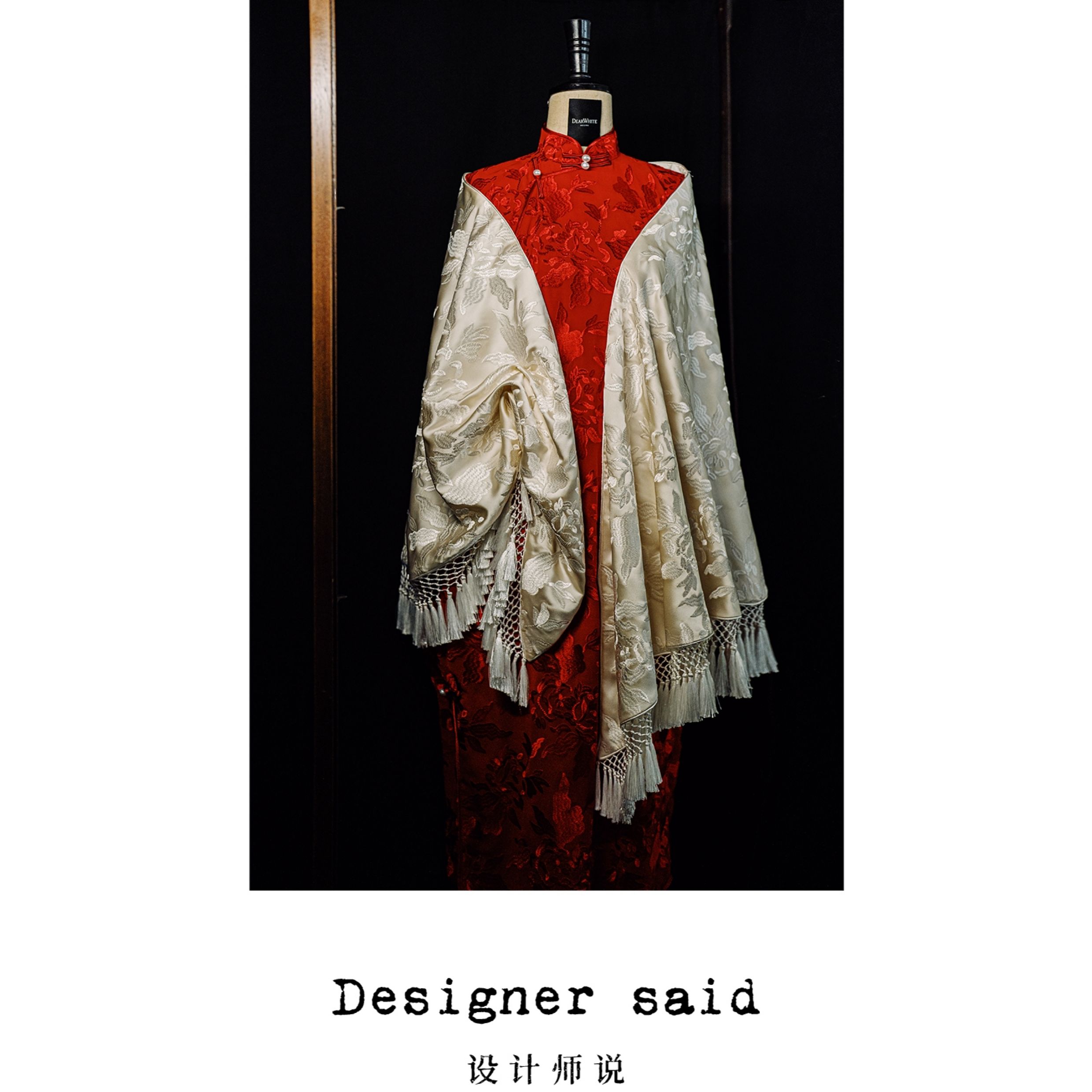 Asaya1245 - Satin Embroidered Sling Dress French and satin shawl with a high-end cape scarf