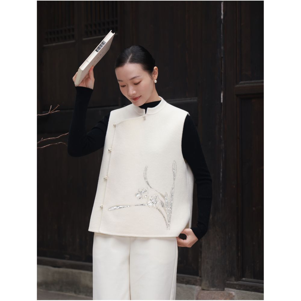 ASAYA5511 – Oriental Blossom Wool Vest 🌸🖤