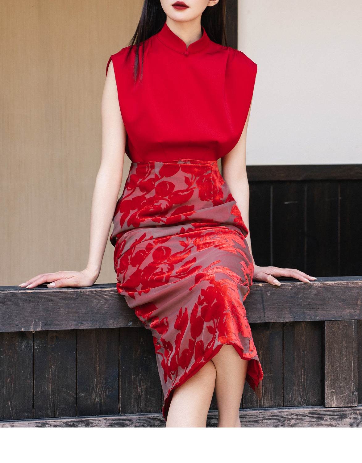 ASAYA2709 New Chinese style improved cheongsam “Carmine” autumn and winter bridal dress red toasting suit