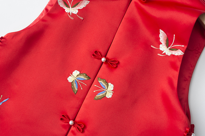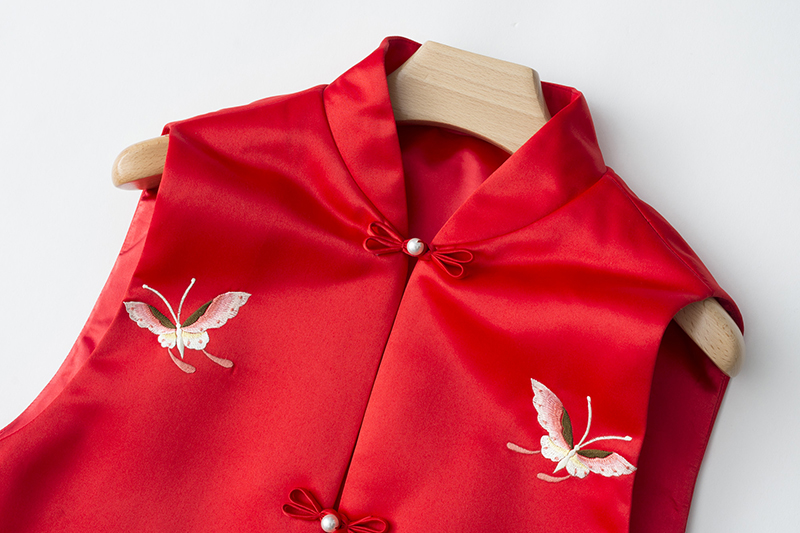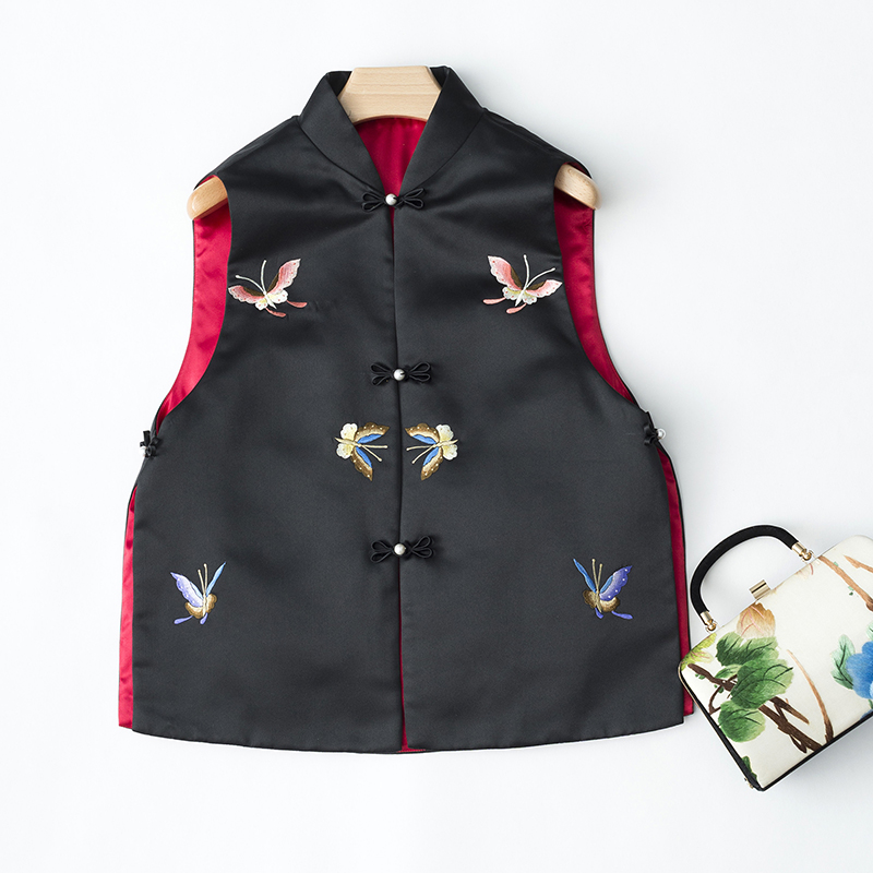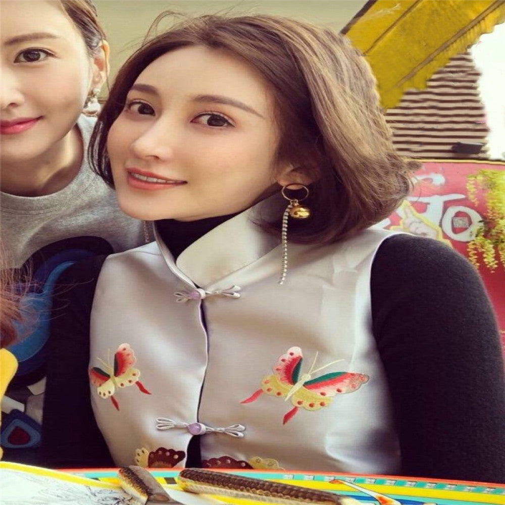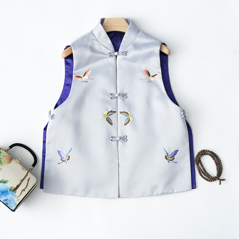 ASAYA2735 Elegant classic cheongsam for women retro Chinese style new Chinese style short butterfly embroidered stand collar vest