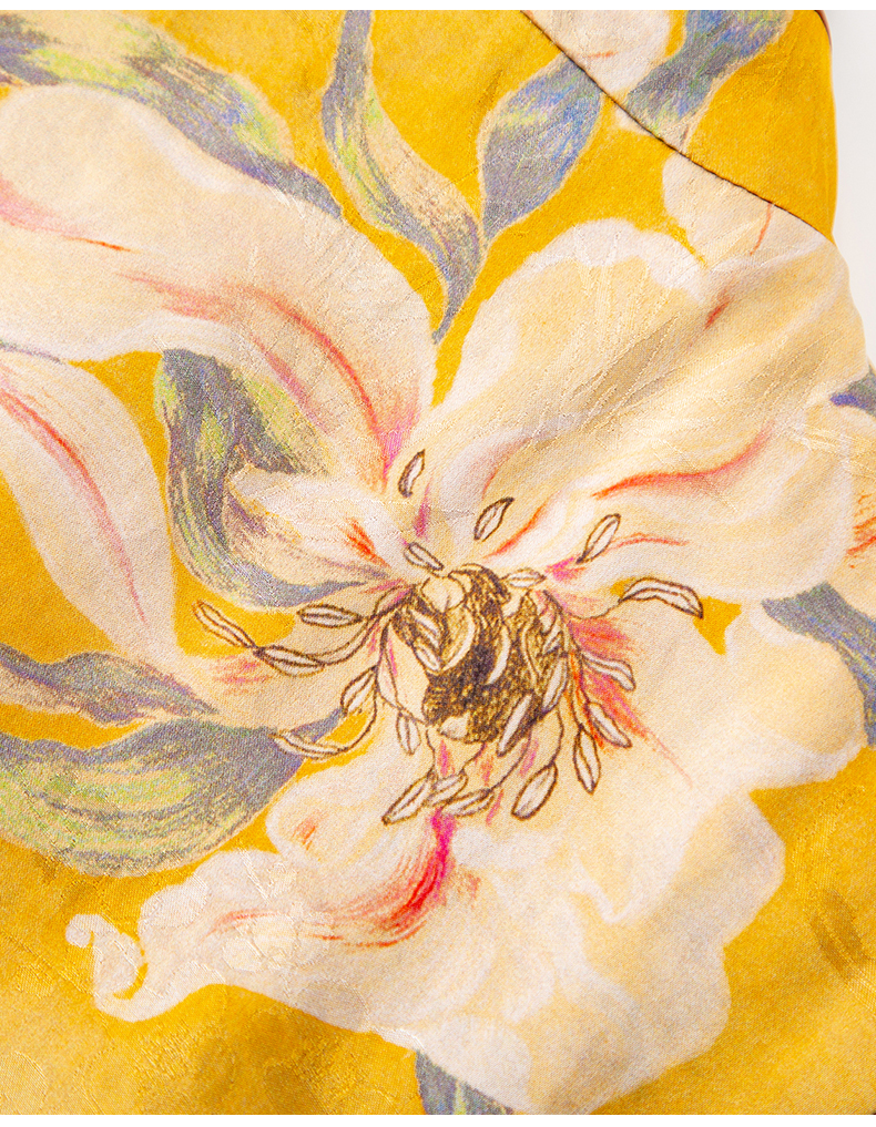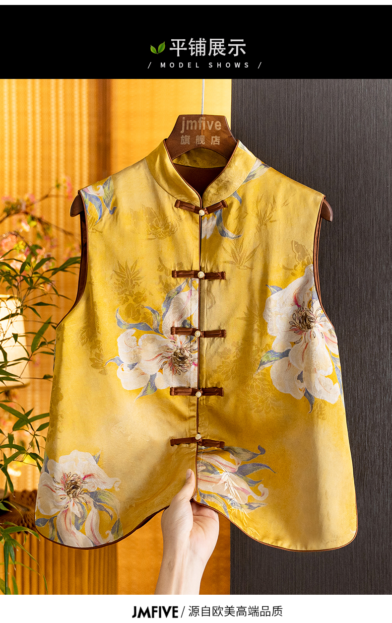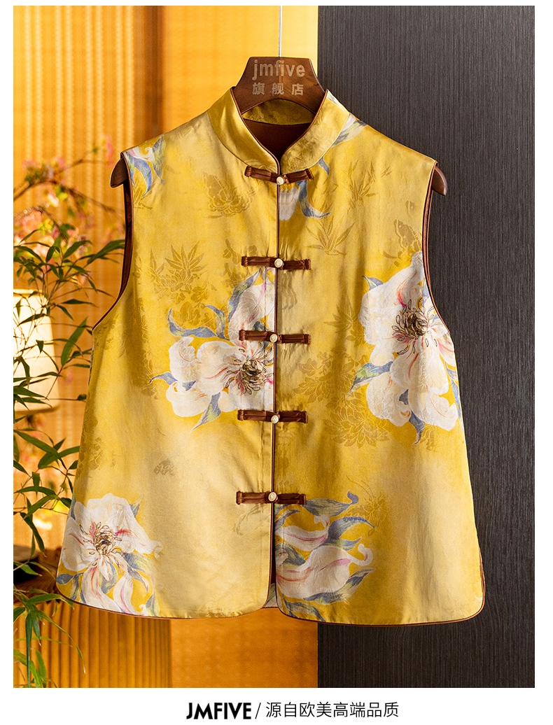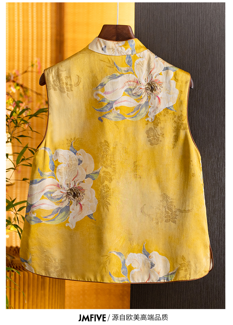 ASAYA4372 - Yellow Floral Embroidered Silk Vest with Pearl Button Closure 🌸🐝