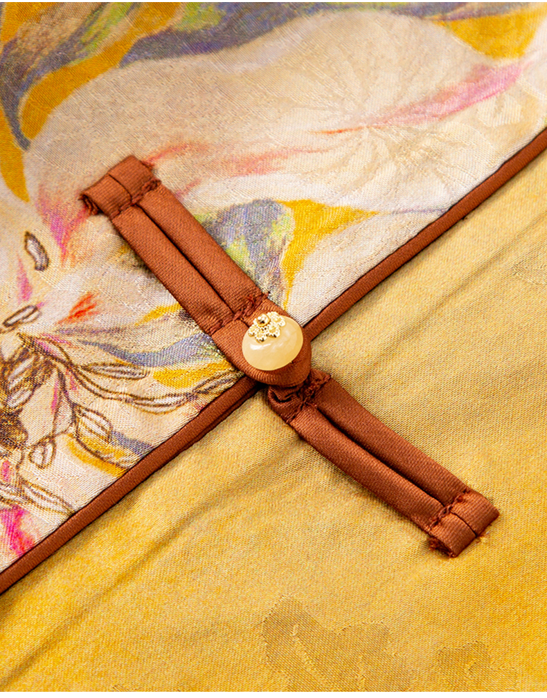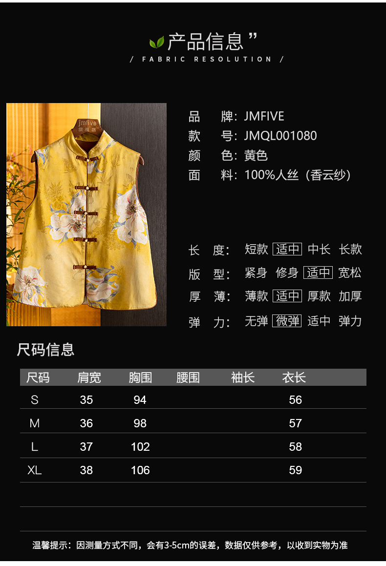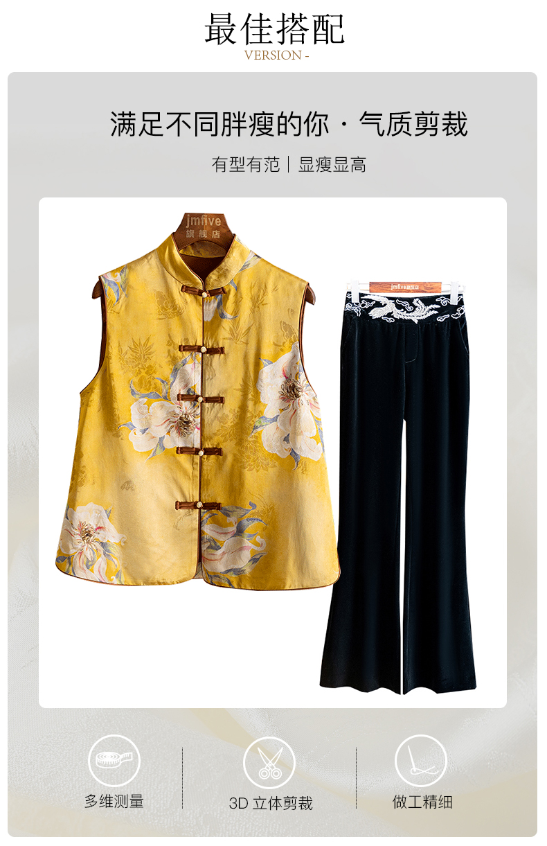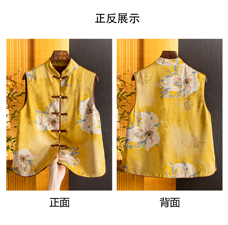 ASAYA4372 - Yellow Floral Embroidered Silk Vest with Pearl Button Closure 🌸🐝