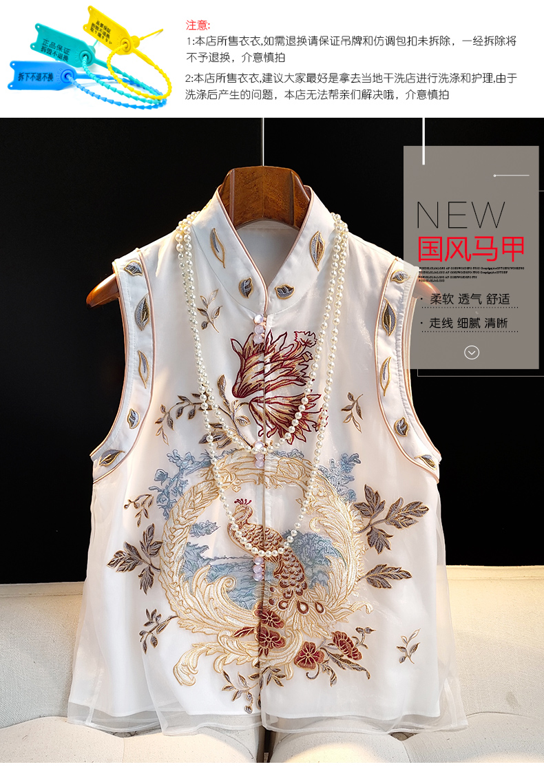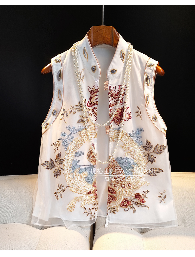 Asaya809 - Eugen embroidery national style vest 2025 summer new improved retro standing collar Chinese vest Tang style women s top