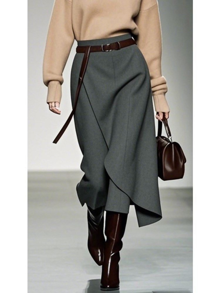 ASAYA5308 – Sculpted Wool Asymmetry Skirt 🤎✨