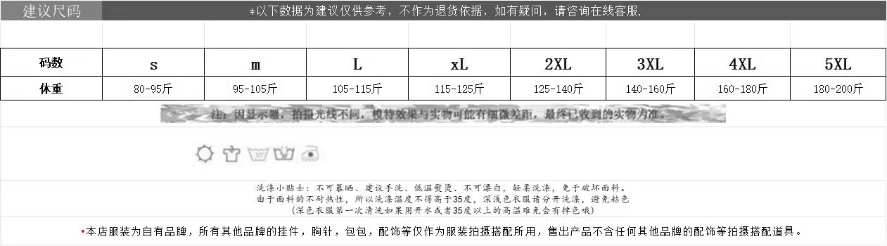 | Size | S80-95 jin, M95-105 jin, L105-115 jin, XL115-125 jin, XXL125-140 jin, XXXL140-160 jin |