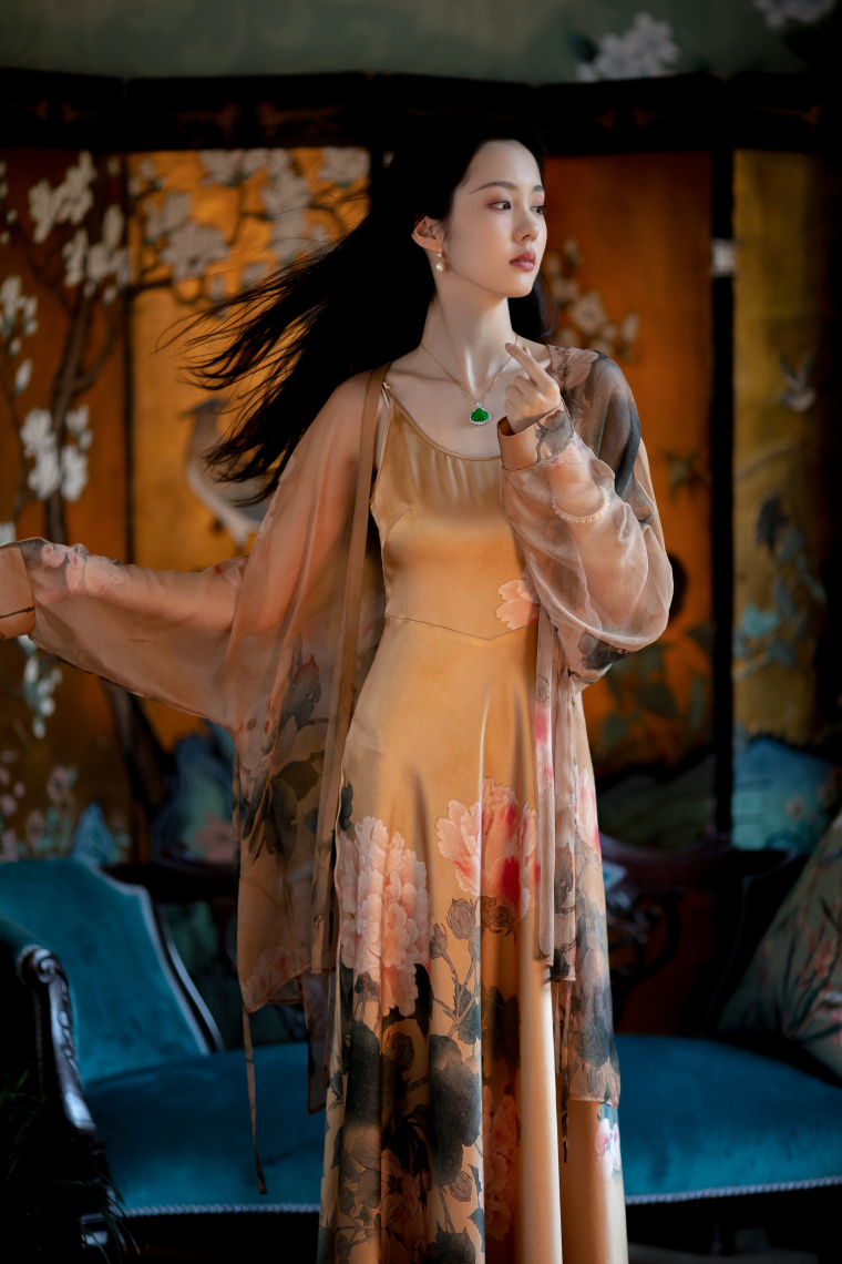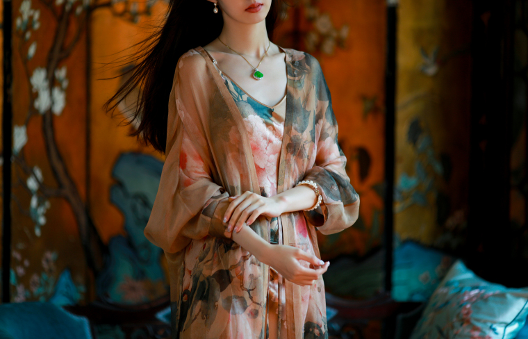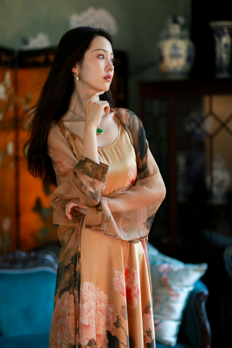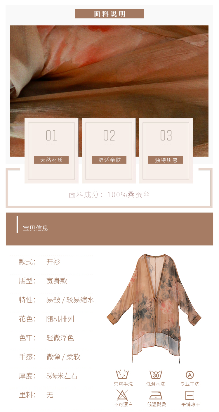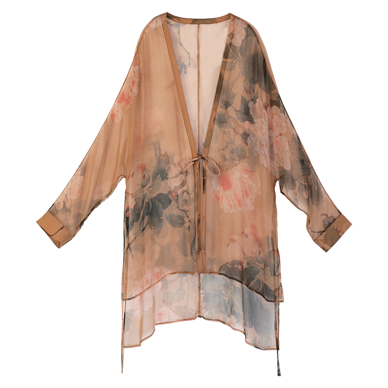 Asaya1569 - Silk smooth crepe light and loose lace-up versatile cheongsam coat