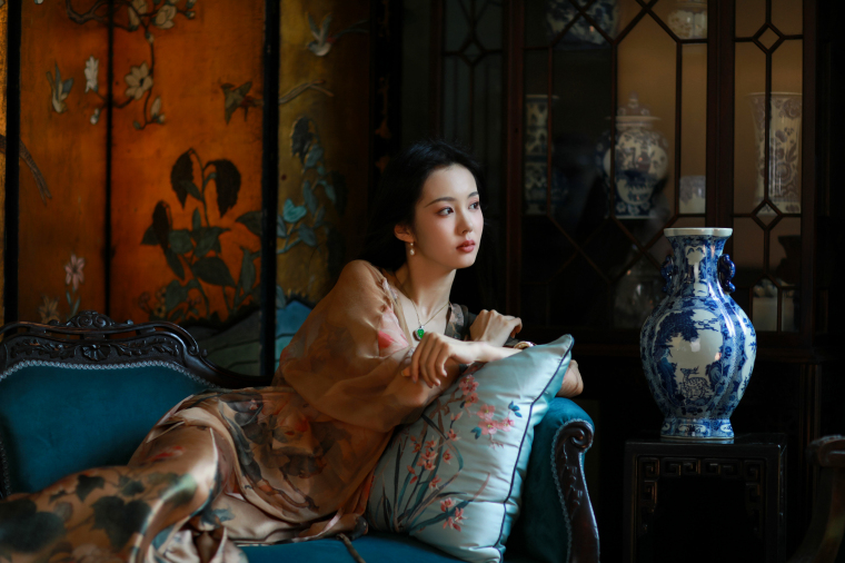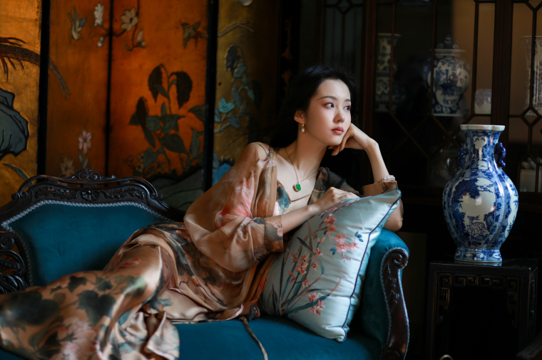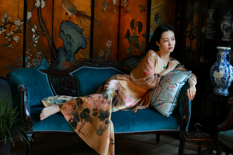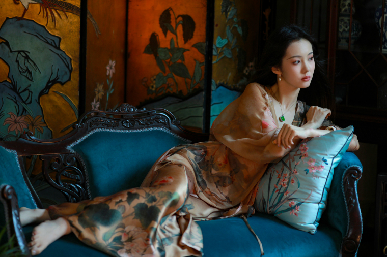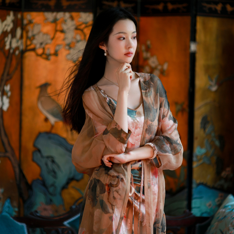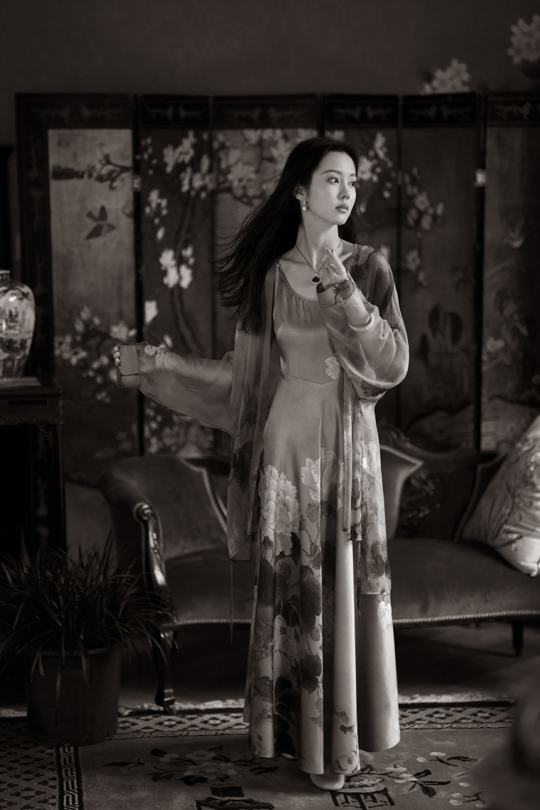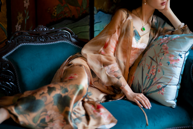 Asaya1569 - Silk smooth crepe light and loose lace-up versatile cheongsam coat