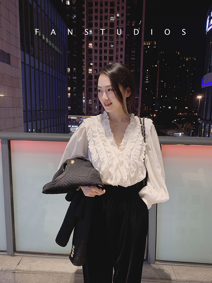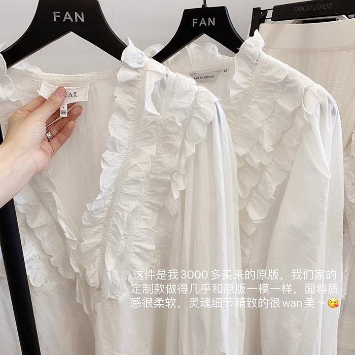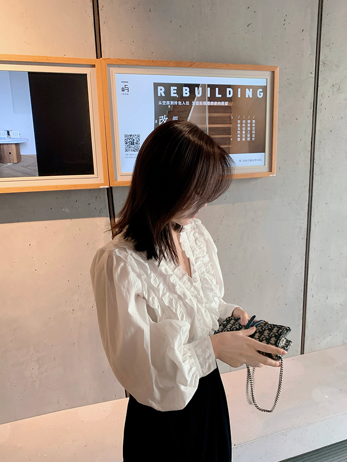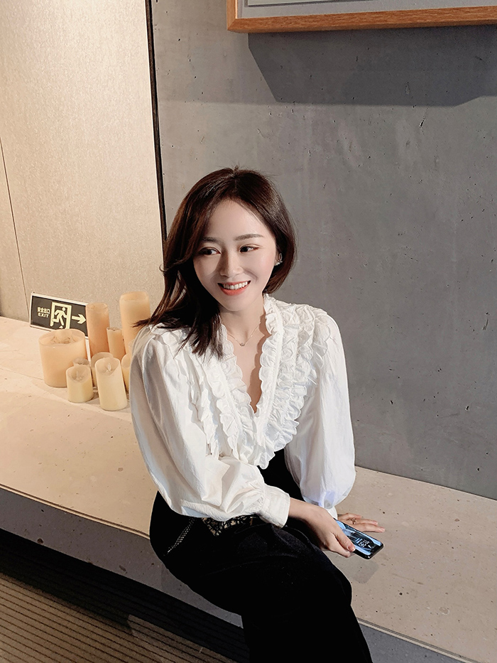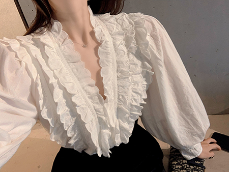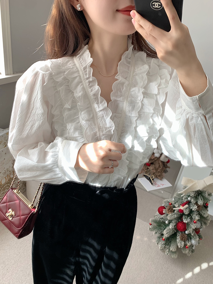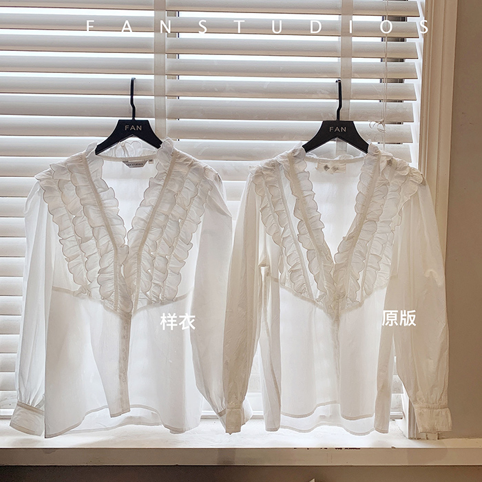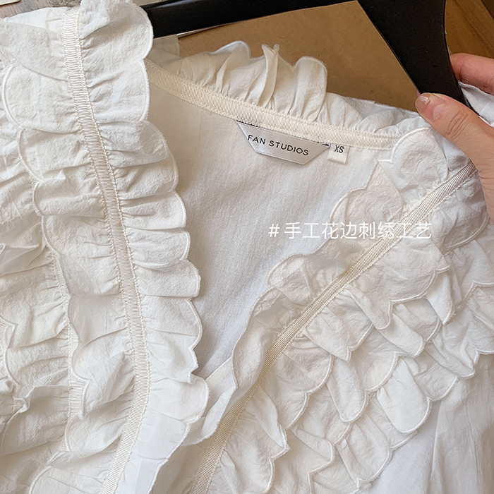 Asaya0335 - FAN New Product Si Clothing Collar Art French V neck High Difficulty Making Lace Shirt