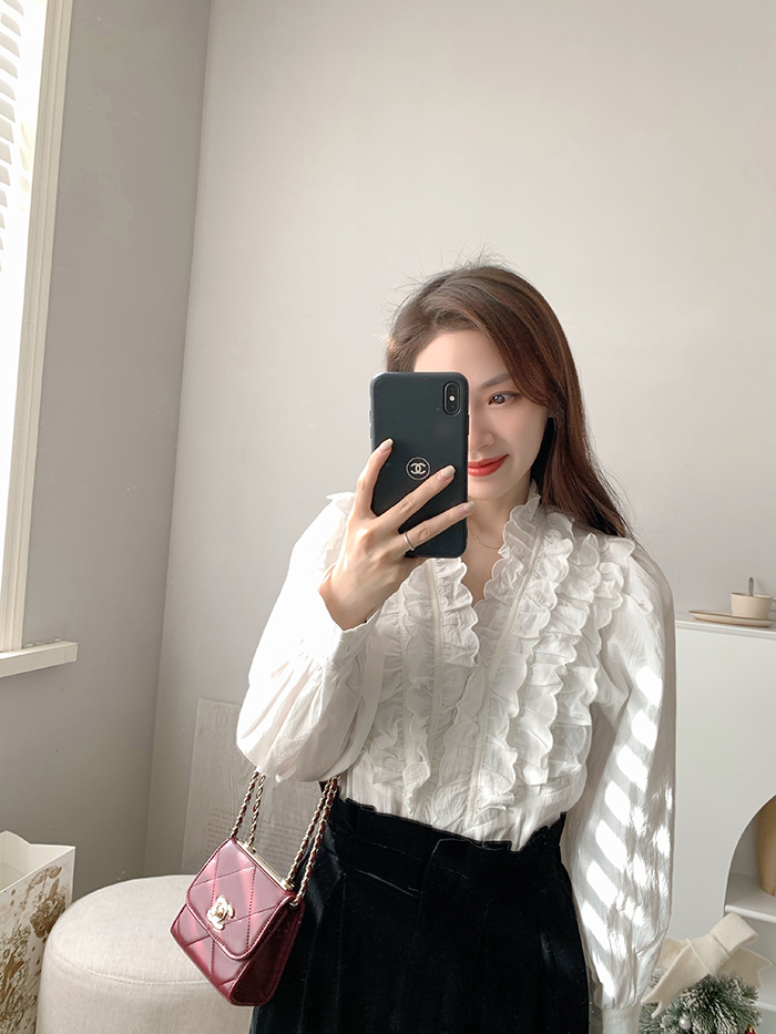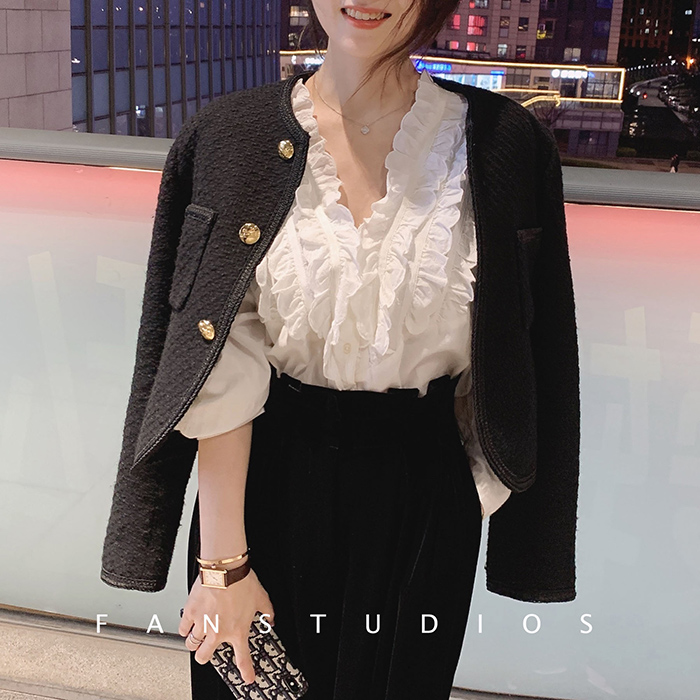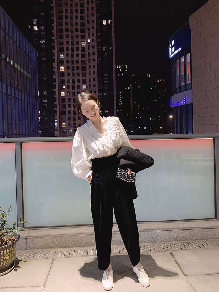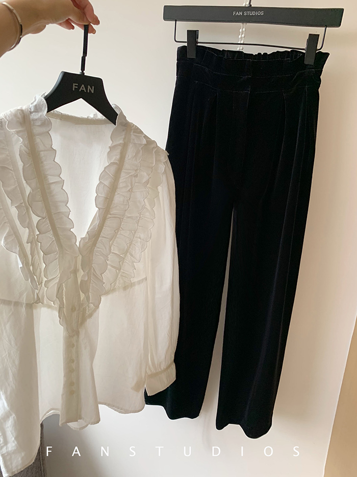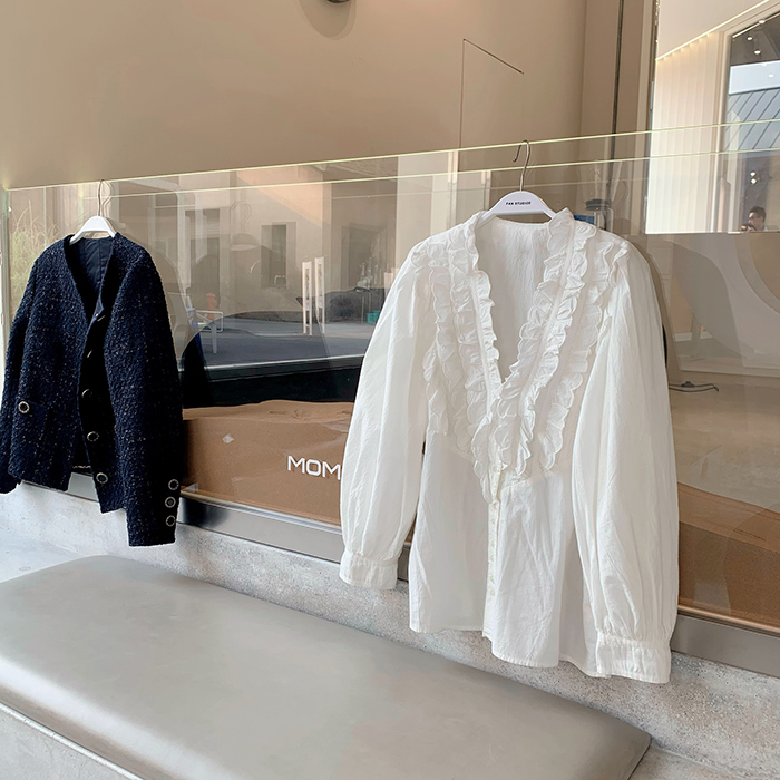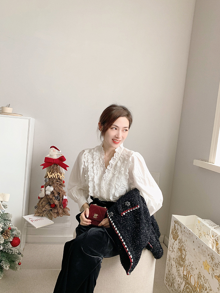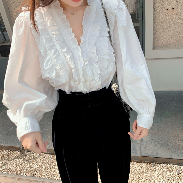 Asaya0335 - FAN New Product Si Clothing Collar Art French V neck High Difficulty Making Lace Shirt