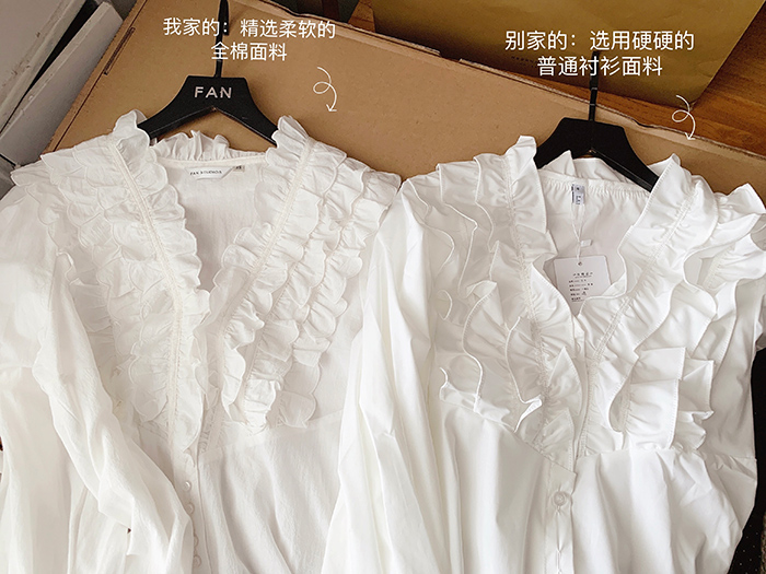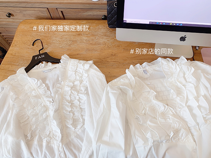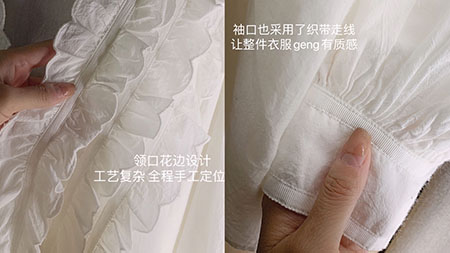 领口工艺十分复杂,只有进口的机器可以做,全程手工定位