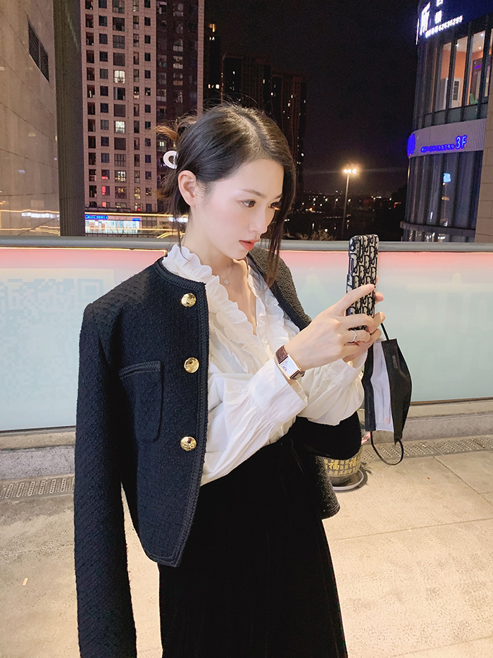 我搭配了一套黑色丝绒库,一套就是日常高级小姐姐