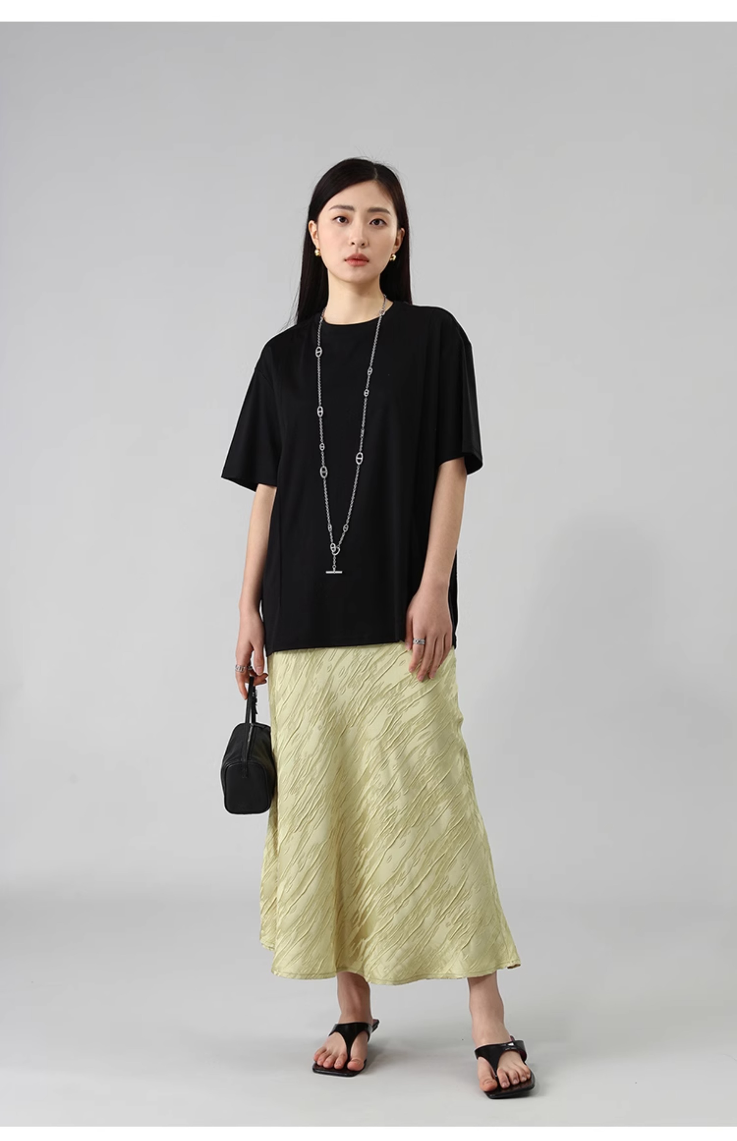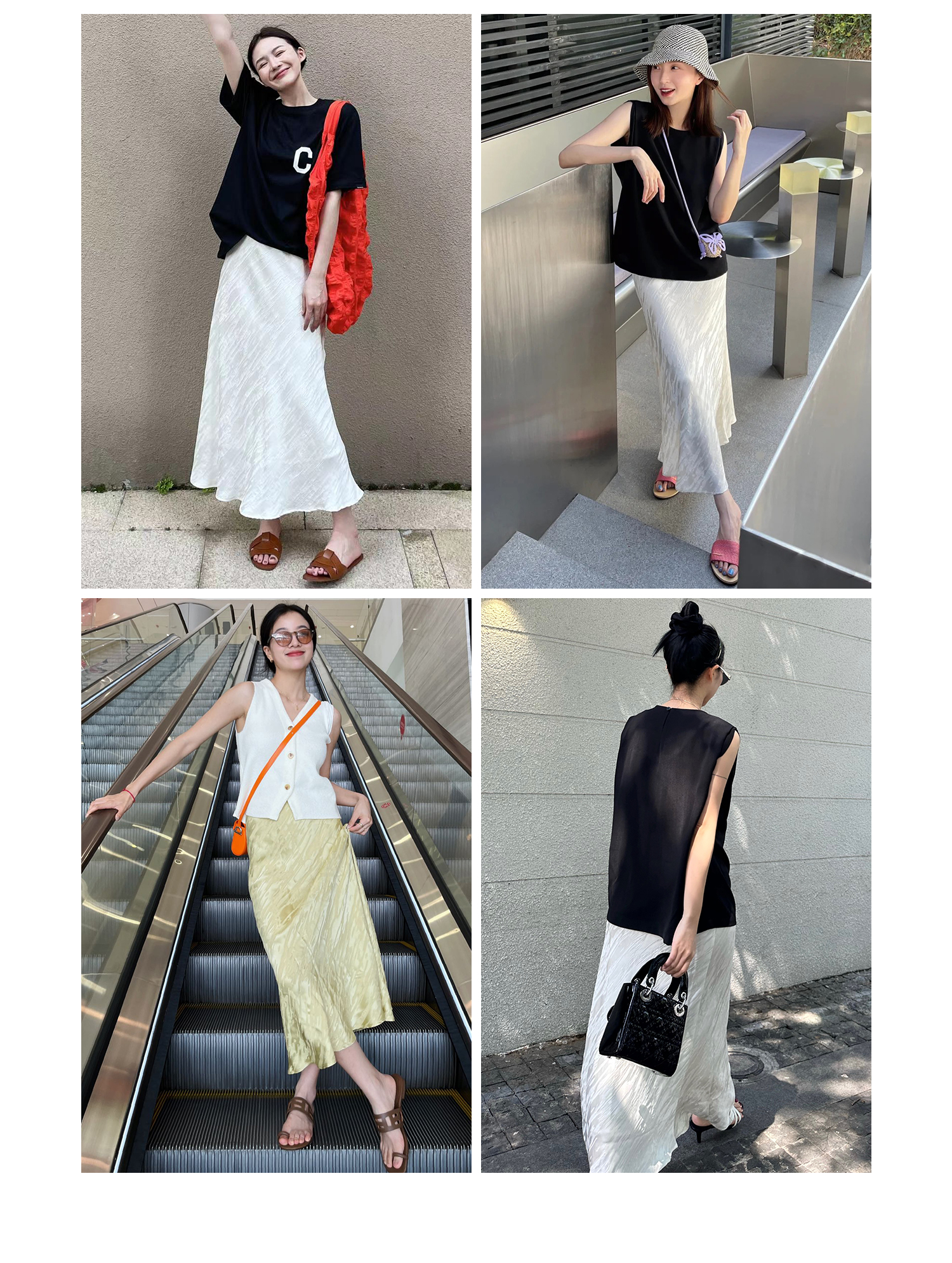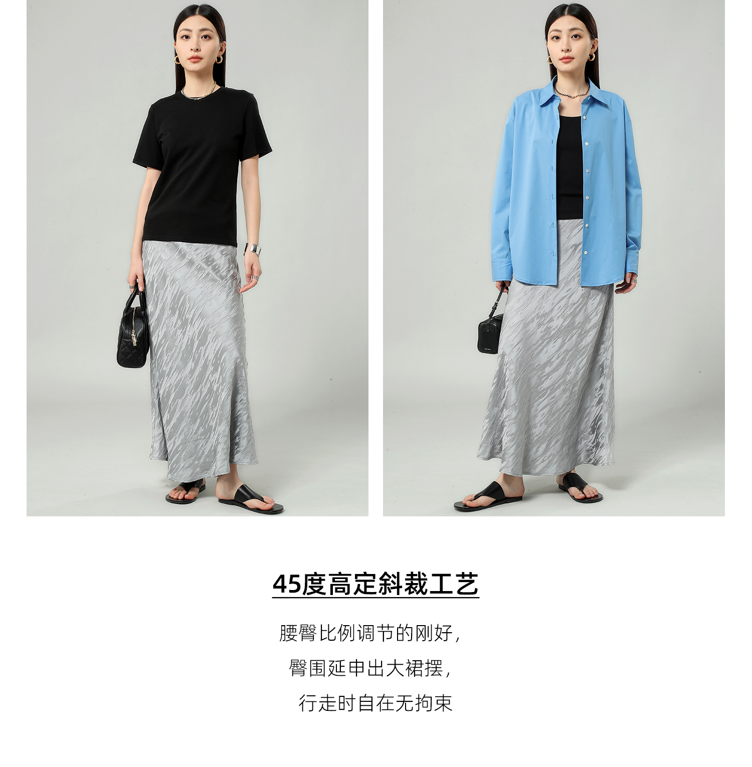 ASAYA2359 New imported jacquard acetate mercerized soft and drapey high-waisted mid-length skir