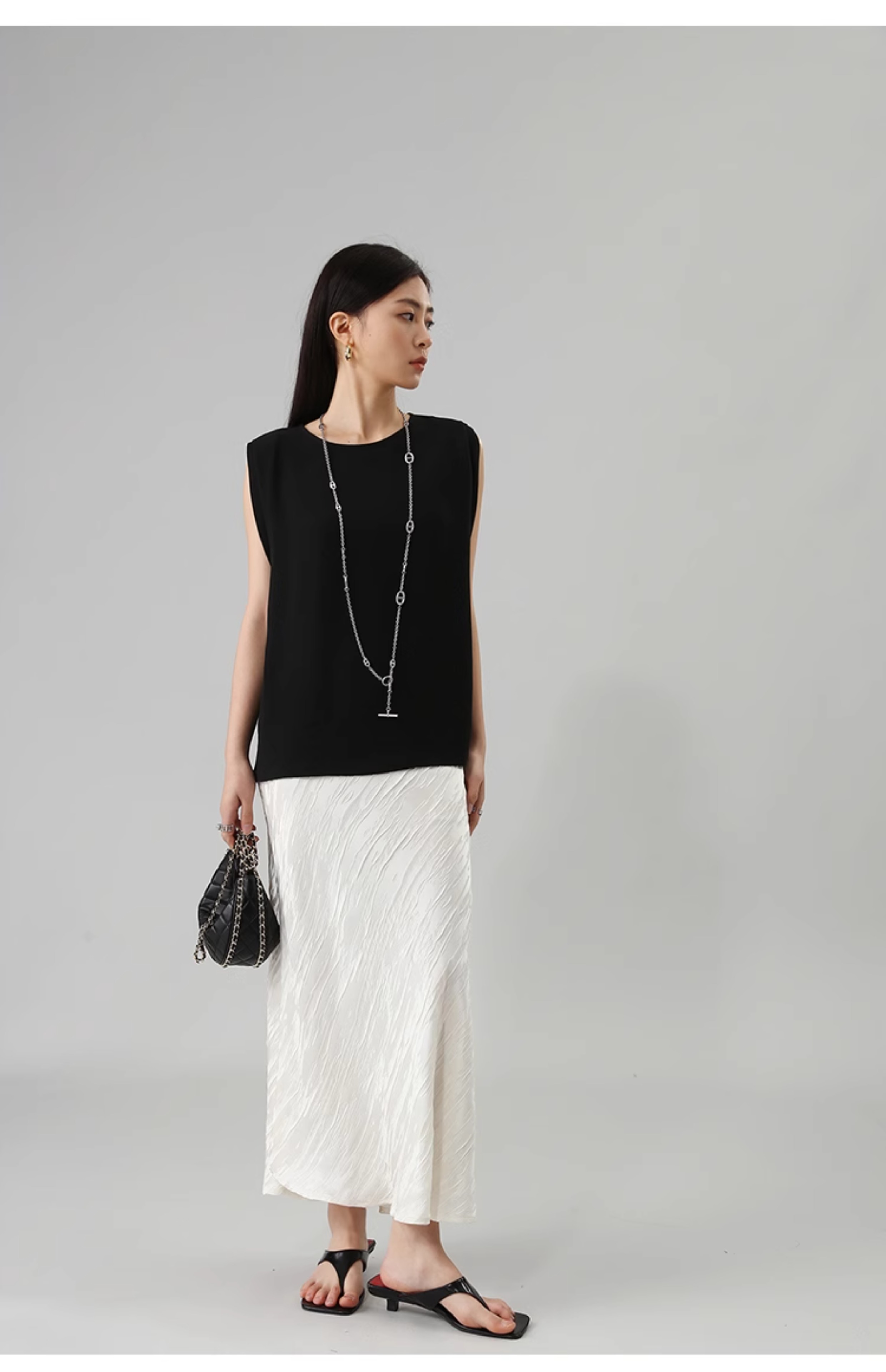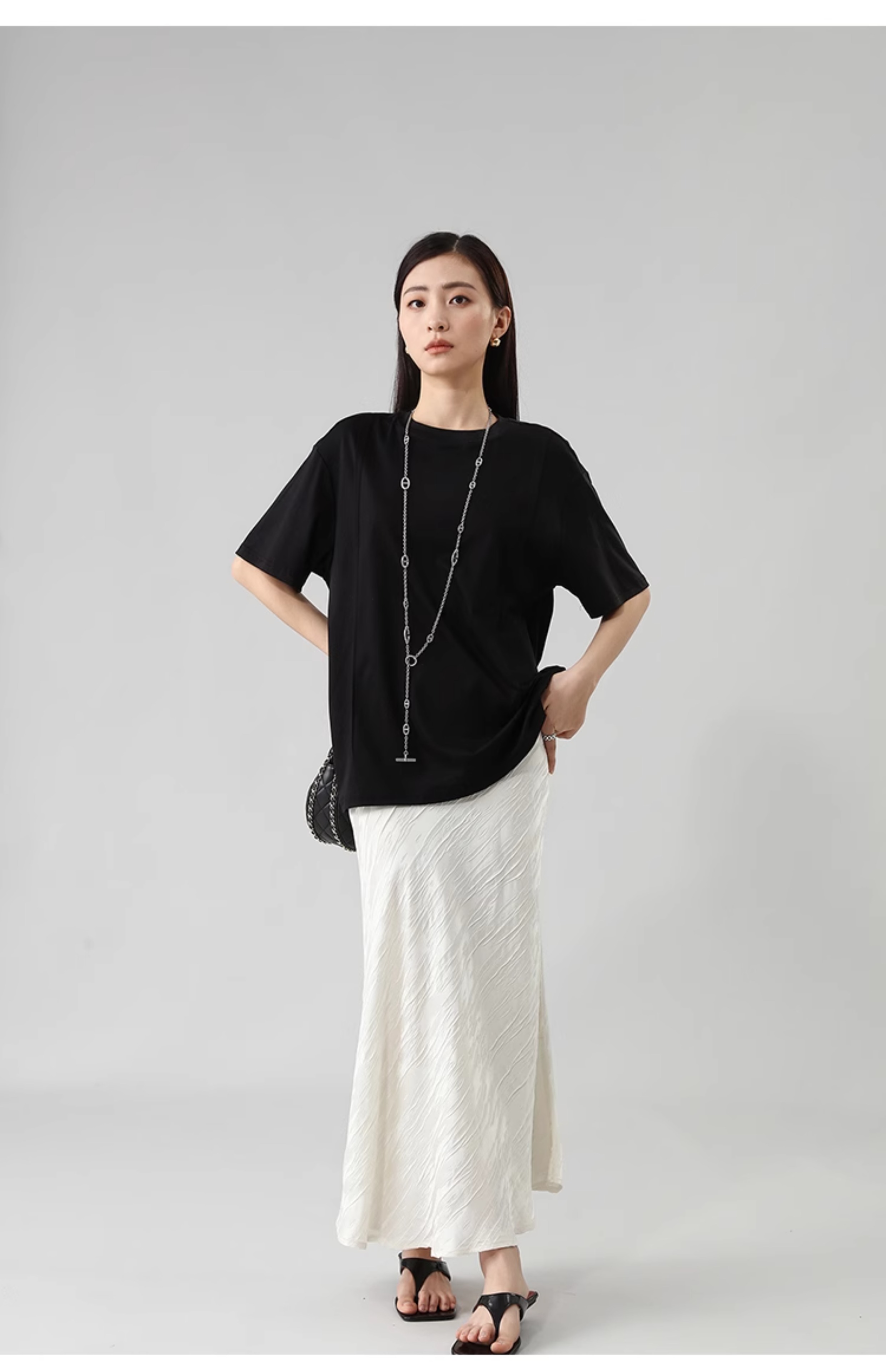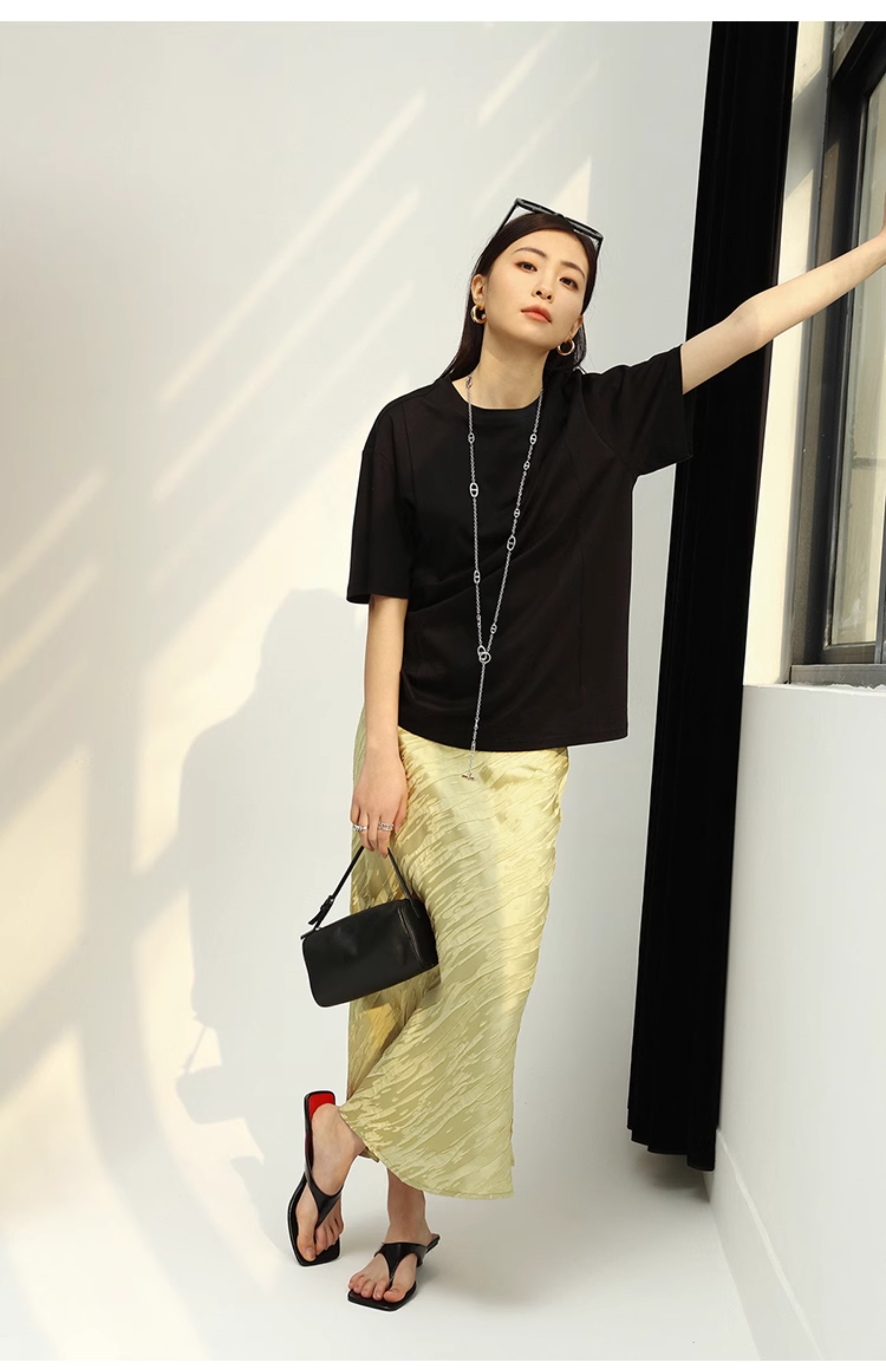 ASAYA2359 New imported jacquard acetate mercerized soft and drapey high-waisted mid-length skir