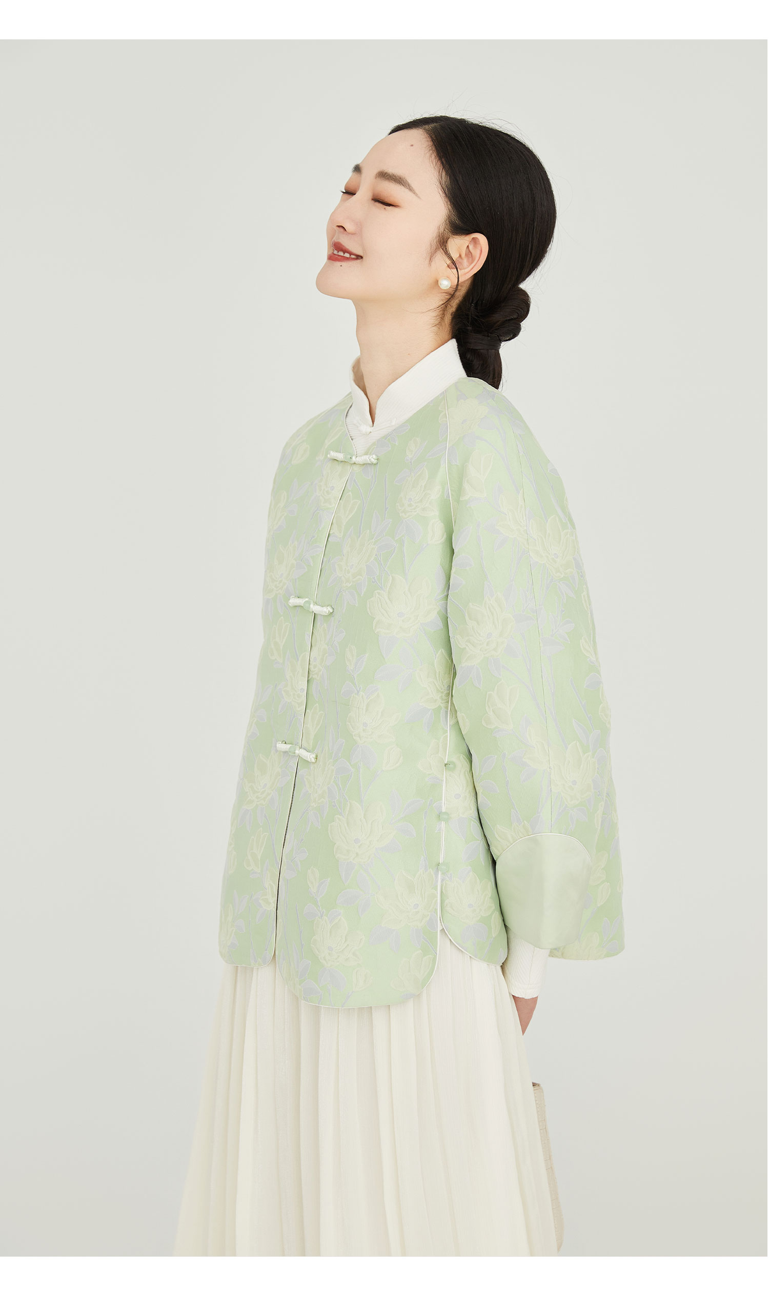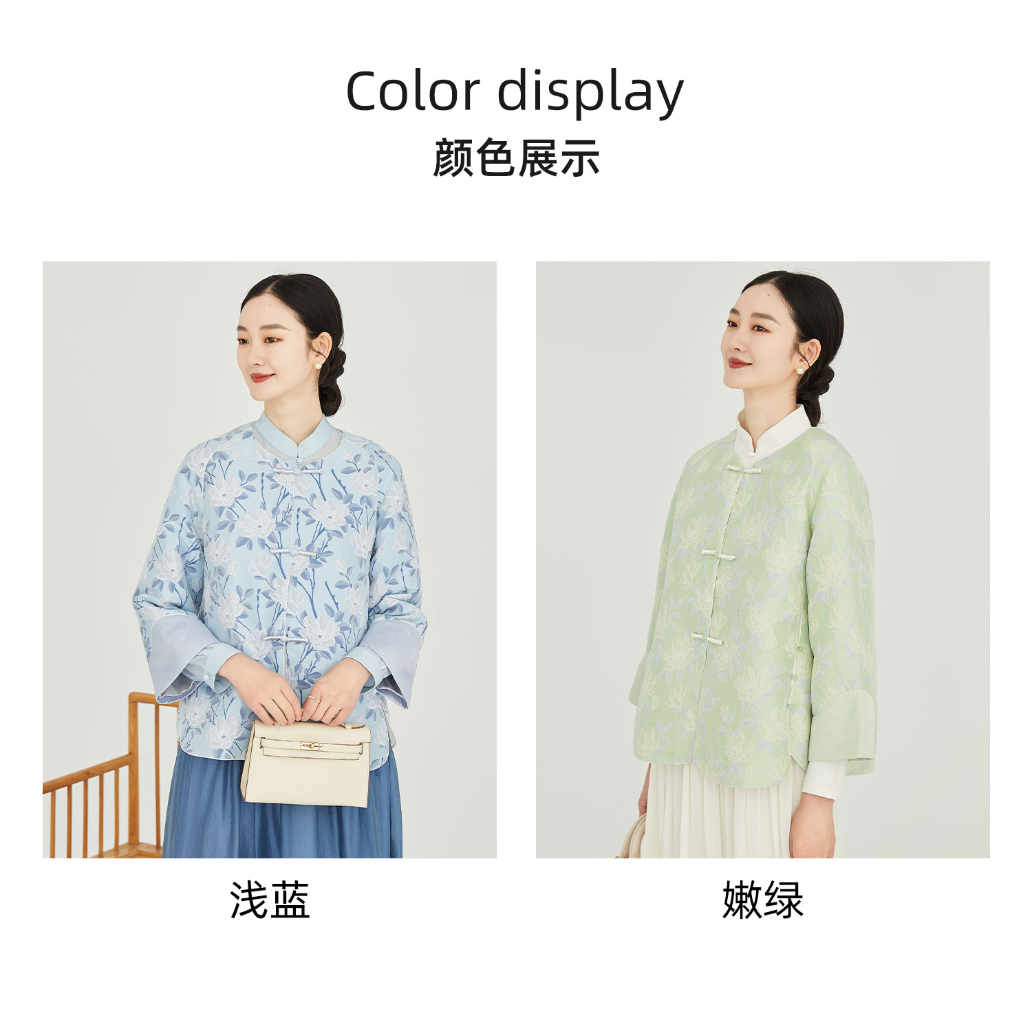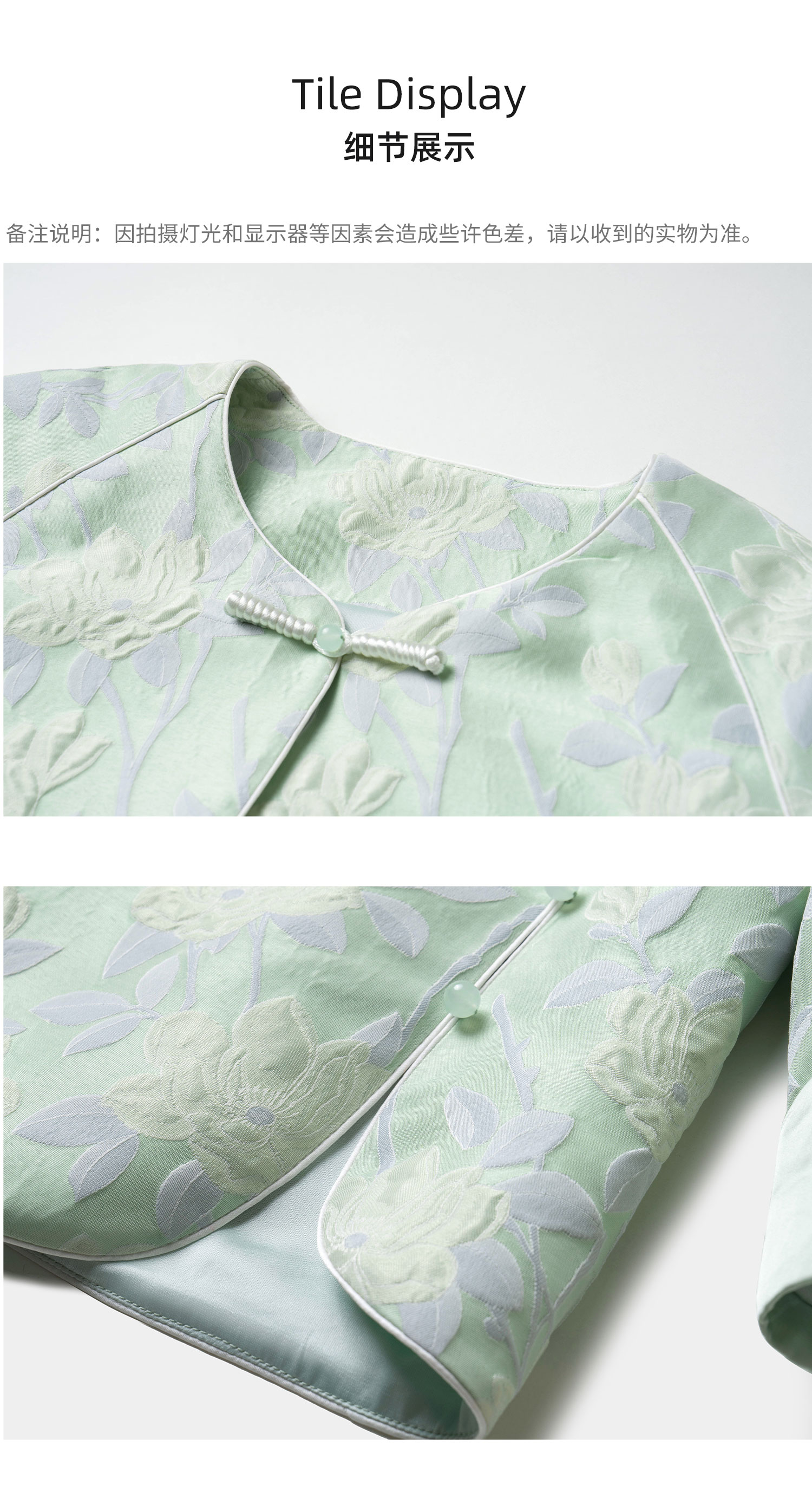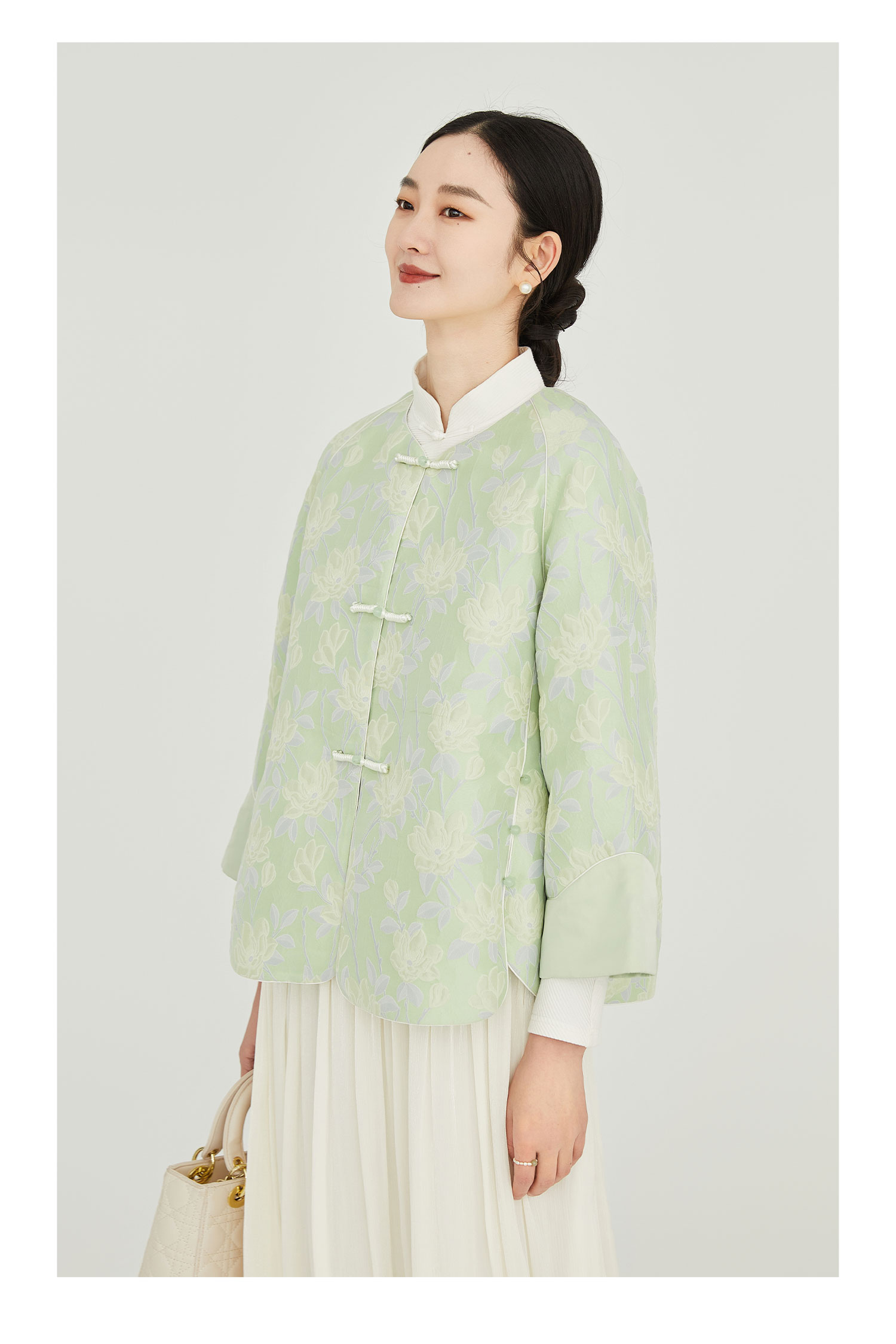 ASAYA1829 Fuyuntang Ya" refreshing. Chinese buckle print short coat women's 23 spring temperament green zen zen suit
