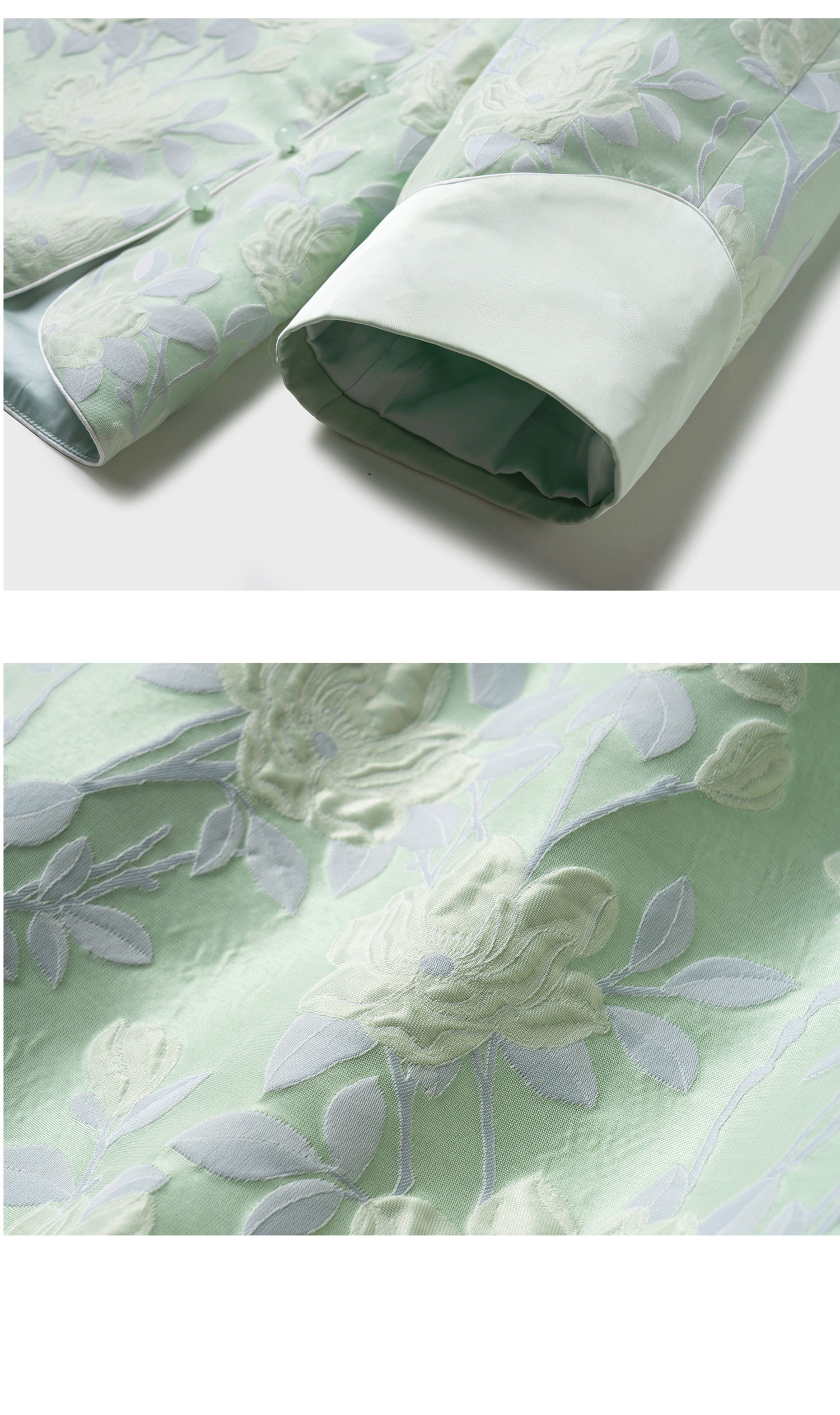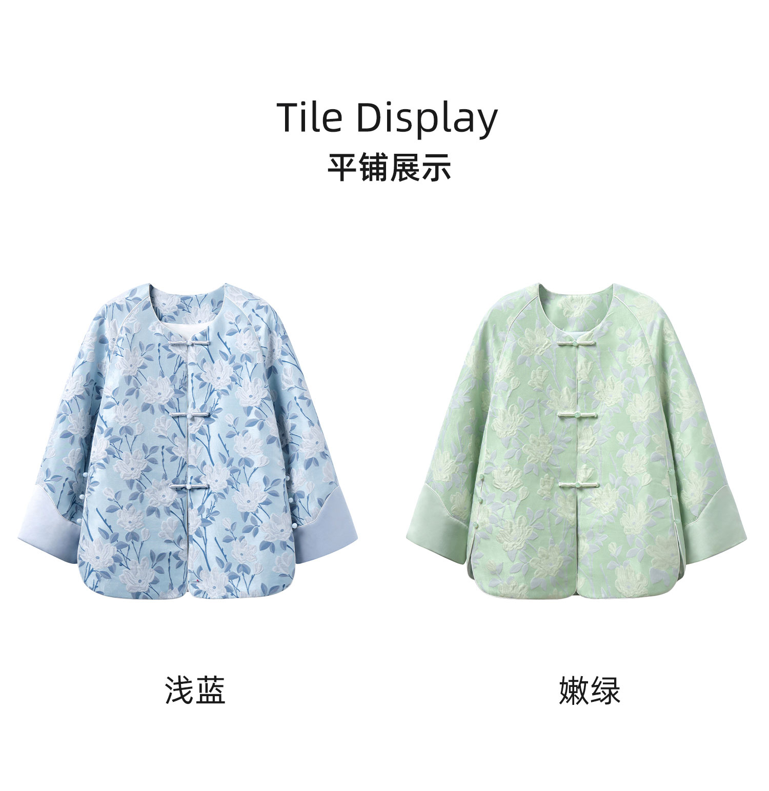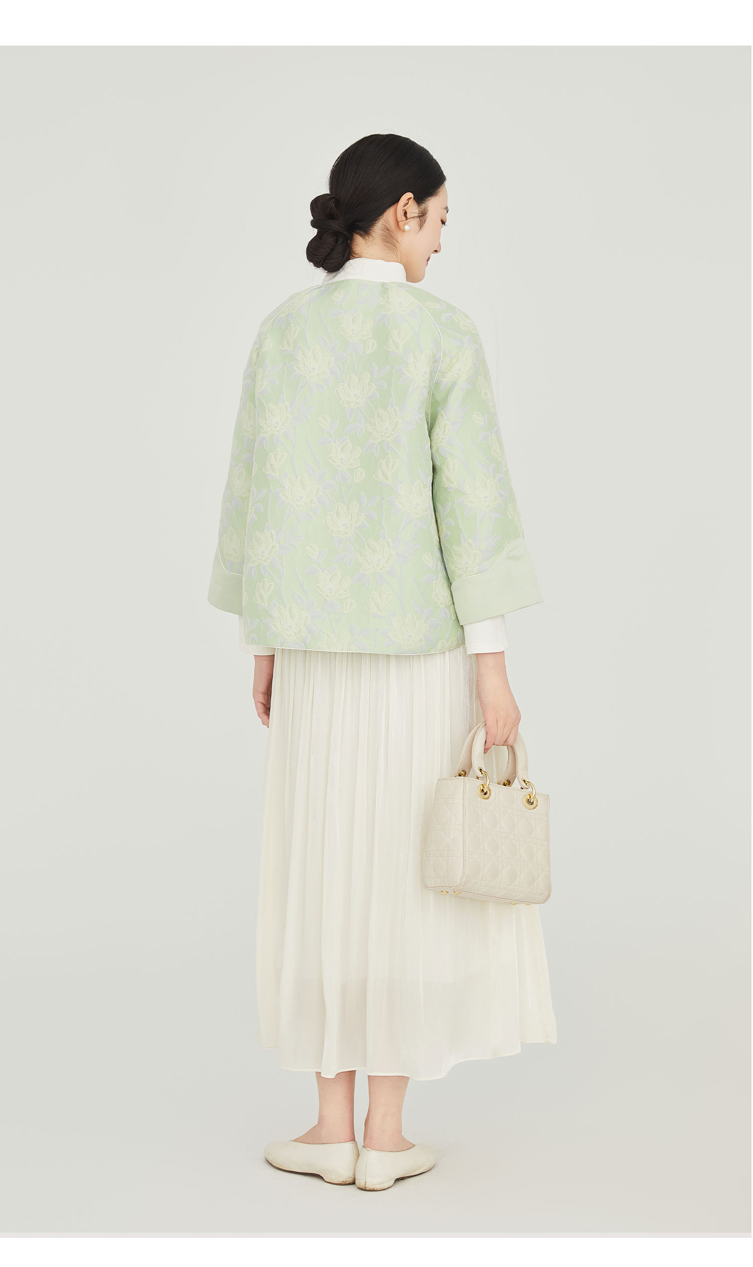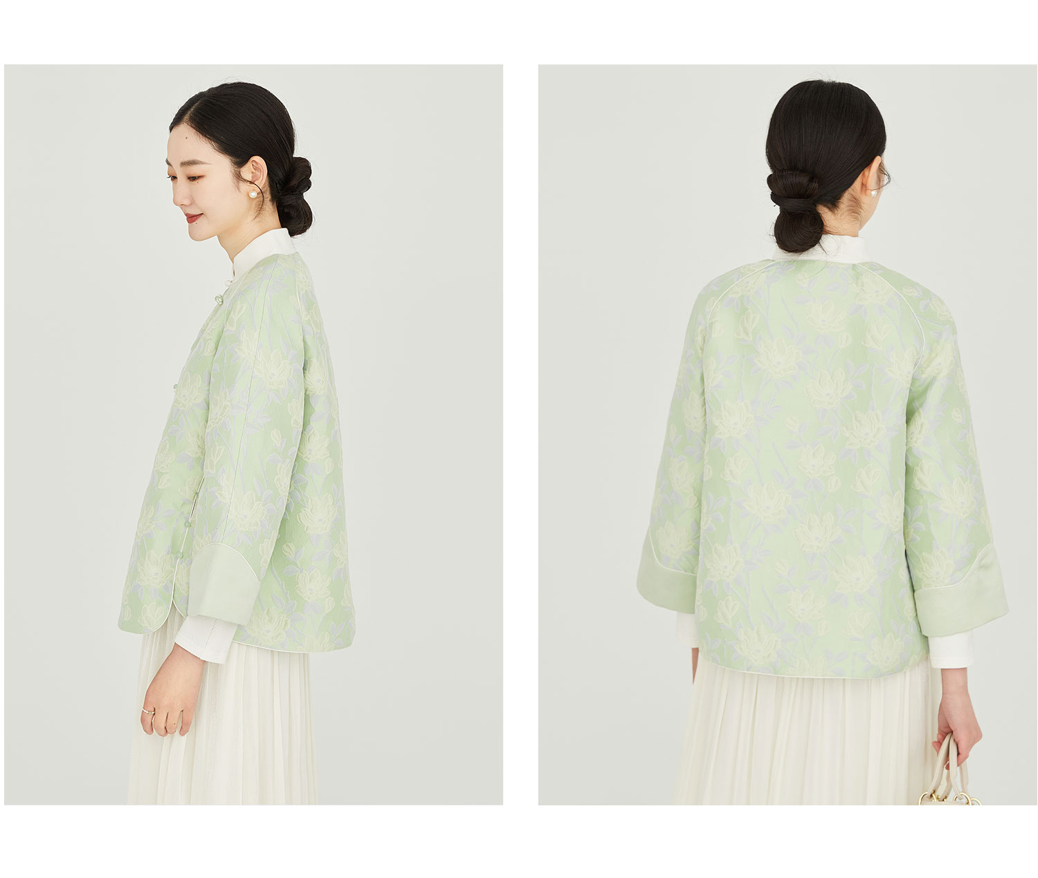 ASAYA1829 Fuyuntang Ya" refreshing. Chinese buckle print short coat women's 23 spring temperament green zen zen suit