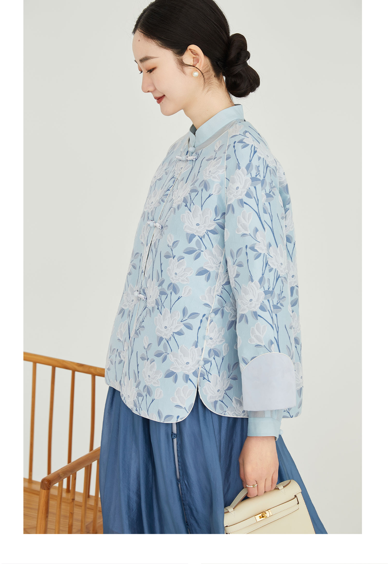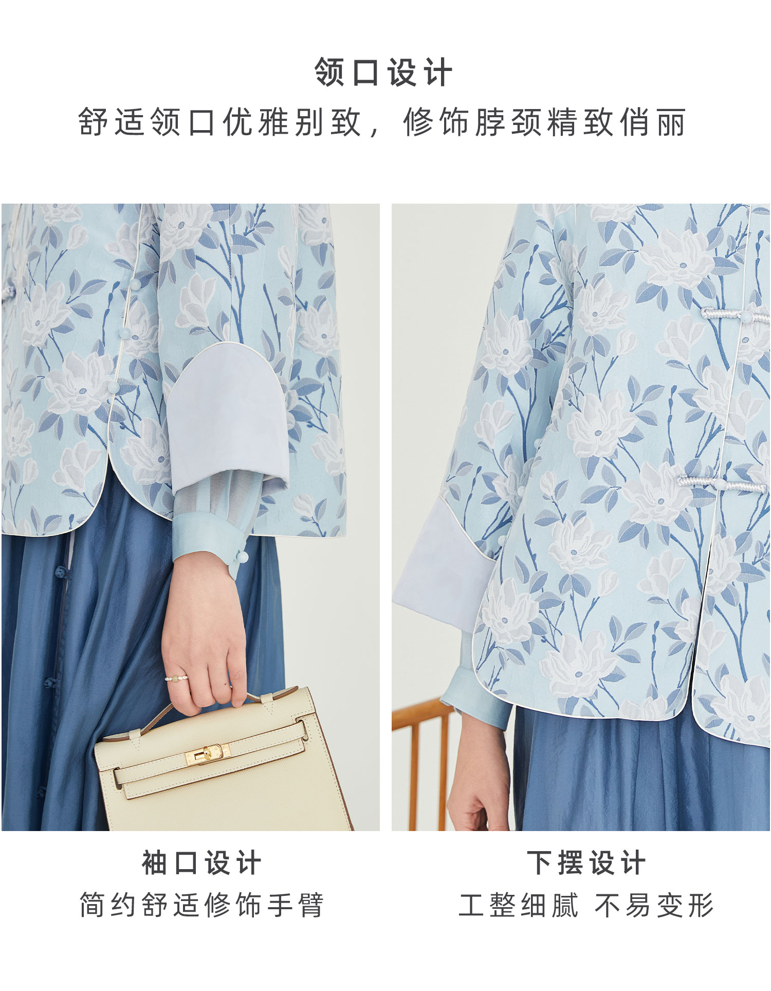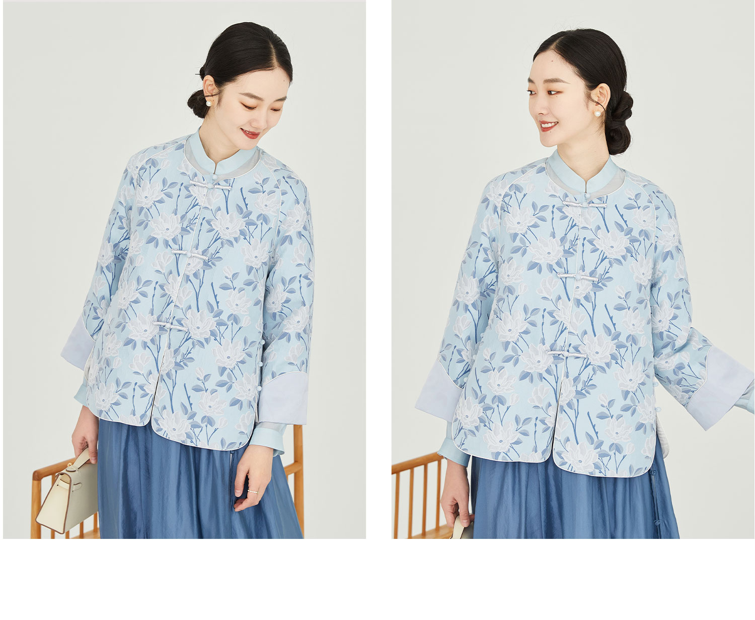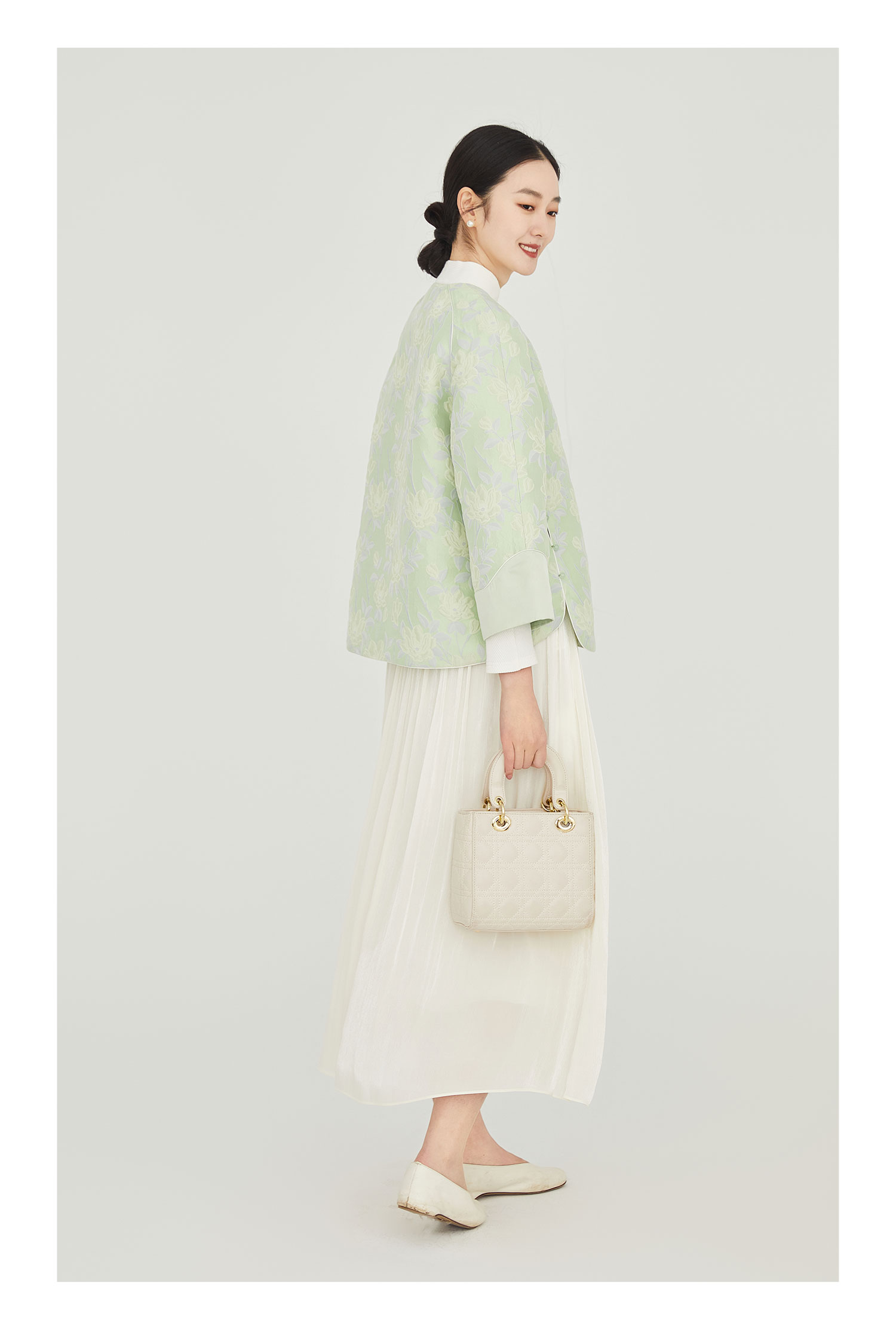 ASAYA1829 Fuyuntang Ya" refreshing. Chinese buckle print short coat women's 23 spring temperament green zen zen suit