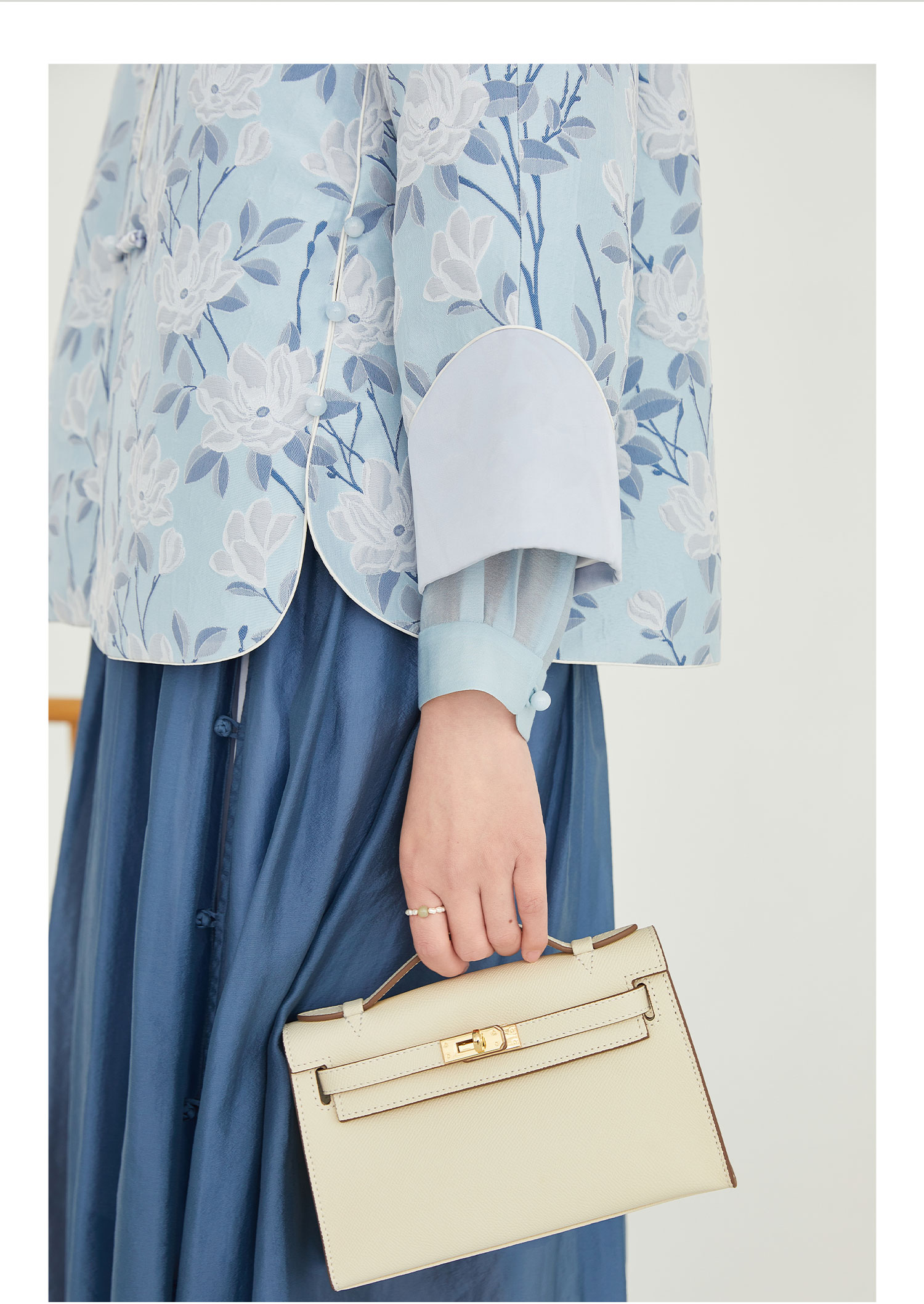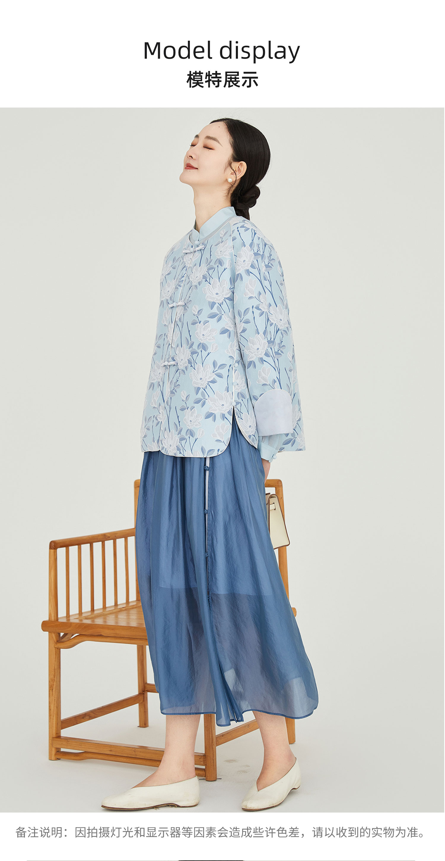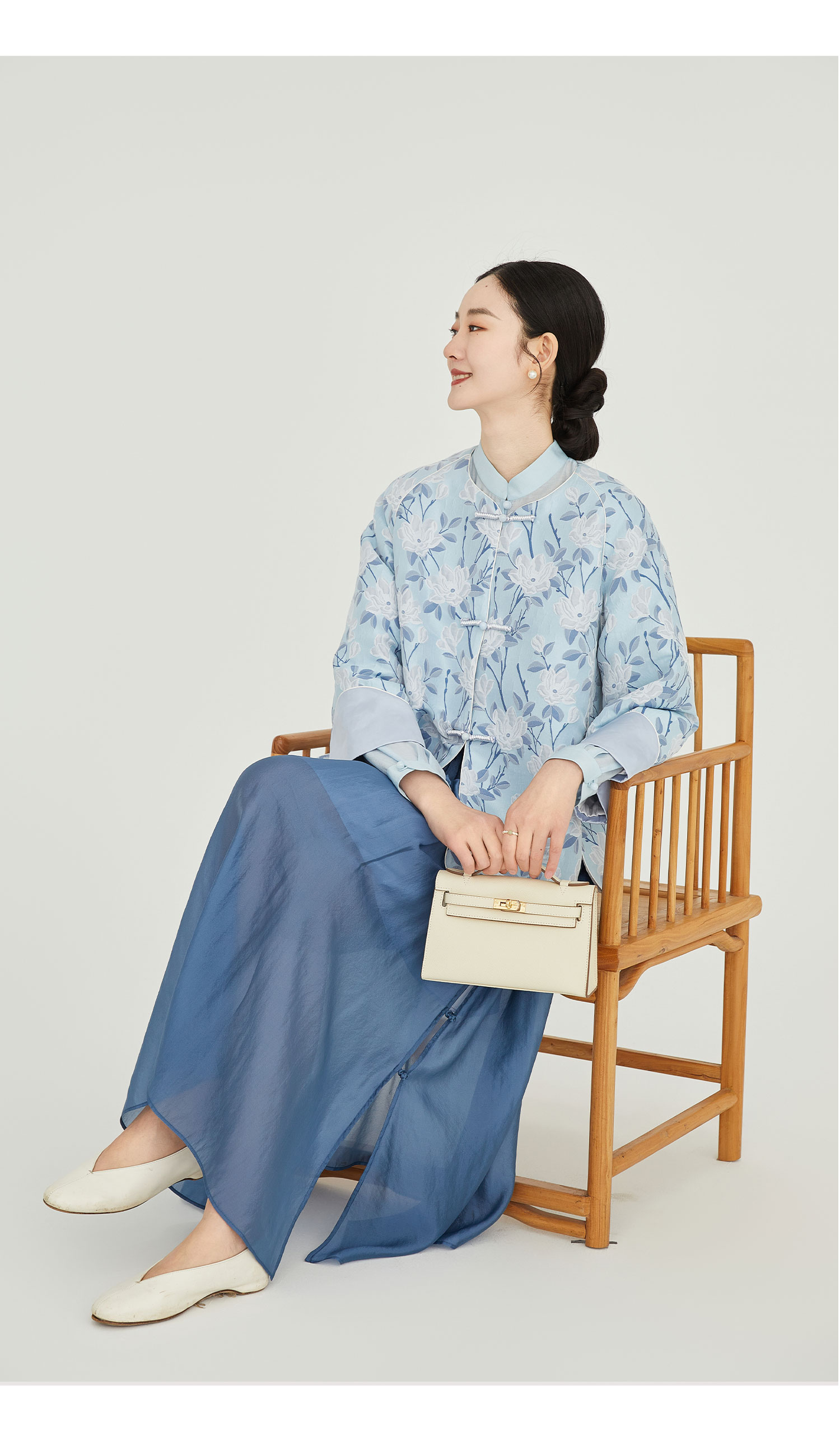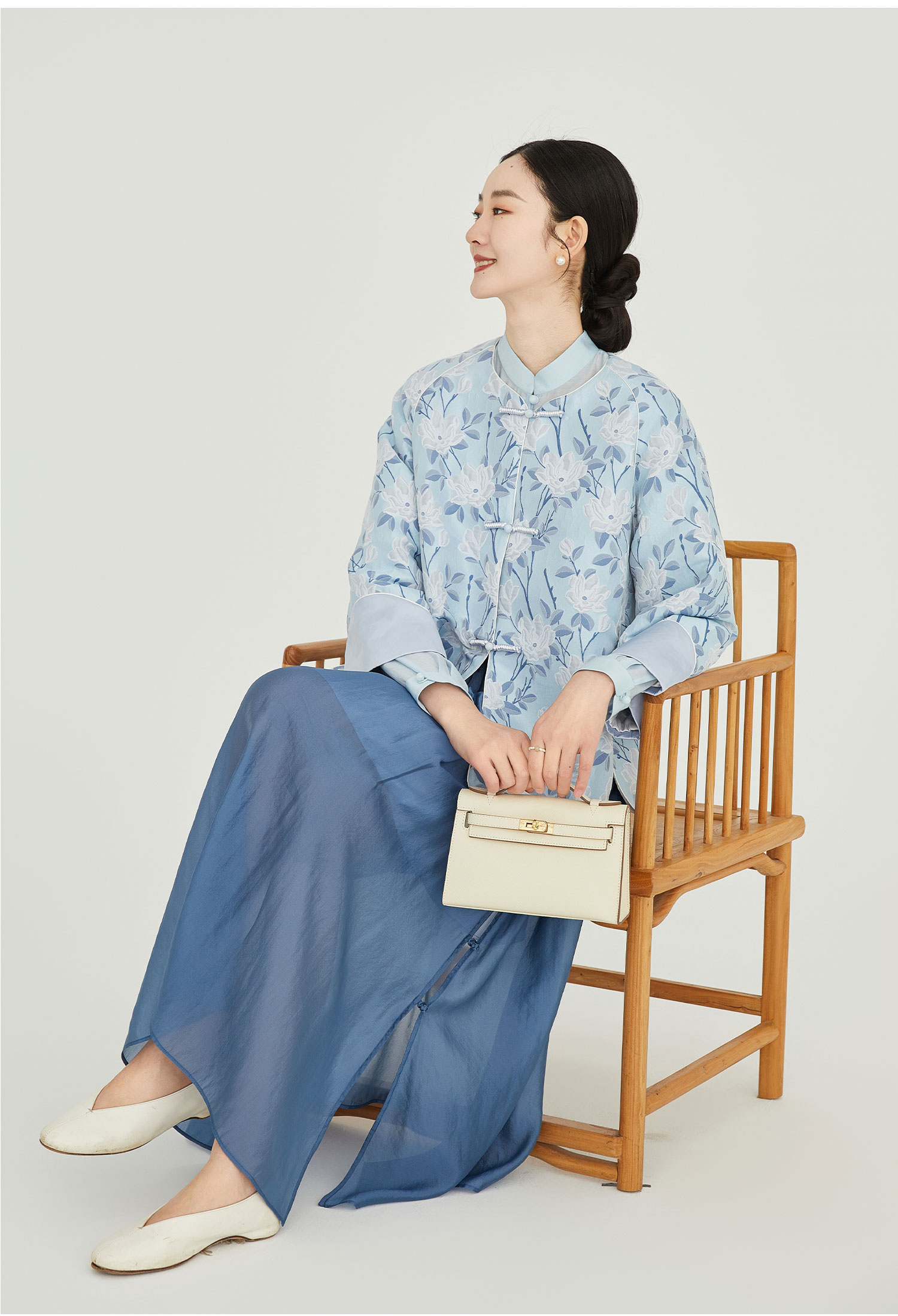 ASAYA1829 Fuyuntang Ya" refreshing. Chinese buckle print short coat women's 23 spring temperament green zen zen suit