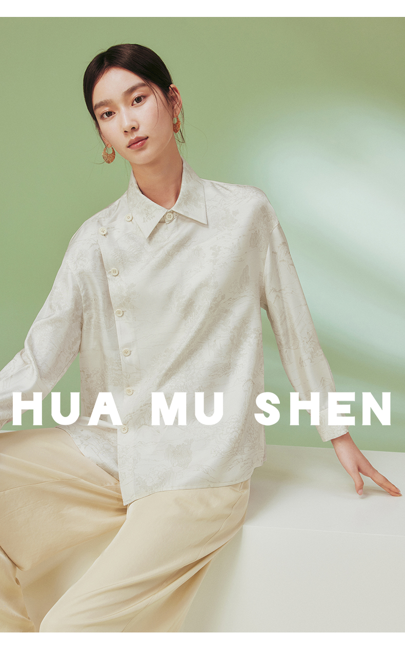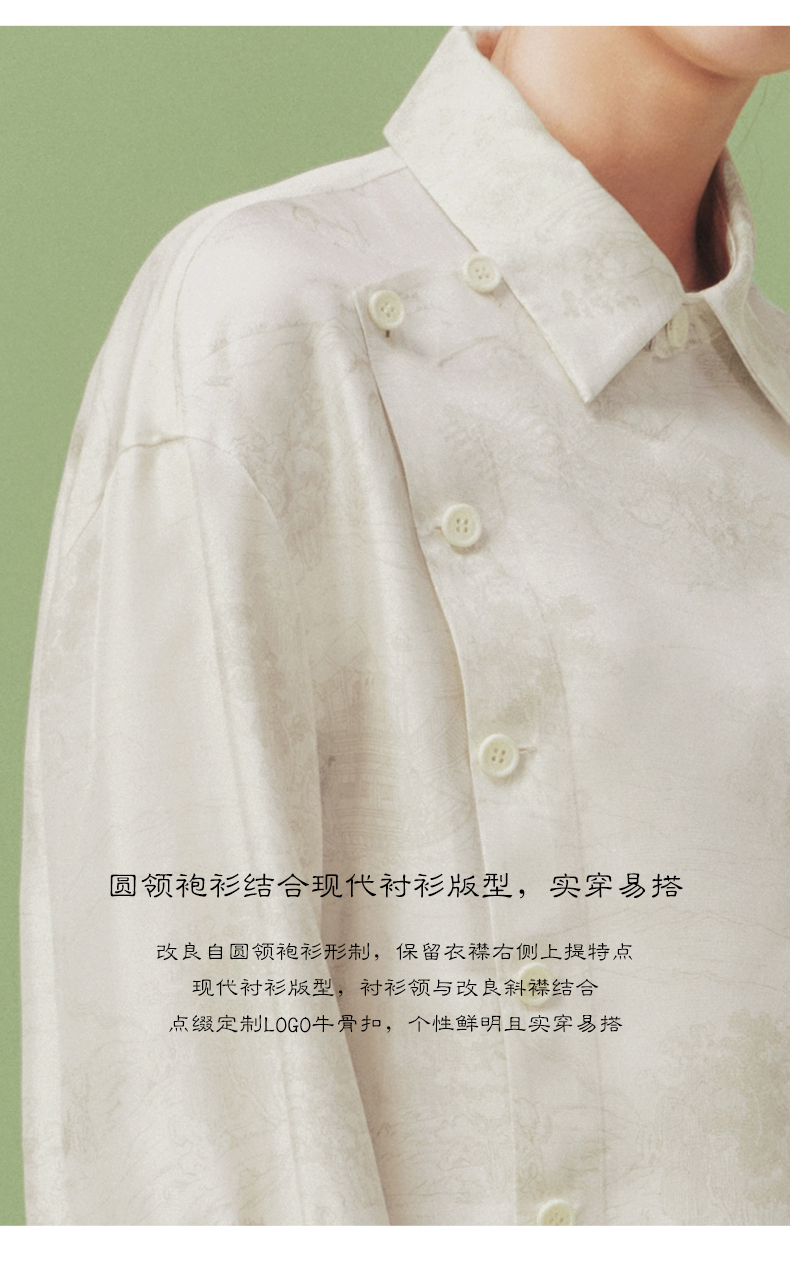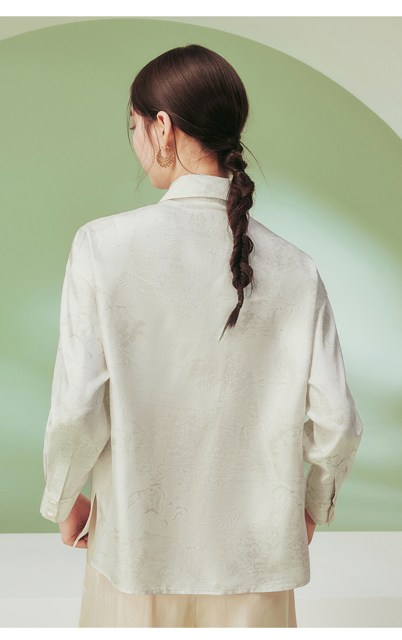 ASAYA1682 Flower and Tree Deep 18mm Heavy duty Silk Shirt for Women Original Chinese Style Printed Top New Version Collar Long Sleeve Women s Clothing