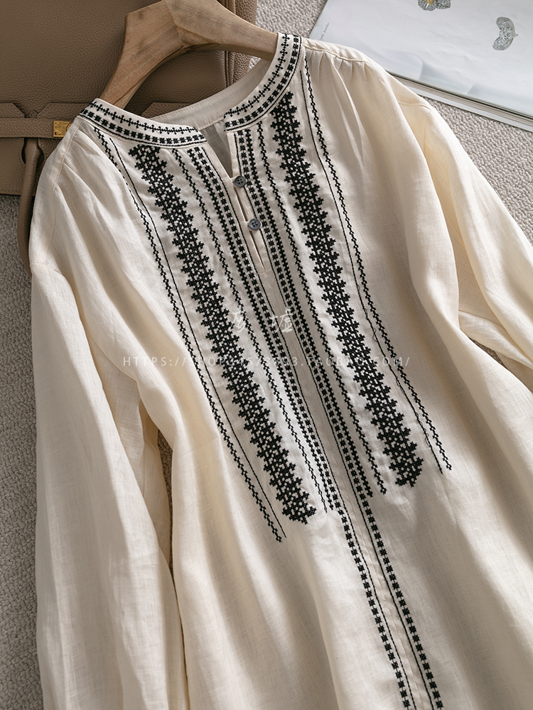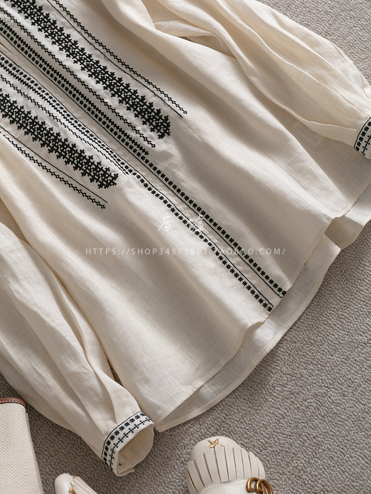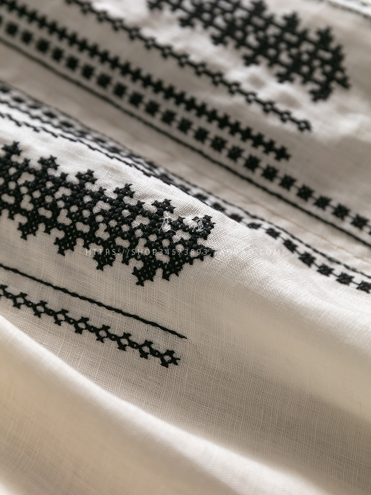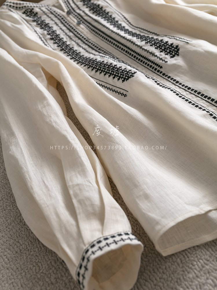 舒适的定织亚麻面料 重工刺绣 美得简直不像话