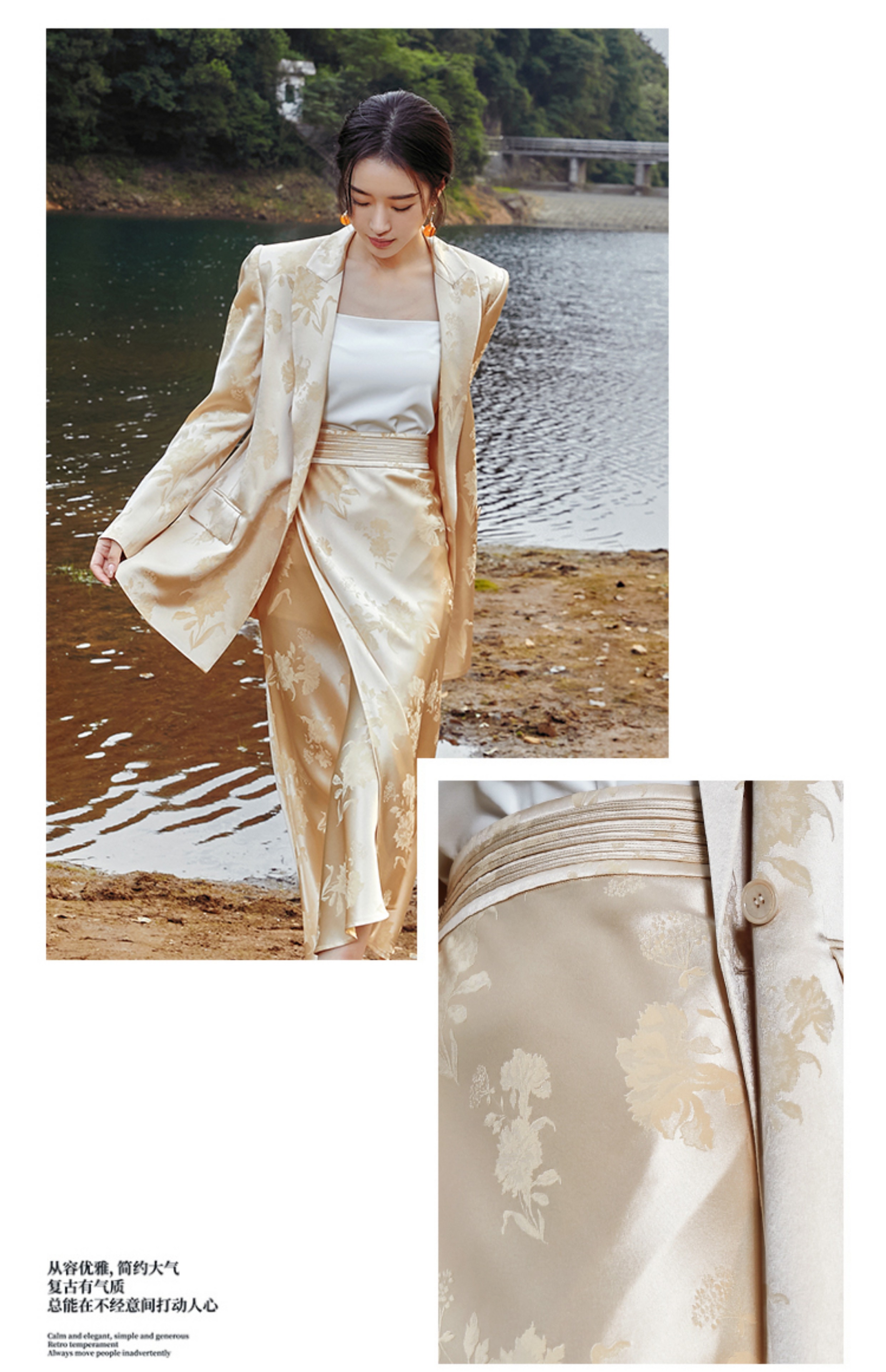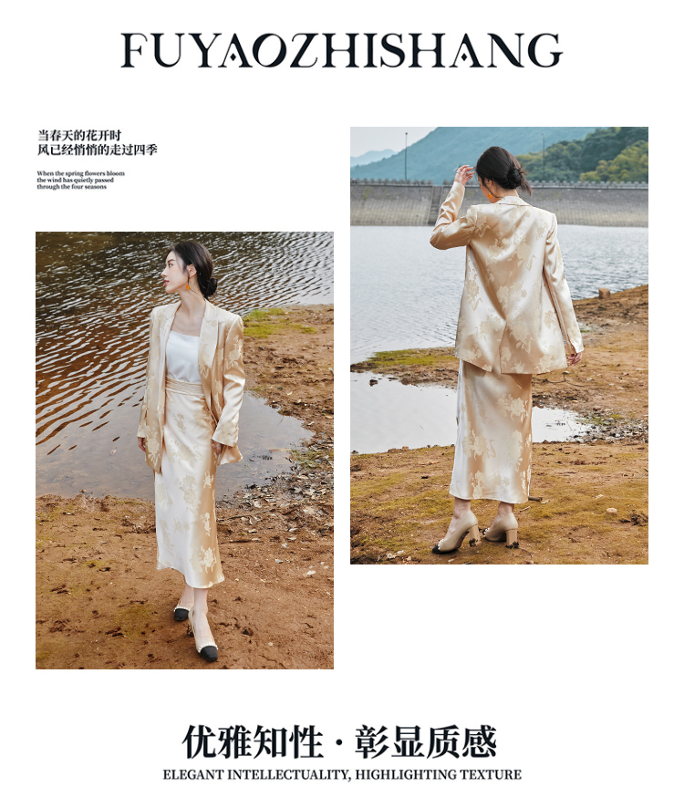 Color classification | Pre sales Notice Champagne Jacquard Suit Champagne Jacquard Half Skirt Green Jacquard Suit Green Jacquard Half Skirt |