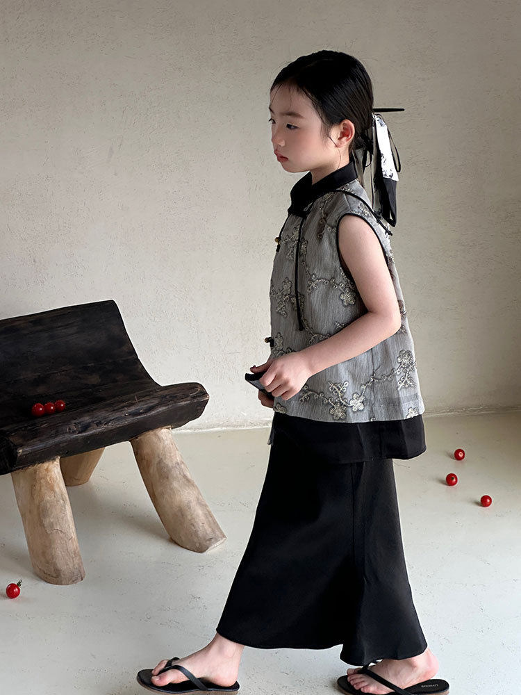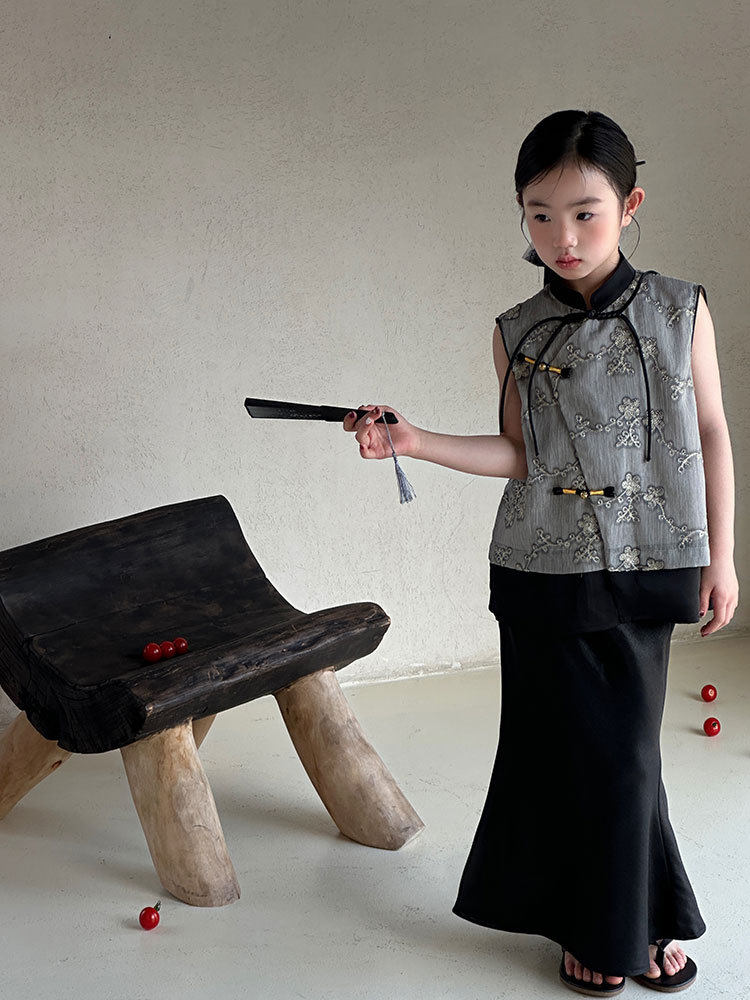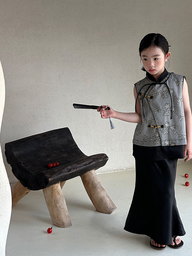 ASAYAKIDS274 – Ink Blossom Modern Cheongsam Set ðŸ–ĪðŸŒŋ