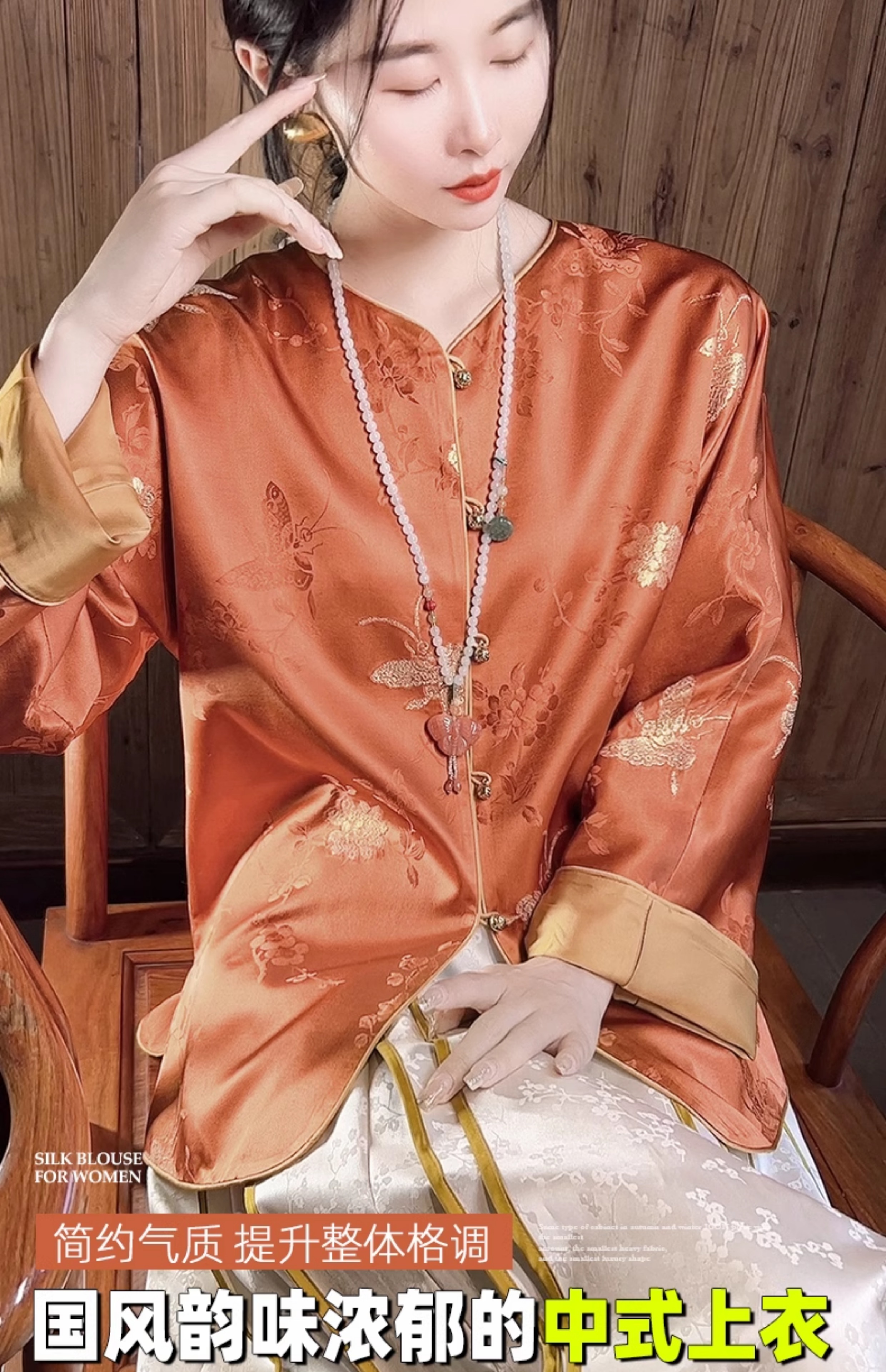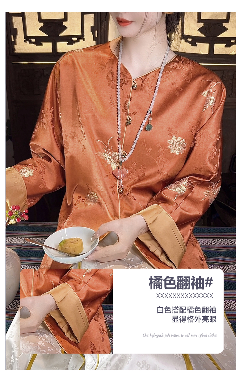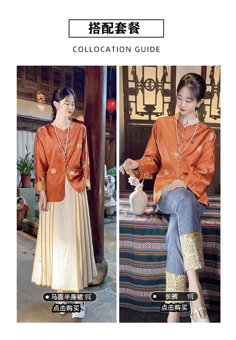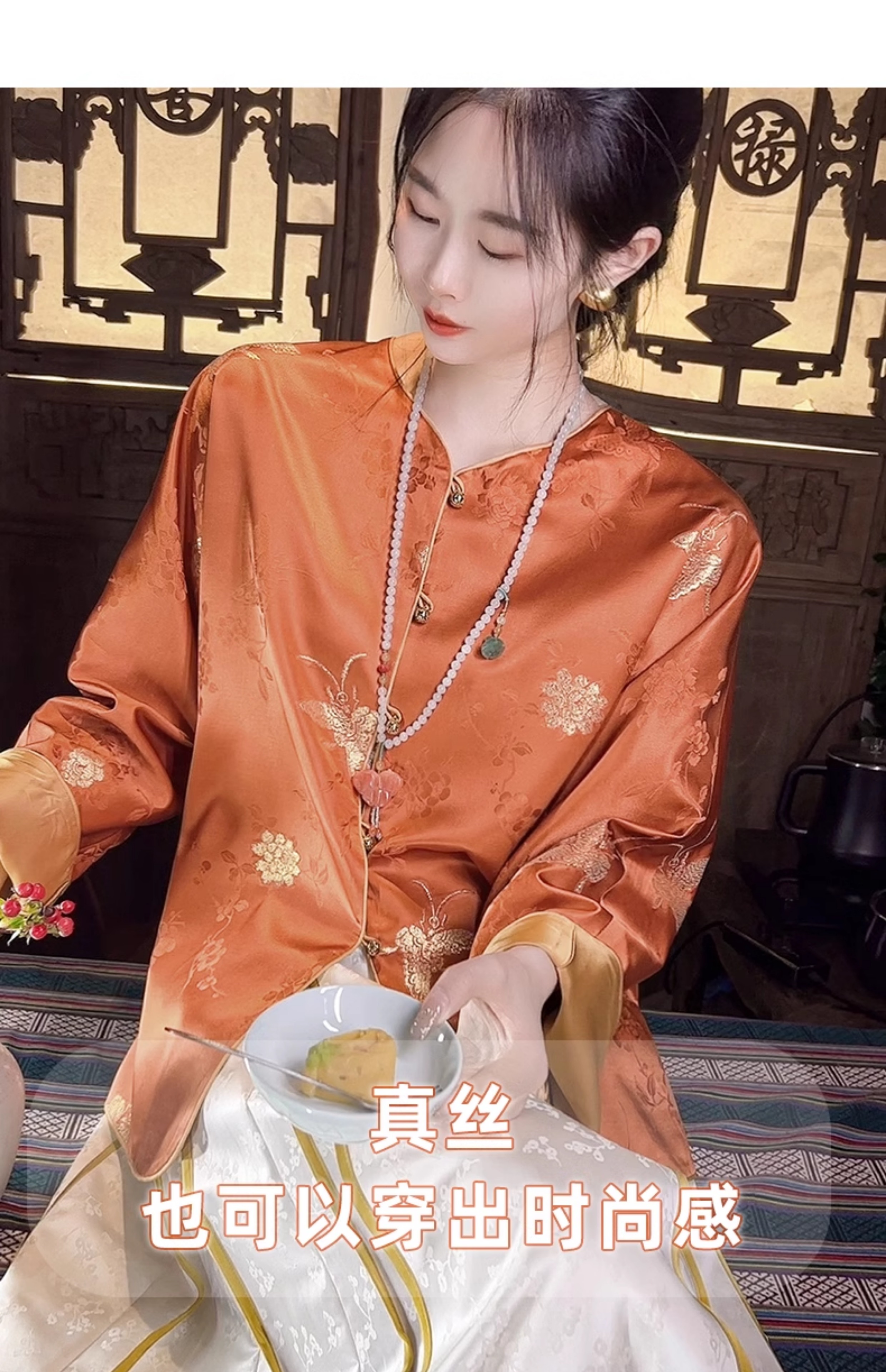 ASAYA2974 Golden Satin Butterfly Love Flower Caramel Color New Chinese Style Women’s National Style Jacket *JACKET ONLY , NO SKIRT (SILK MATERIAL)