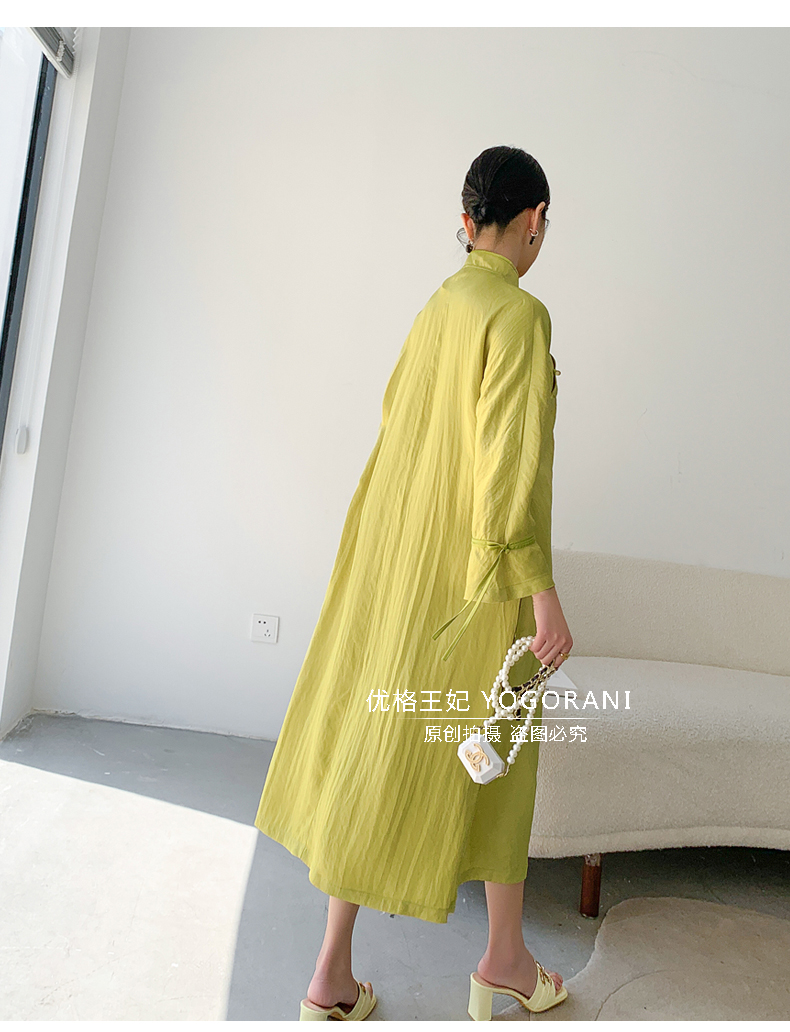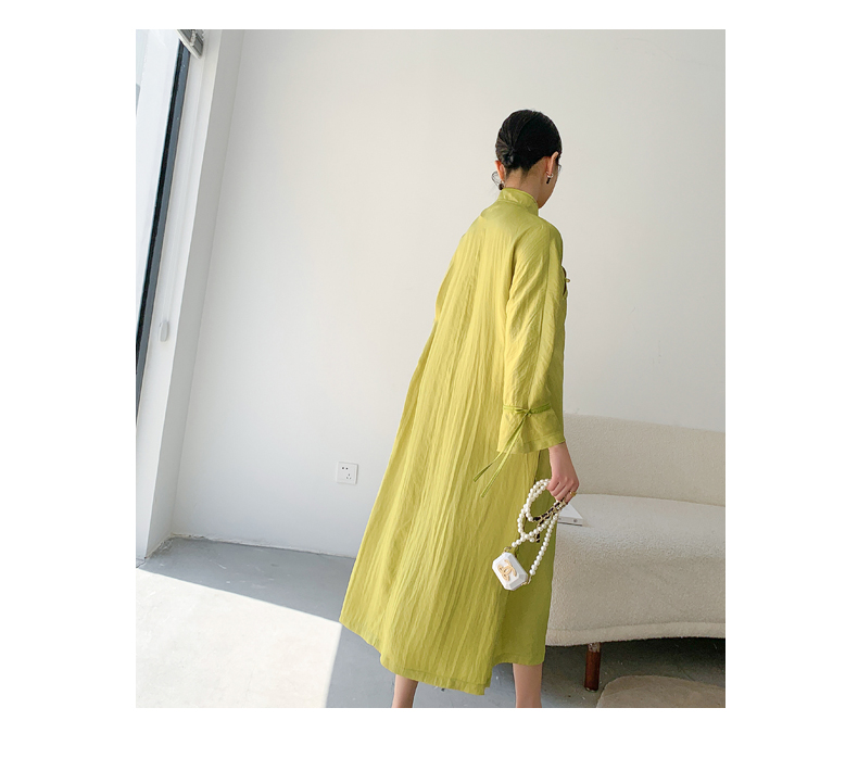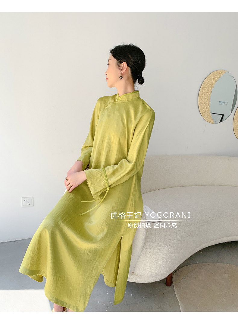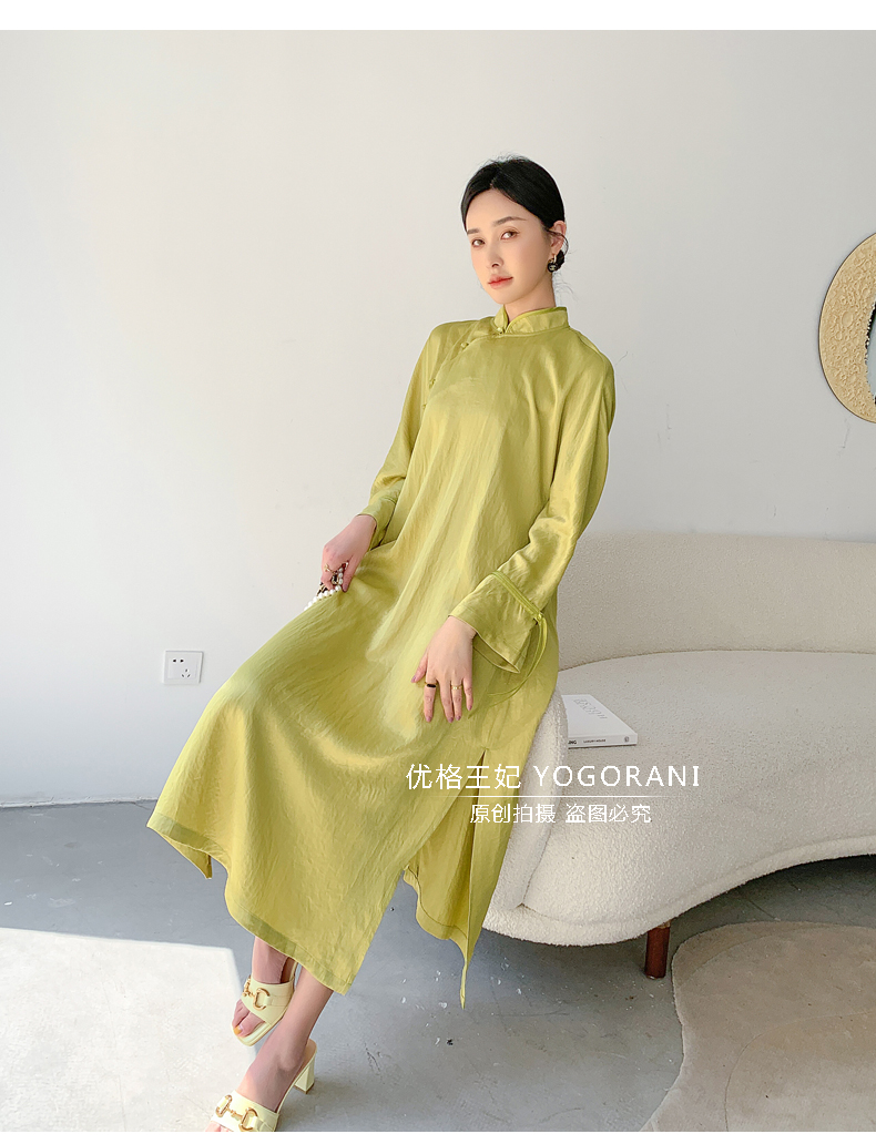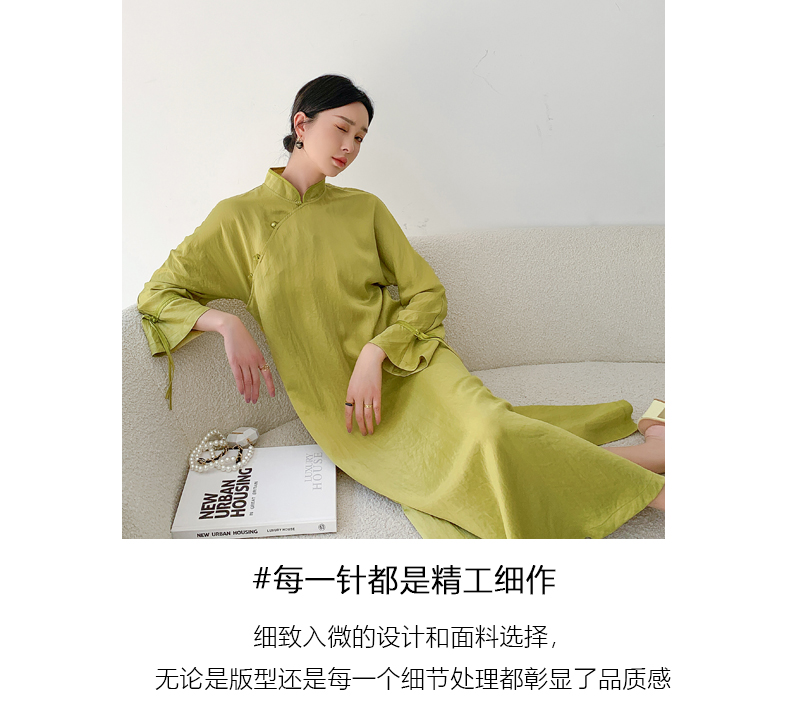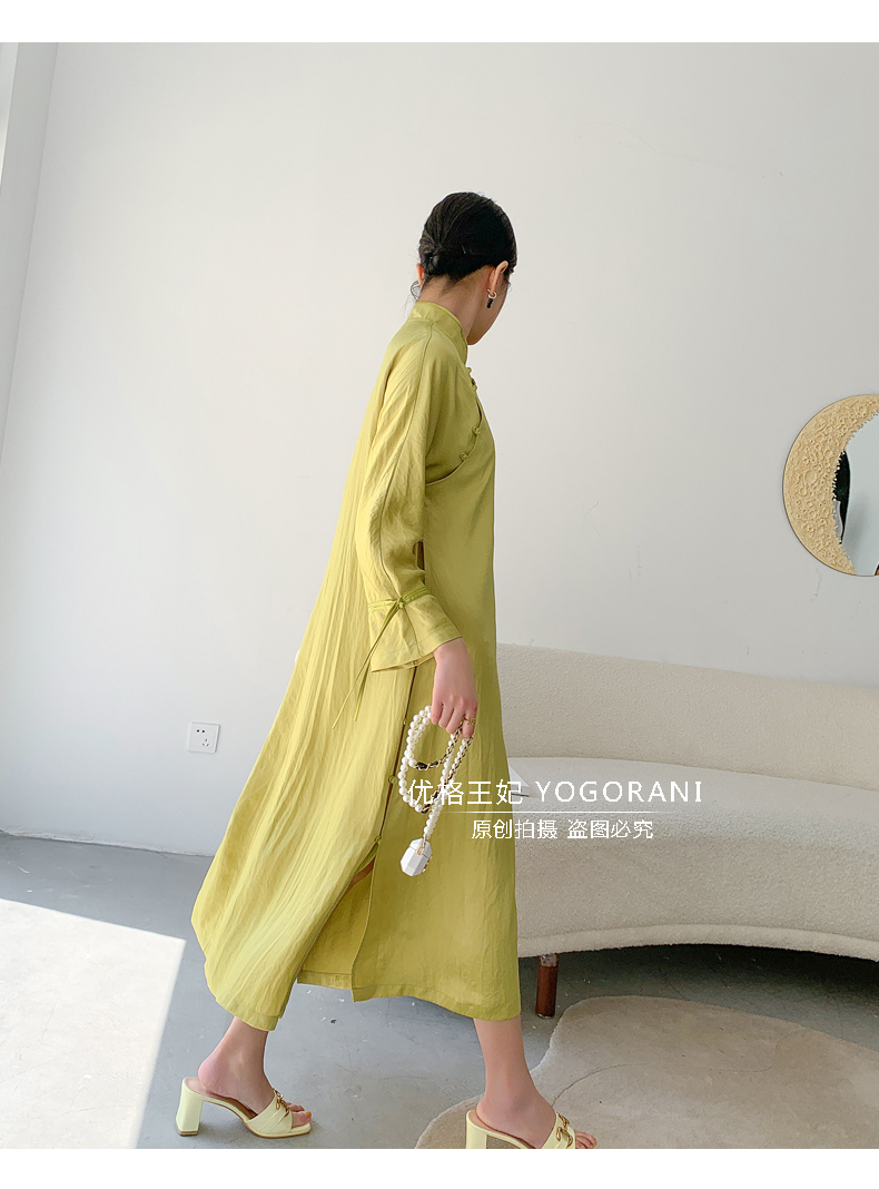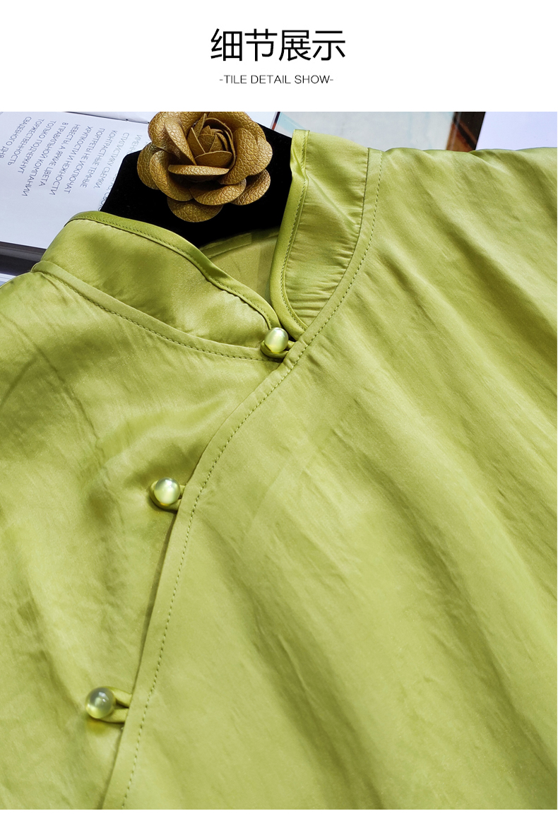 Asaya868 - Green high end acetic acid cheongsam dress for women s daily summer new style retro buckle casual loose over the knee dress