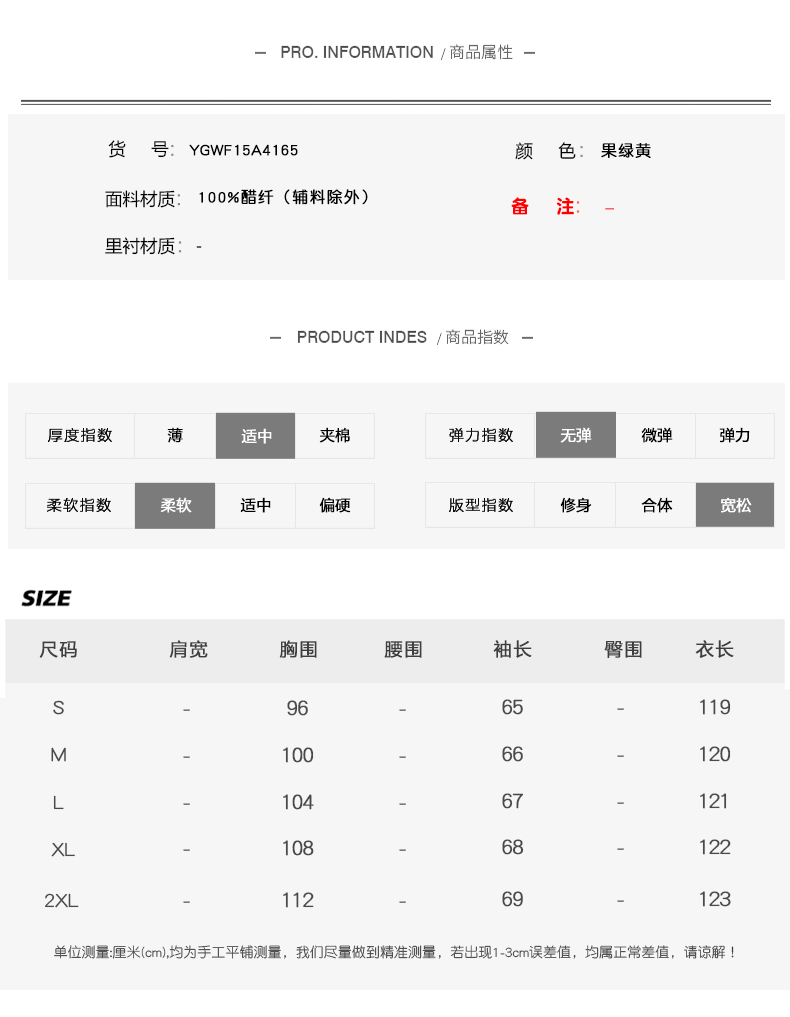 Material composition | Acetate fiber (acetate fiber) 100% |
