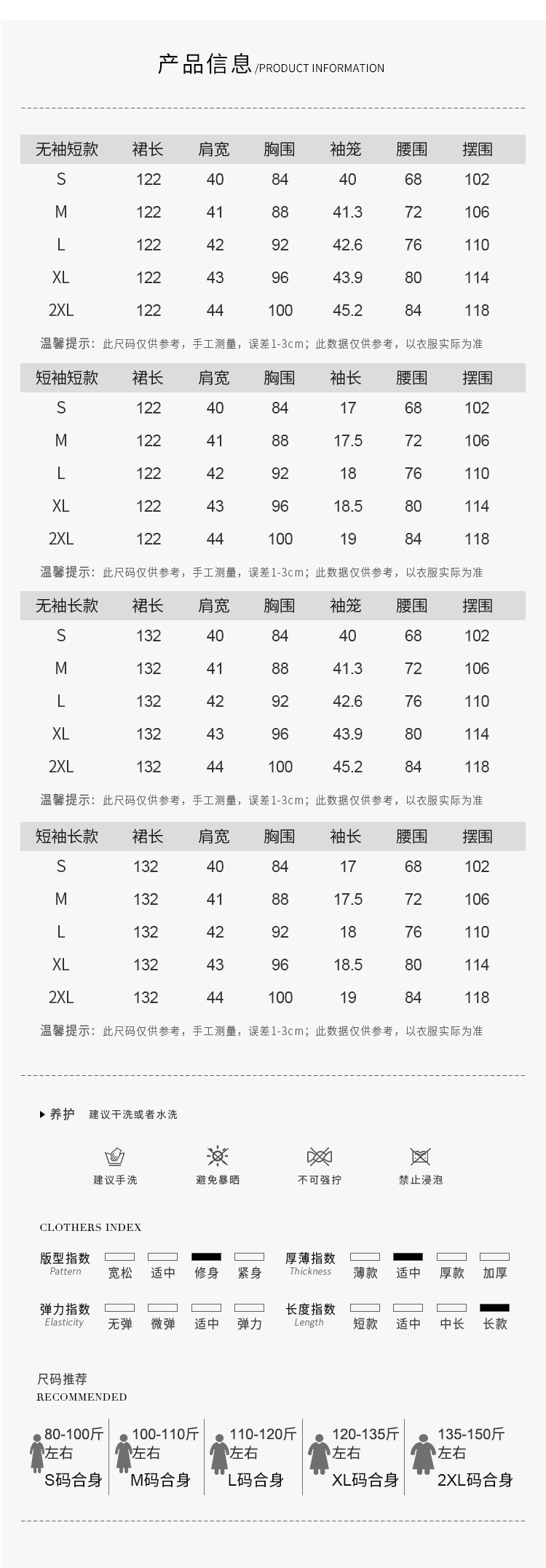 Color classification | Sleeveless - Tall Version 132CM Short Sleeve - Tall Version 132CM Sleeveless - Small Version 122CM Short Sleeve - Small Version 122CM |