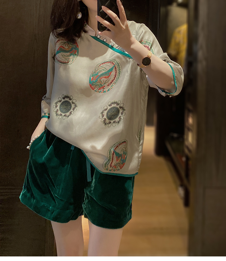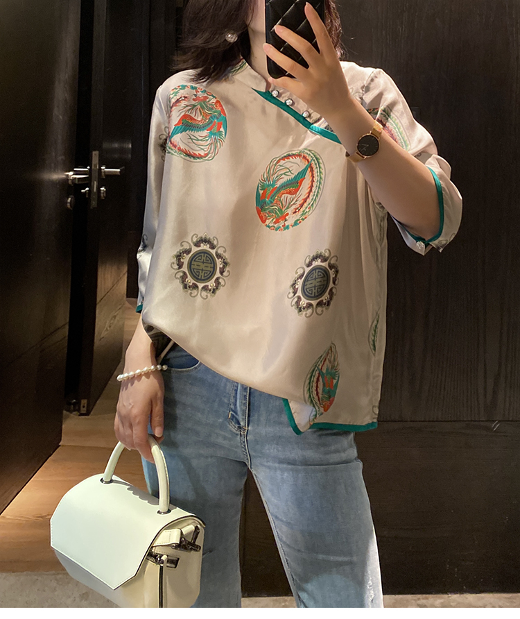 ASAYA3007 New Chinese Tang Suit Retro Design Niche Silk Shirt
