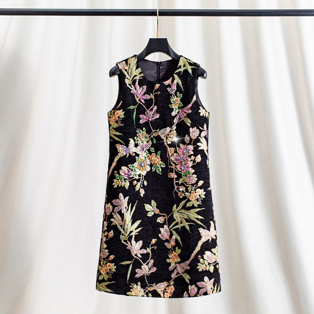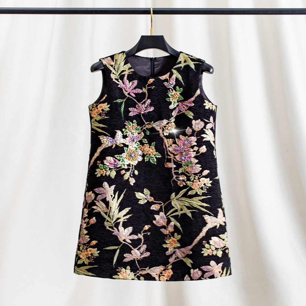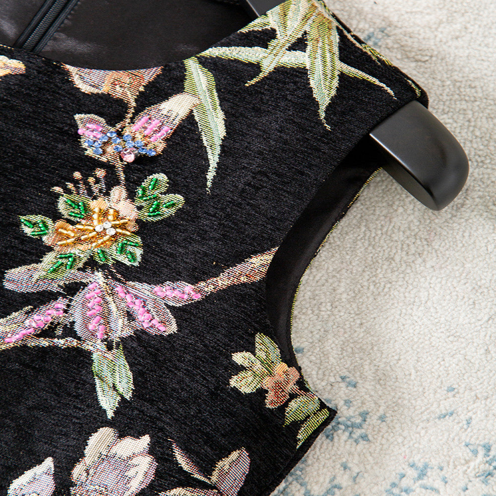 ASAYA3943: Floral Jacquard Sleeveless Dress ✨
