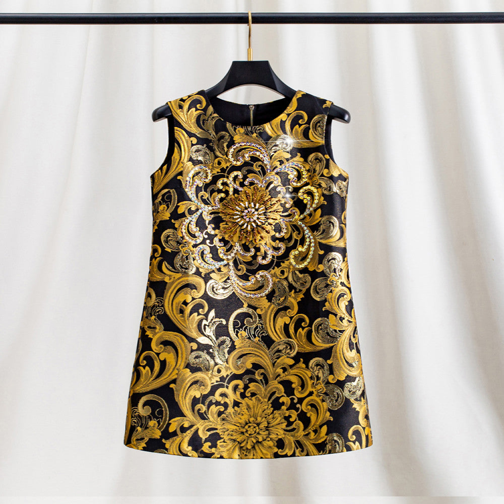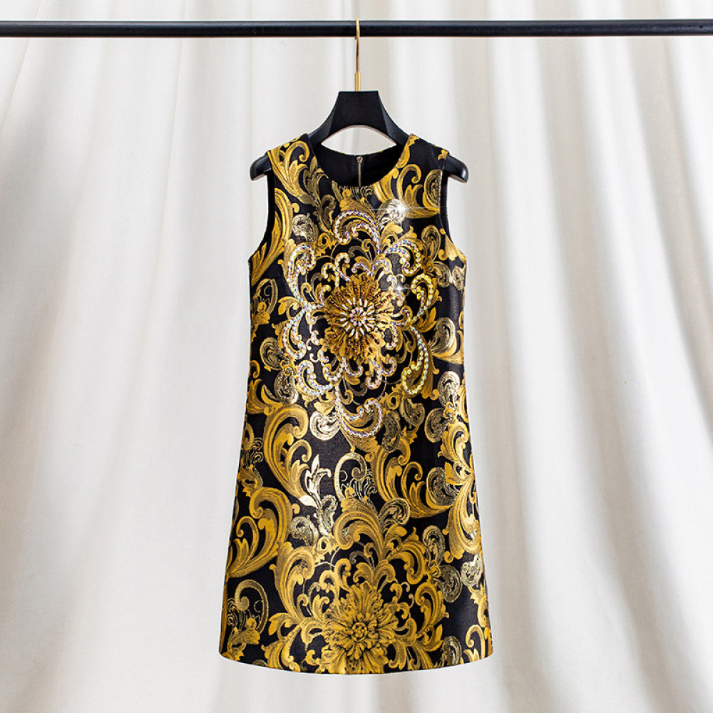 ASAYA3944: Golden Majesty Jacquard Dress ✨