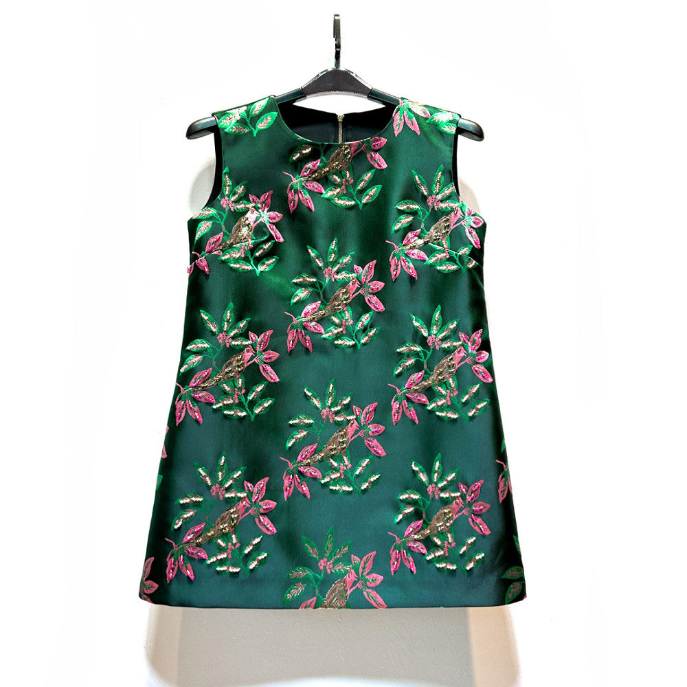 ASAYA4624 – Emerald Songbird Embroidered Dress 🕊️✨