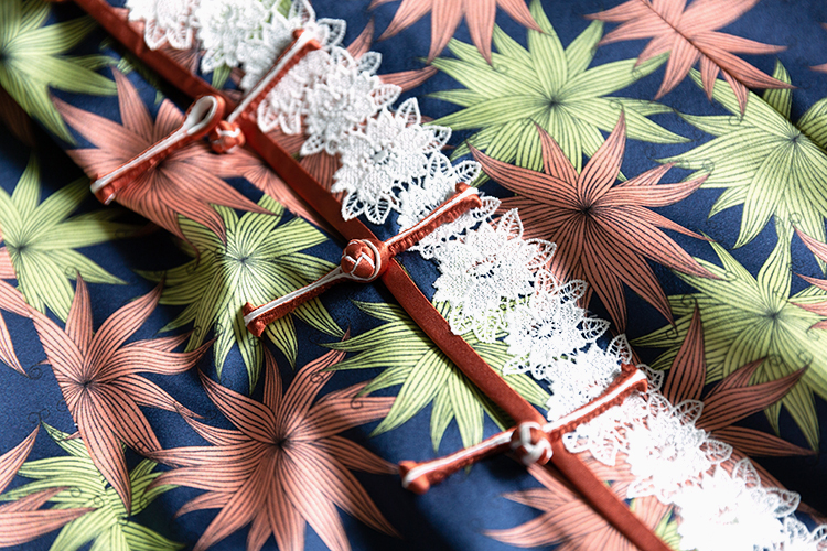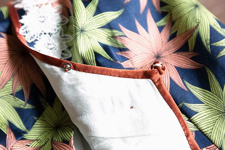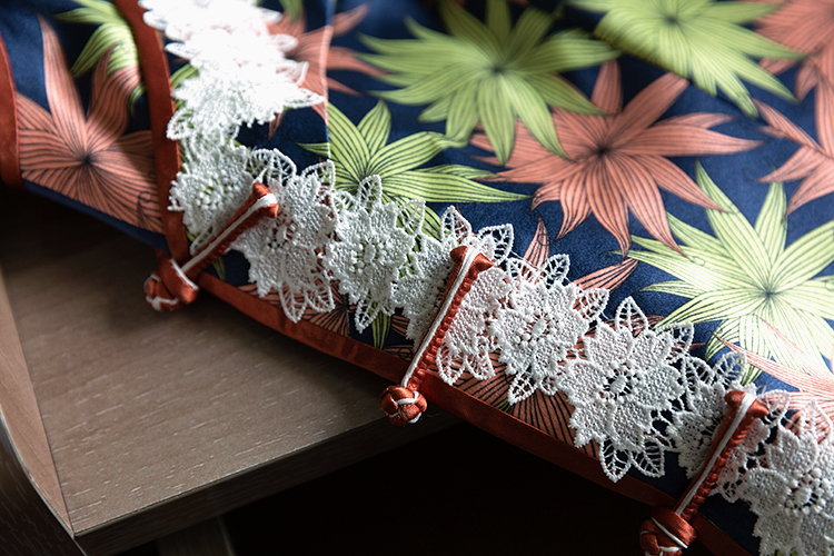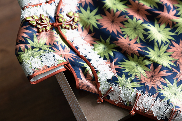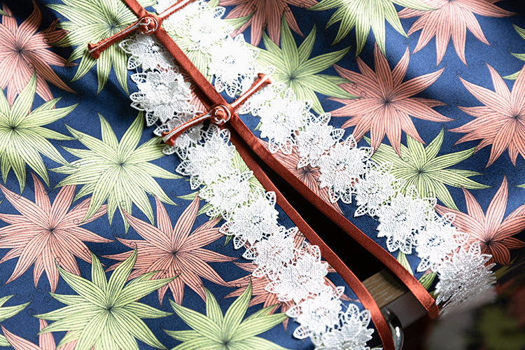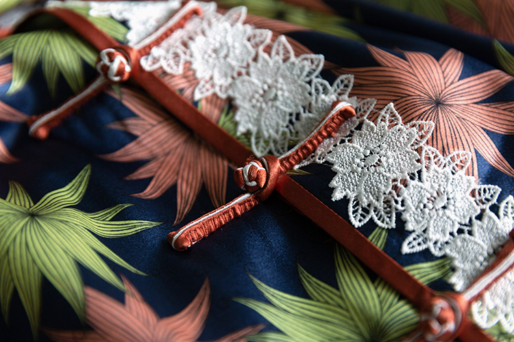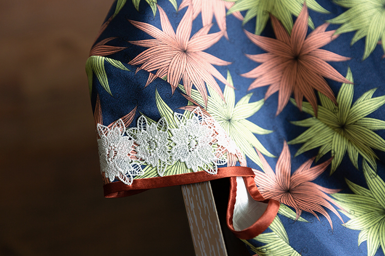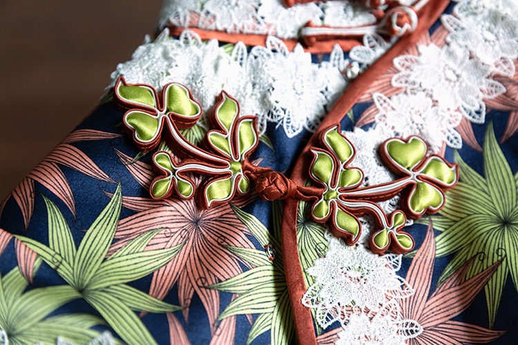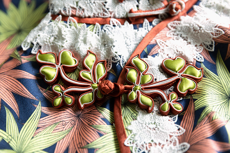 高定款,一件精工制作的手工旗袍, 单领口的一对手工包扣,就要100多块, 剪裁设计独特,曲线分明 缎面真丝的料子,上身华丽优雅 镂空蕾丝花边,点缀在领口及偏襟处 通透、精致,宛若会传情般。 领下的花式手工盘扣,更是精美绝伦 真真可谓惊艳 重磅缎面真丝 经过特殊工艺附着一层薄粘衬, 让料子显得更板挺,上身更有型 而且更易于打理,抗皱皱性也好。 做工、包括每一处的细节,都非常的精致 从扣子,到衬里,和撞色的衍边 都是纯手工一针一线缝制 每一处的细节,都衬托着品质感。 |